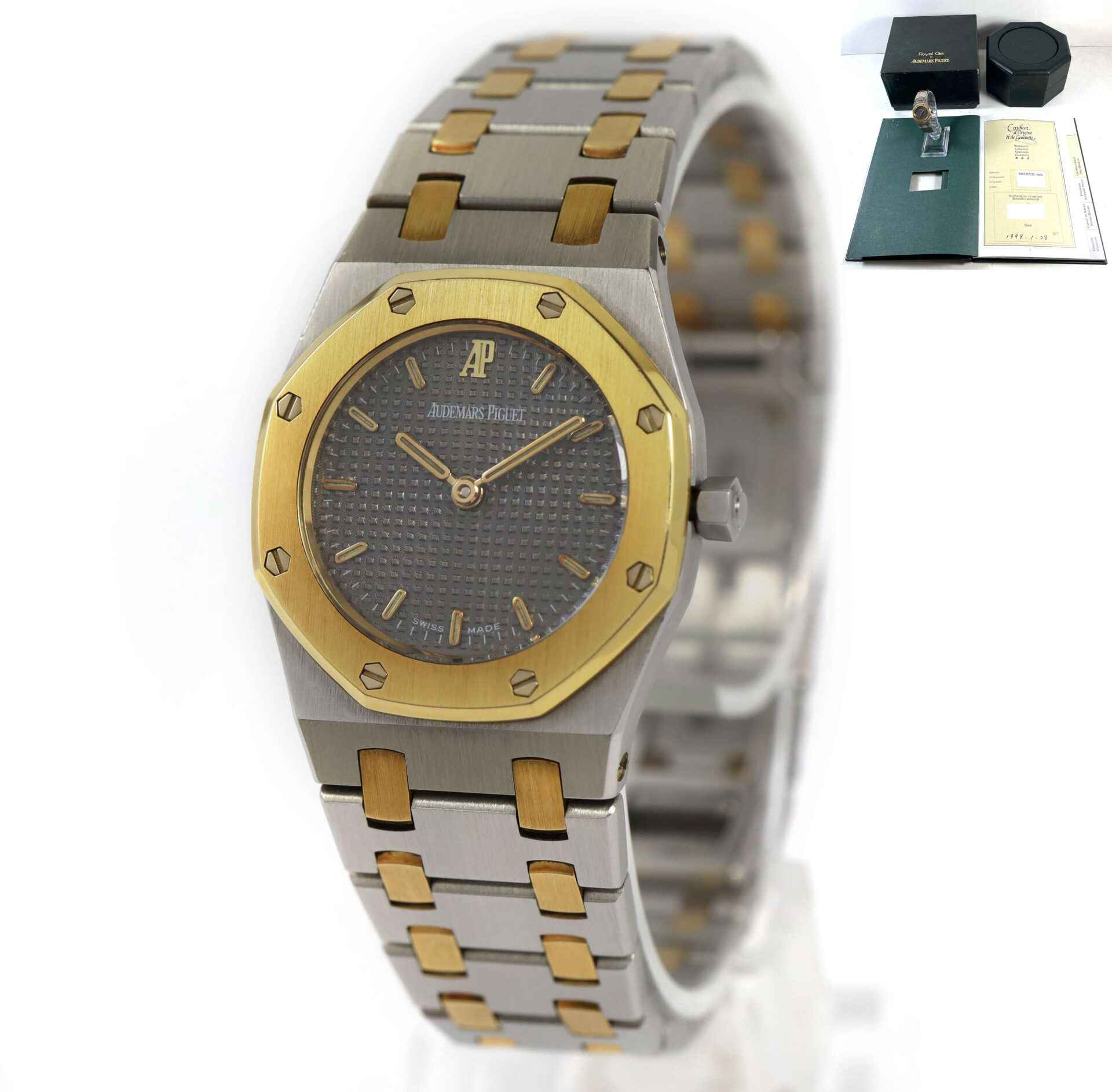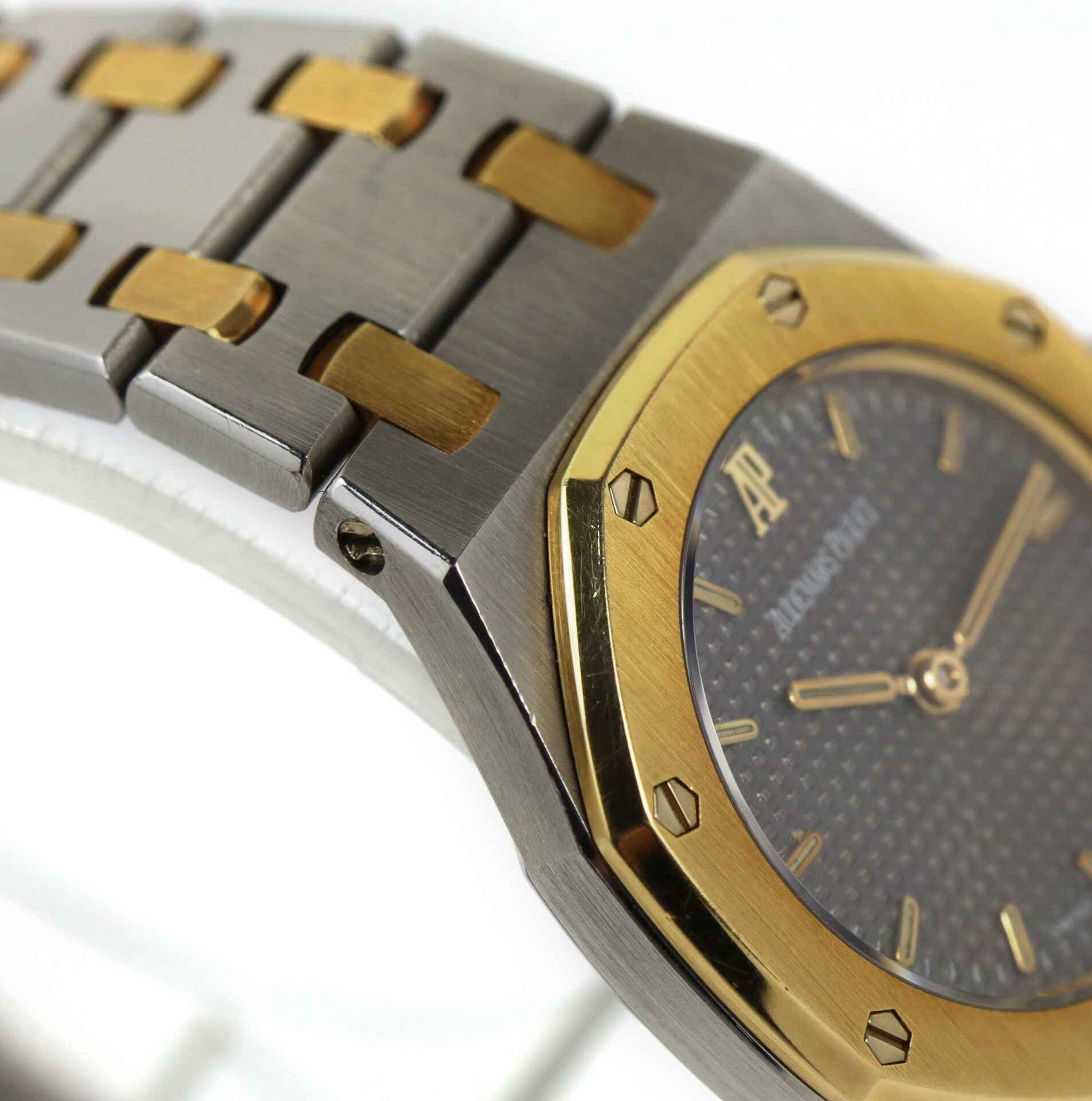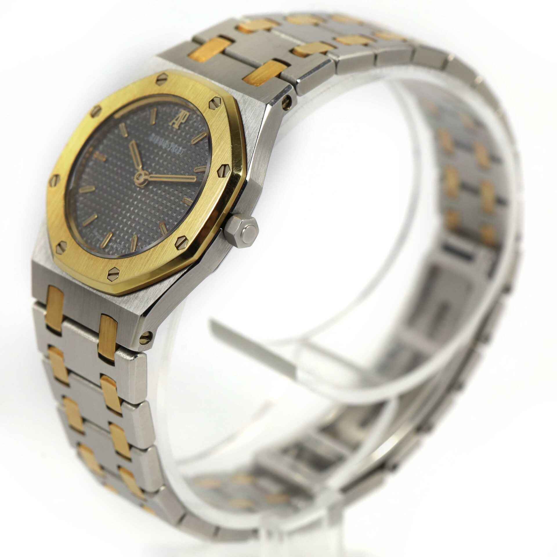 Read Morethis audemars piguet is in mint unpolished condition and comes with its box and warranty booklet dated january 28th, 1998 as shown in the pictures attached. This watch features a 24mm stainless steel case that surrounds a black dial and comes on a two-tone gold/steel bracelet. The band on this watch is still very tight with plenty of life left as shown in photo #12. This watch is in stock and available to ship immediately!