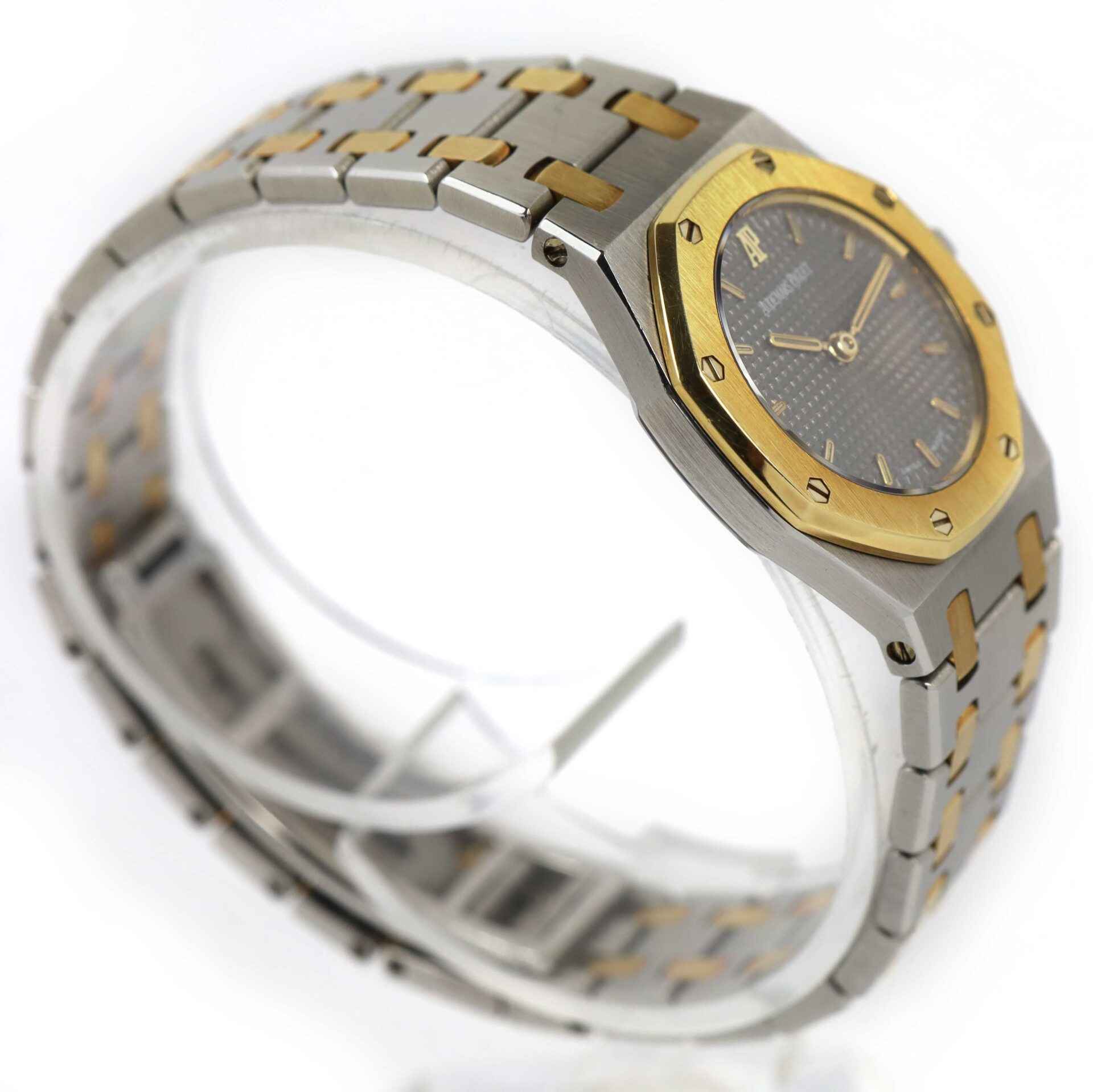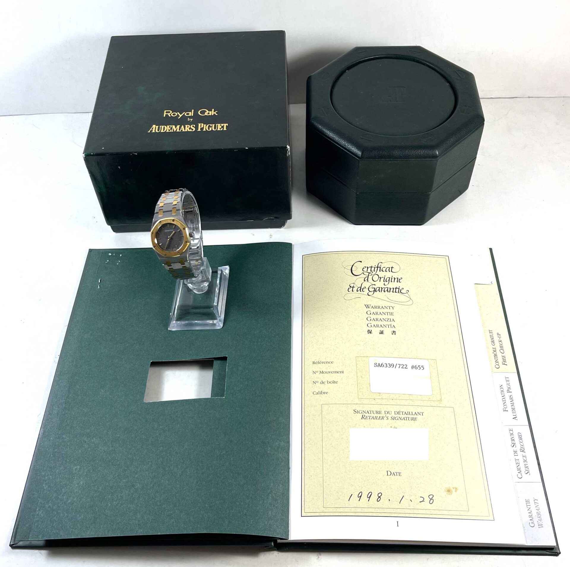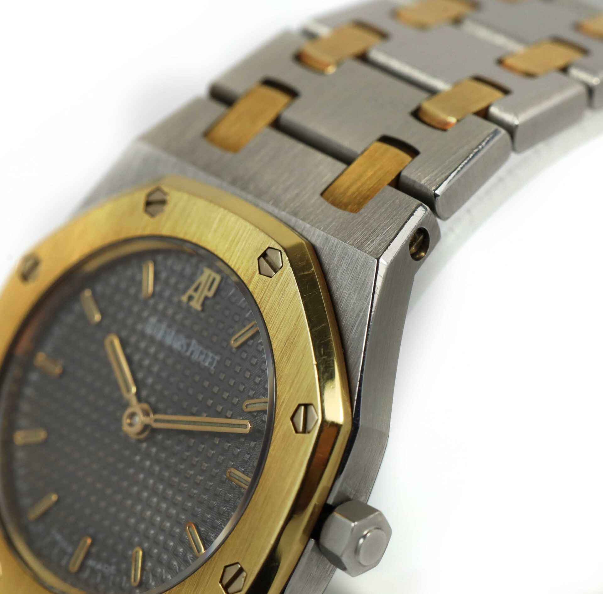 Read Morethis audemars piguet is in mint unpolished condition and comes with its box and warranty booklet dated january 28th, 1998 as shown in the pictures attached. This watch features a 24mm stainless steel case that surrounds a black dial and comes on a two-tone gold/steel bracelet. The band on this watch is still very tight with plenty of life left as shown in photo #12. This watch is in stock and available to ship immediately!