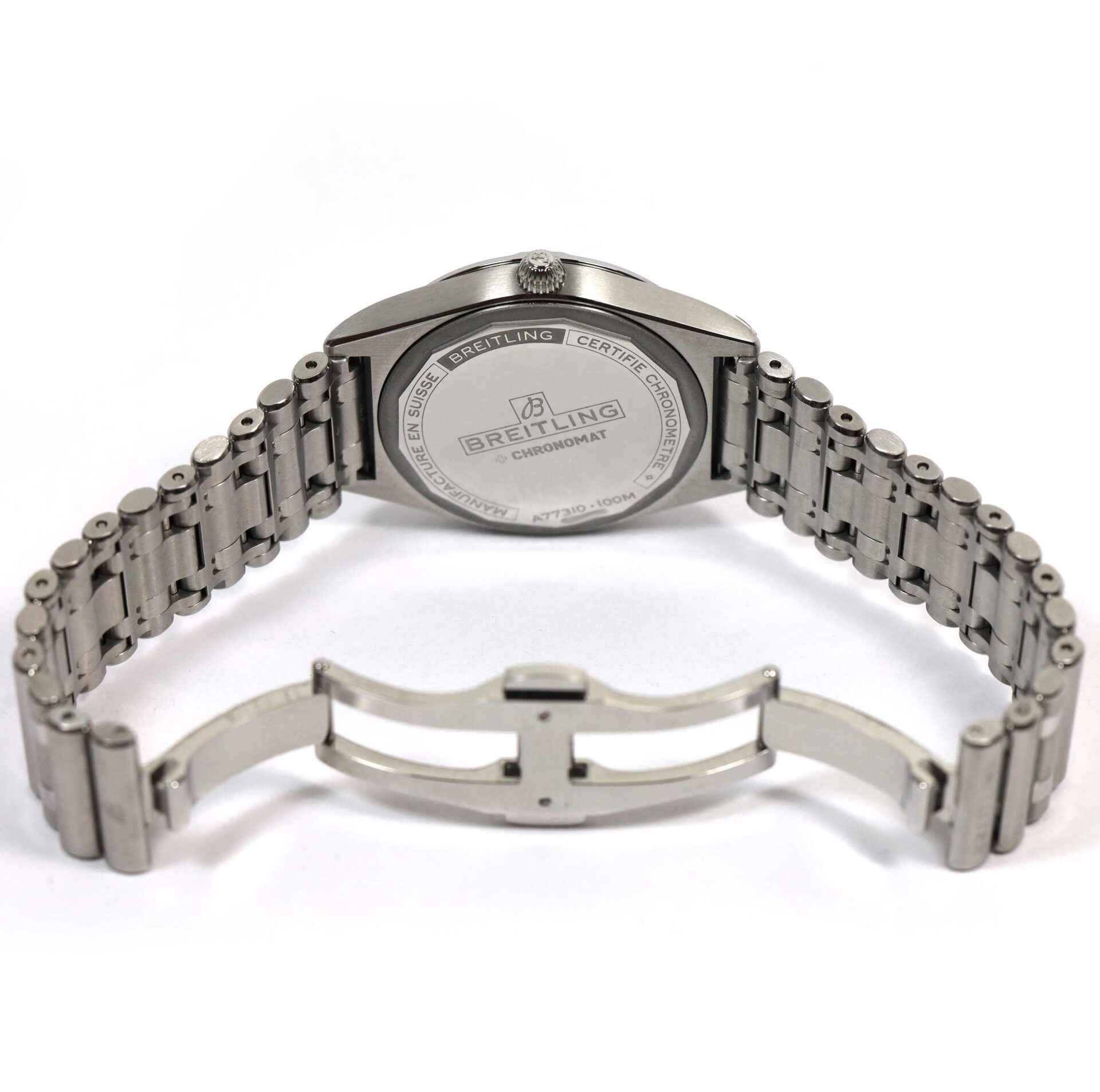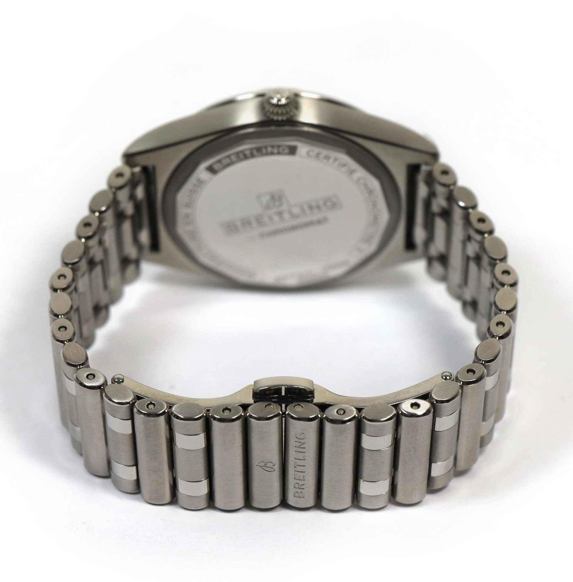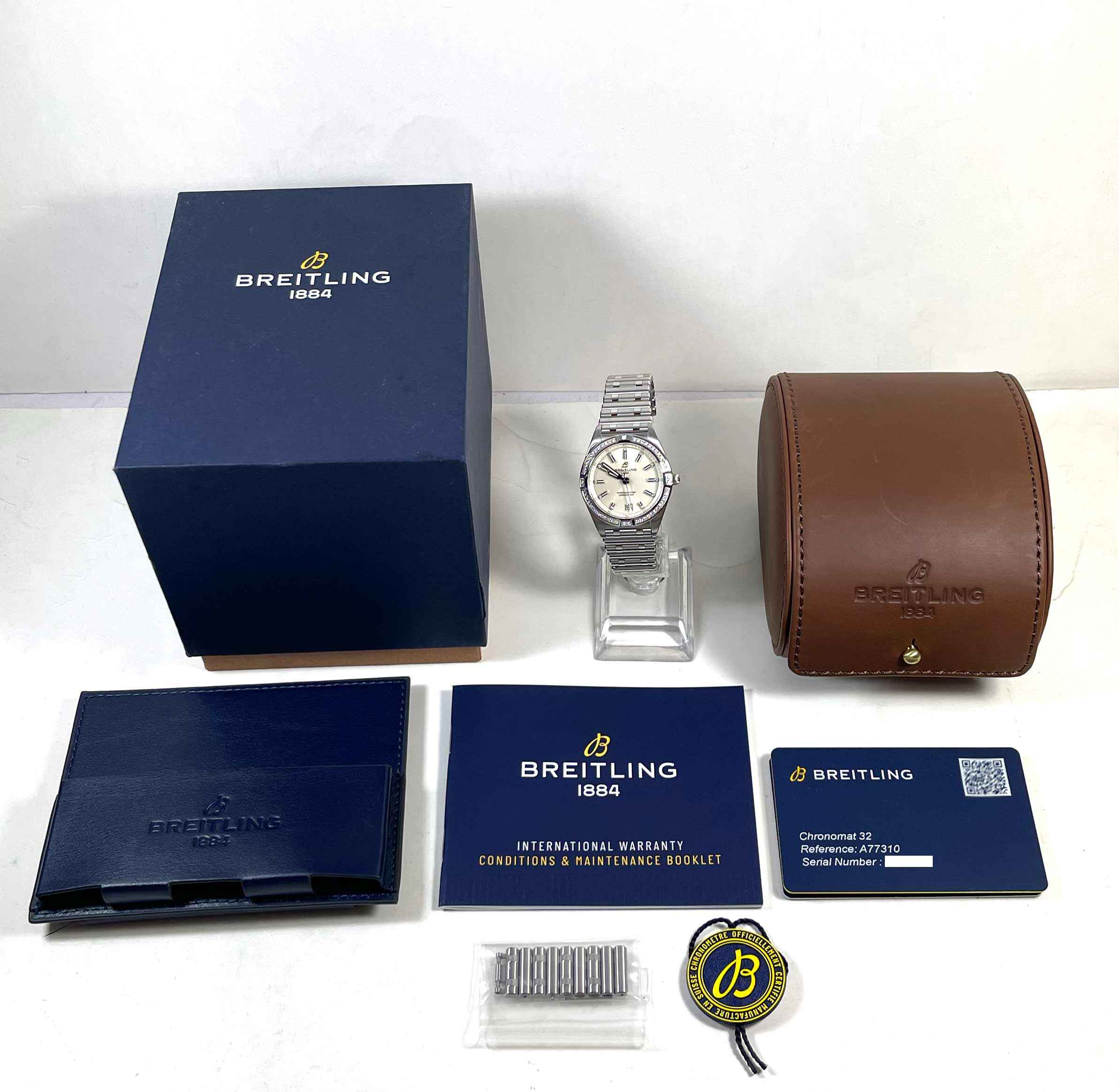 this breitling is in mint condition and comes with its box, booklets, hang tag, spare links, and warranty card as shown in the pictures attached. This watch is in stock and available to ship immediately!