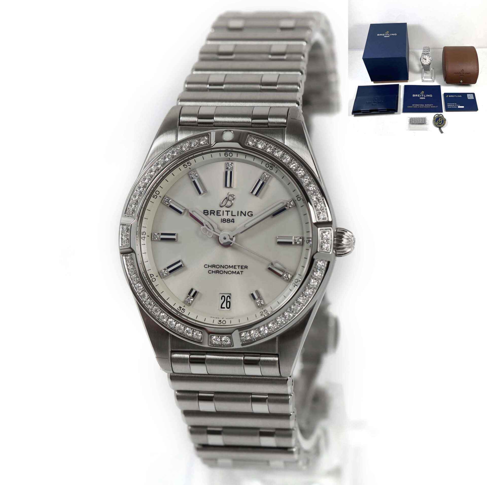 Mint Ladies Breitling Chronomat Quartz A77310591A1A1 32mm Diamonds Box Papers