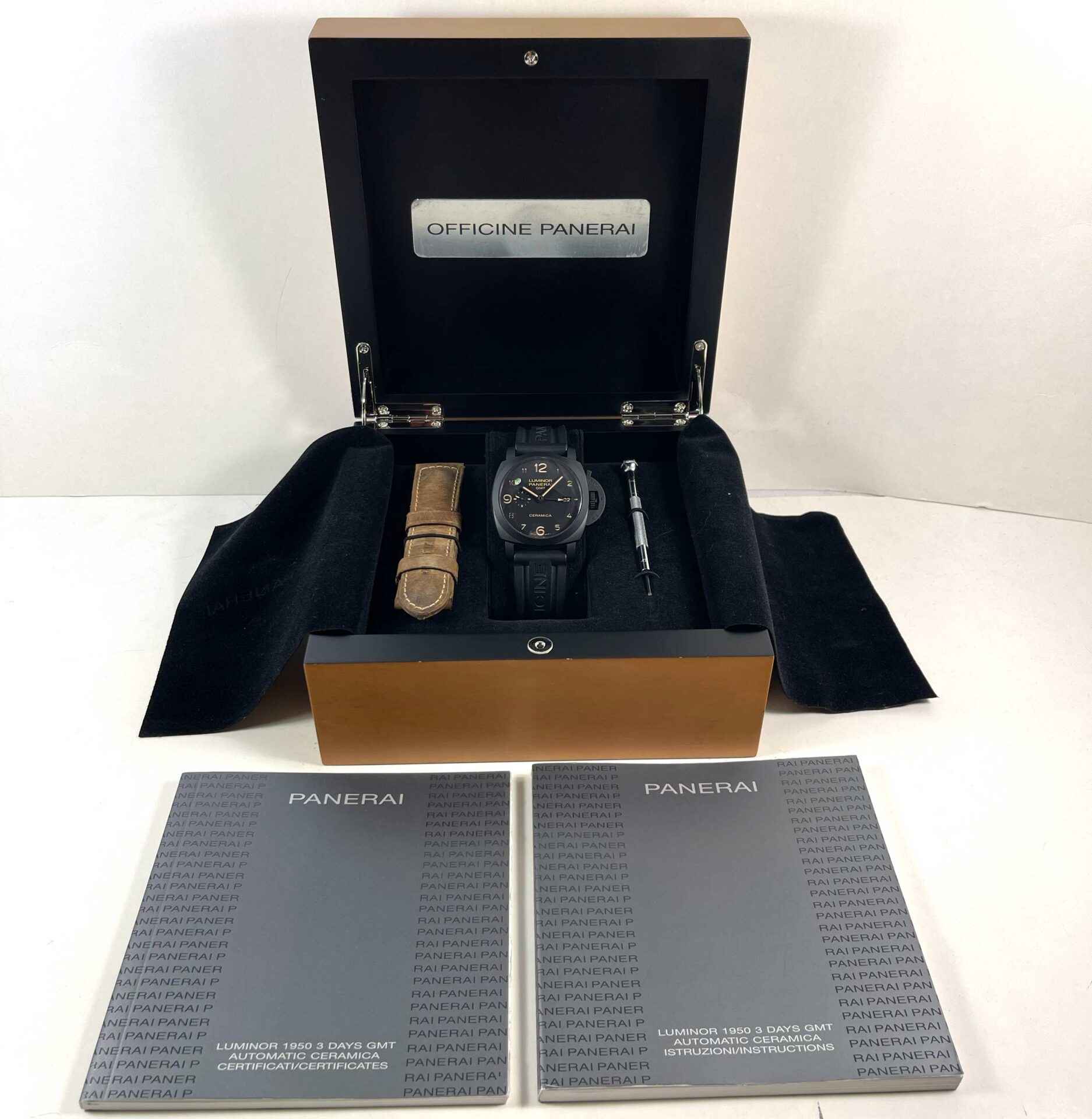 this panerai is in mint condition and comes with its box, papers, panerai tool, one additional leather strap, and warranty booklets. This watch is in stock and available to ship immediately!