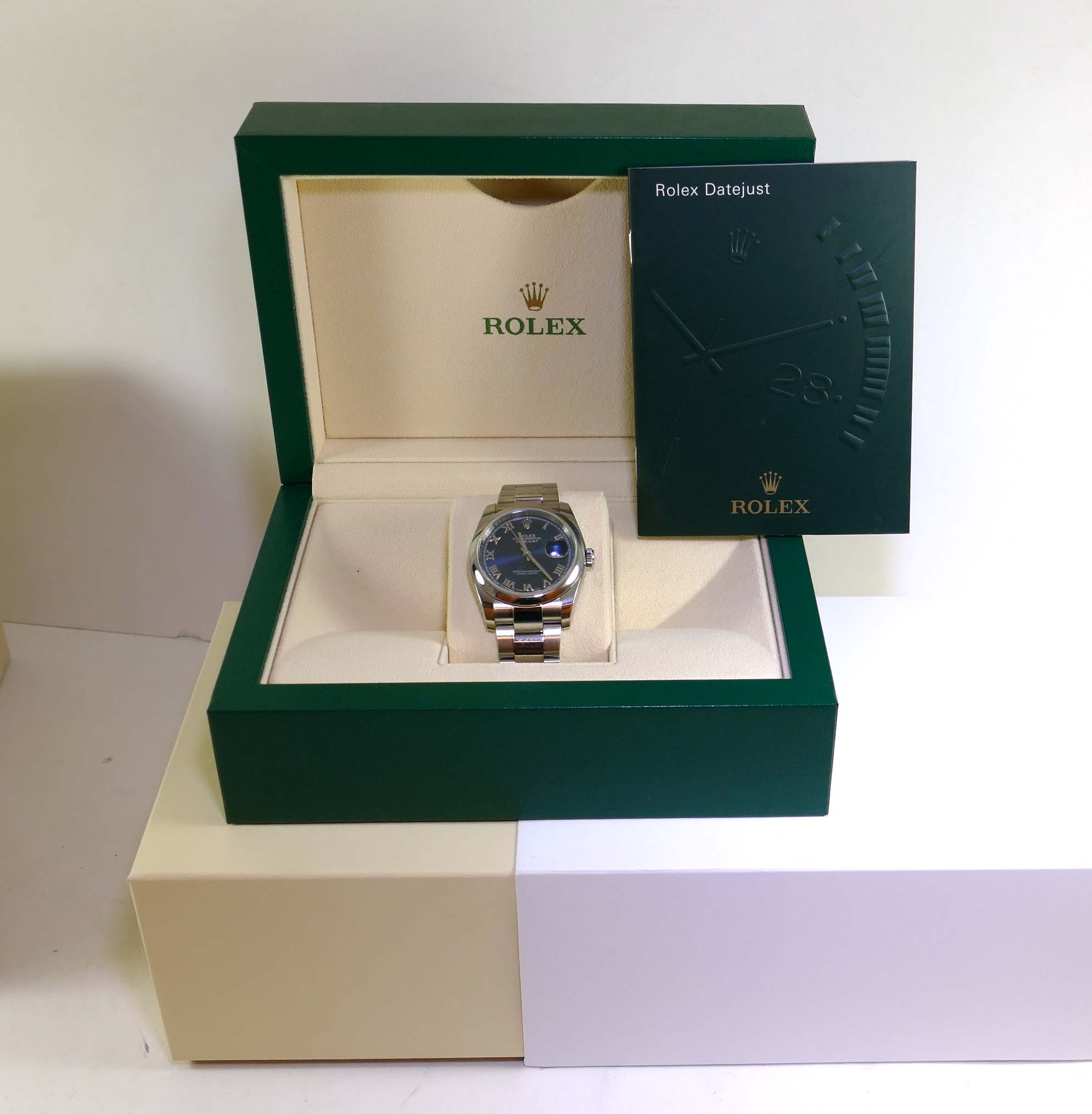 Read Morethis watch is in amazing condition and is 100% original. It comes with its original box and booklets, however no warranty certificate. The inner chapter ring is engraved (rehaut), and it is a random serial, this is one of the most recently produced 116200’s. The bracelet has all of its original links.