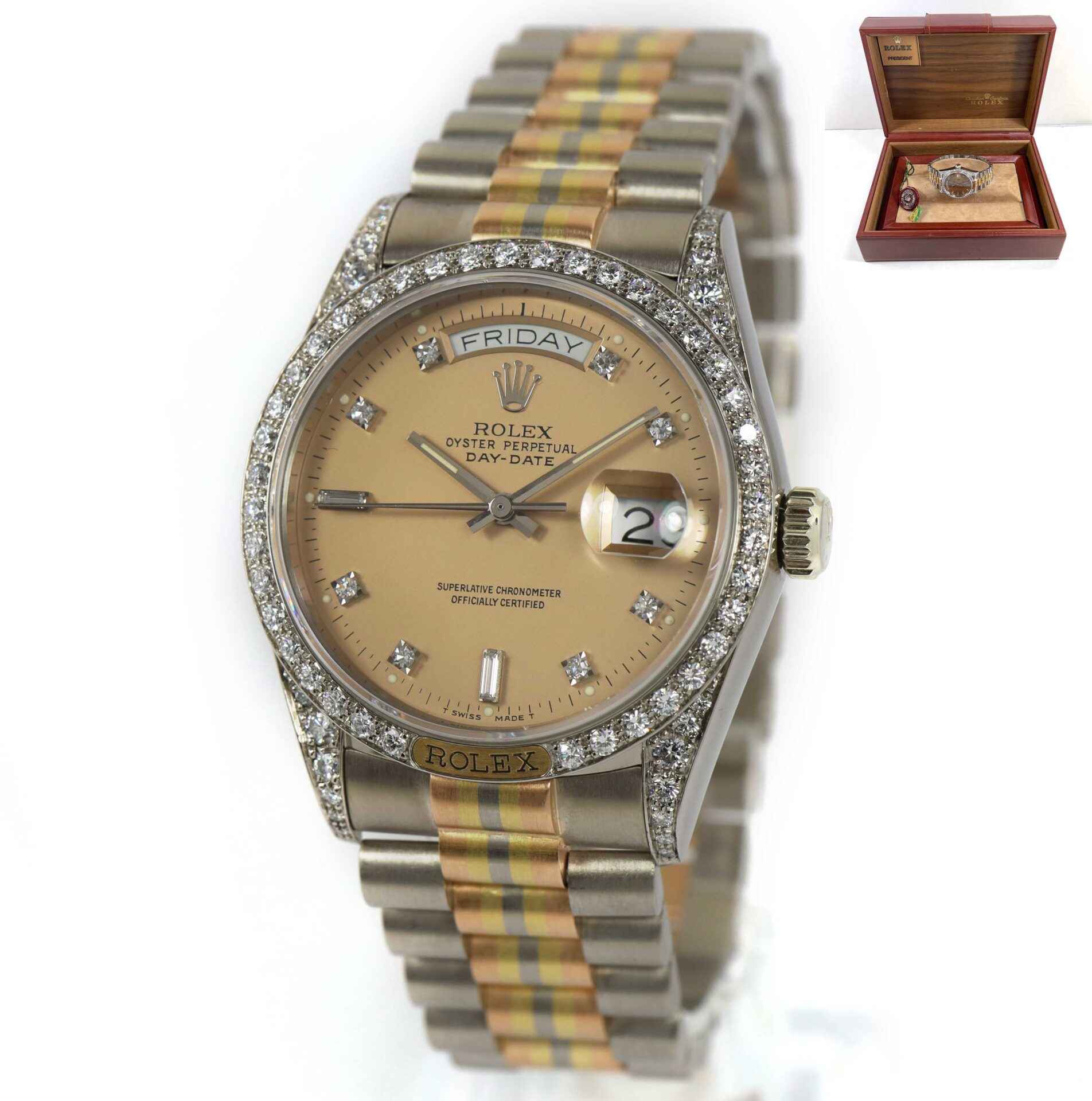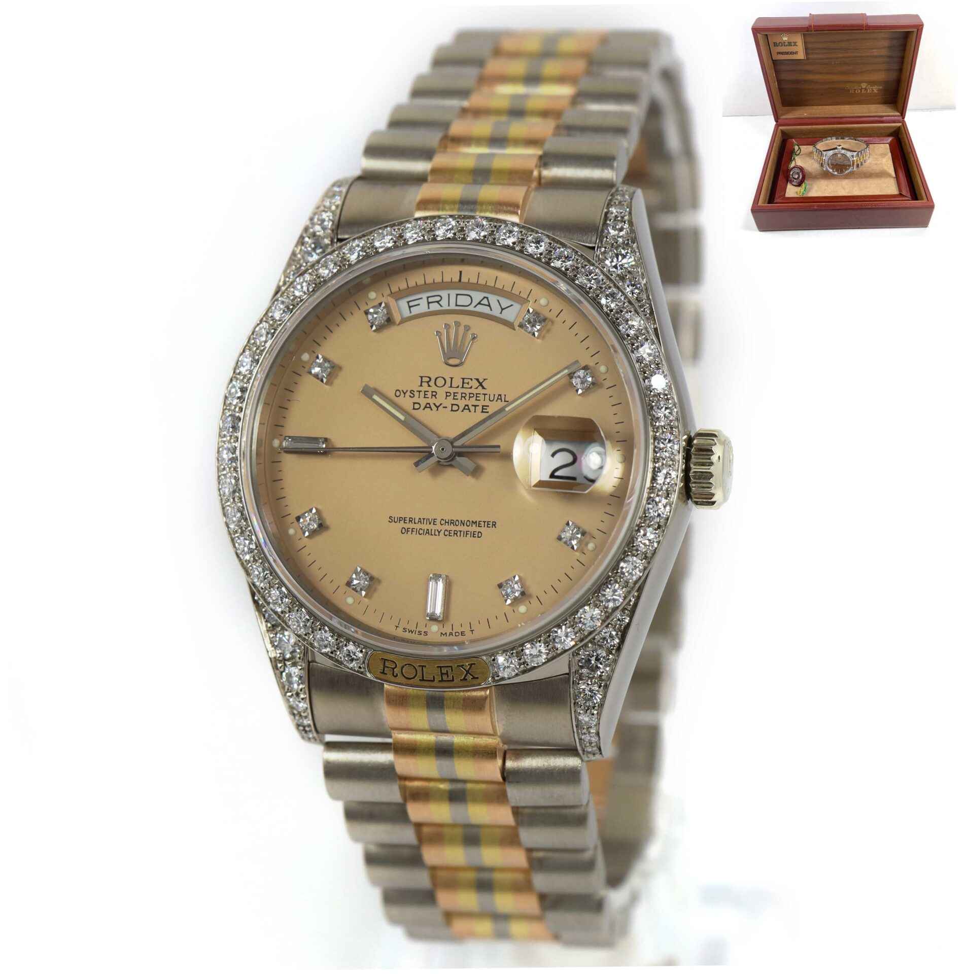 Mint Unpolished Rolex Day-Date President Tridor 18139 36mm Factory Diamonds