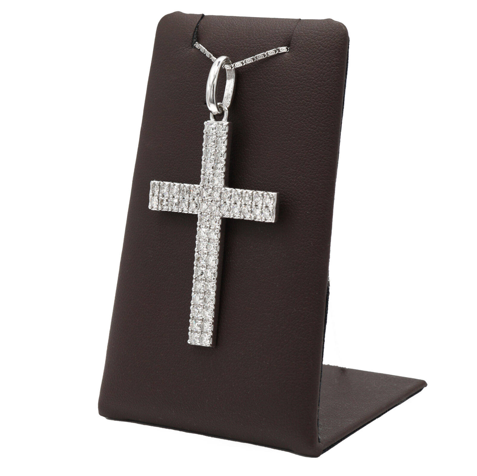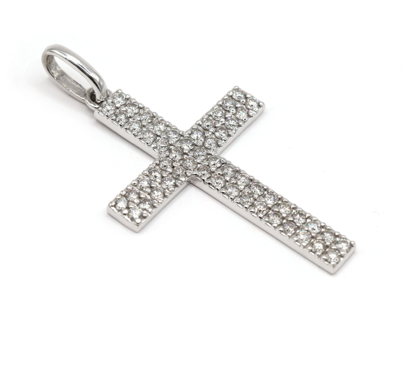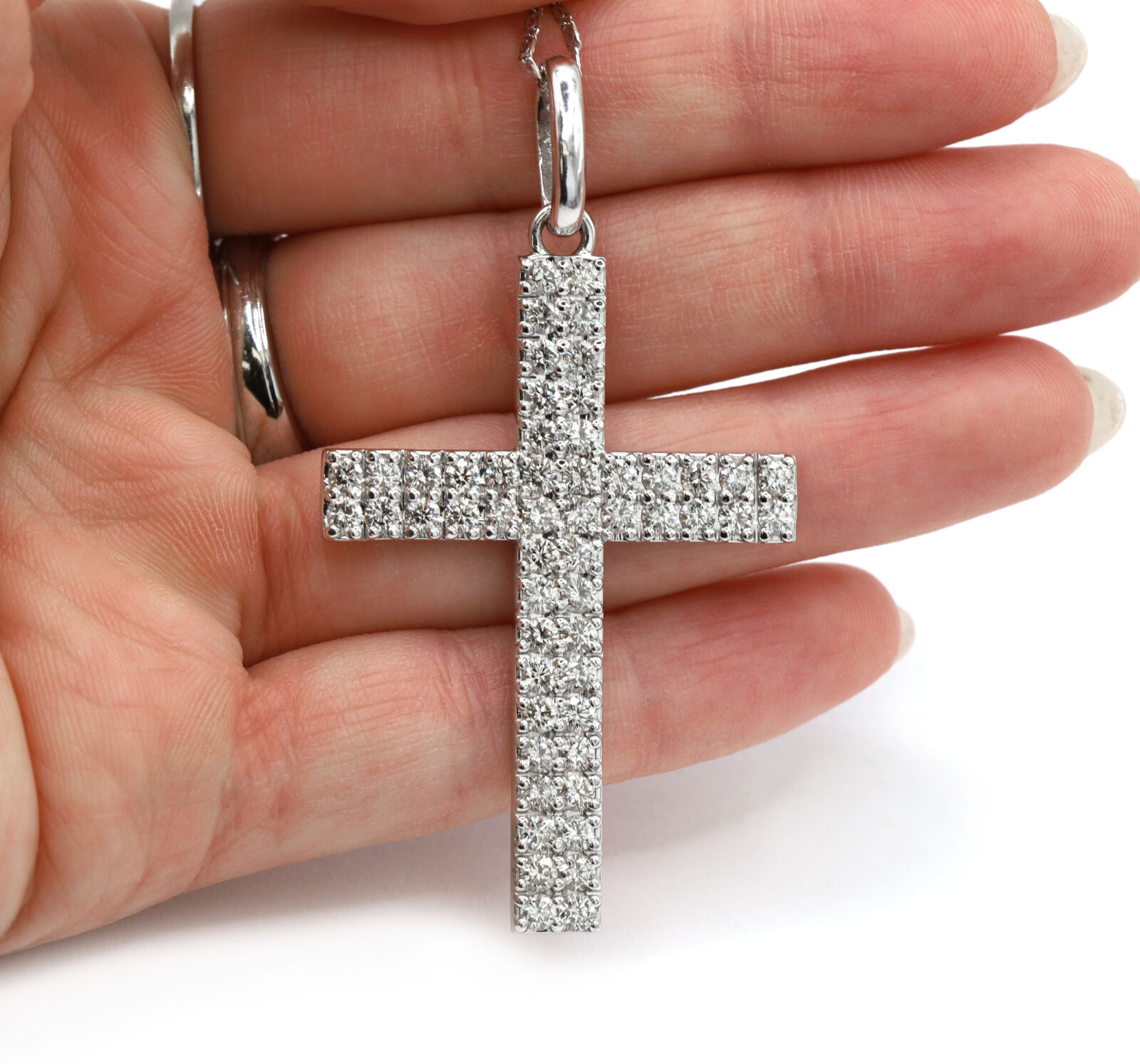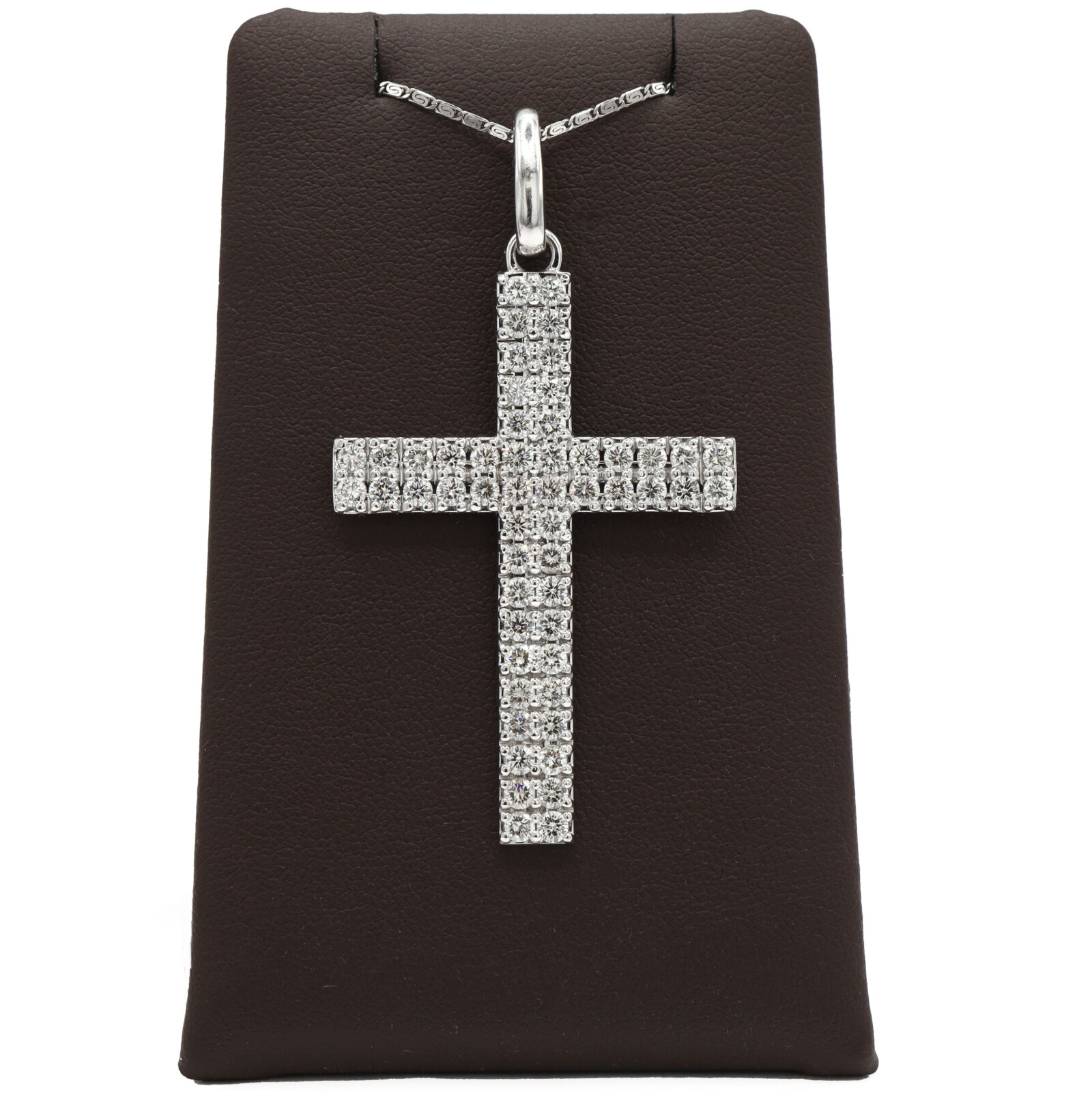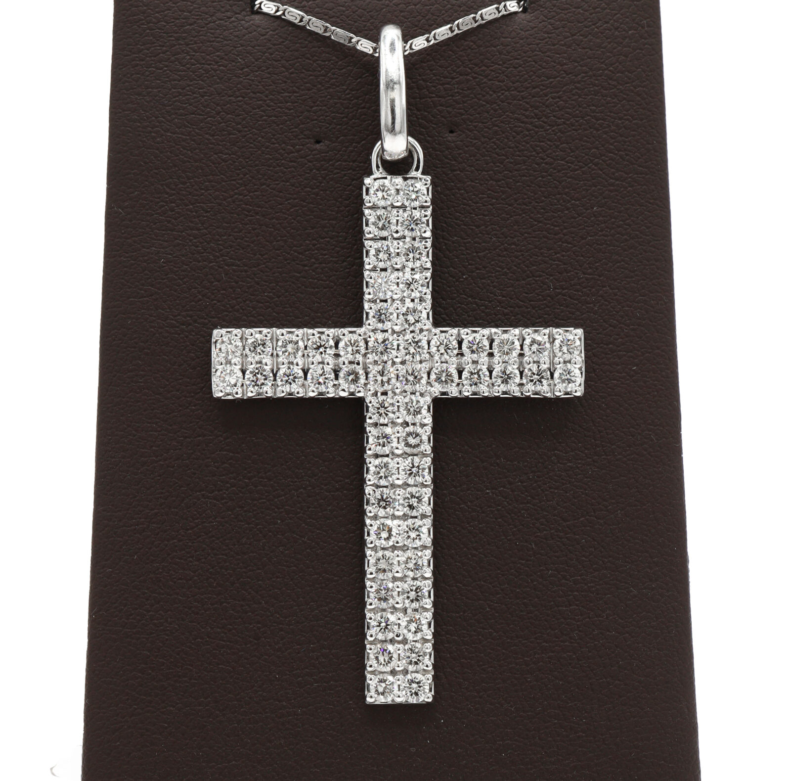 Material: 14k White Gold Gemstone: Natural Diamond Carat Weight: Approximately 3.50 Carat Clarity: VS2 Color: G Cut: Round Type: Cross Pendant Measurements: 2.5 x 1.35” Weight: 8.6 Grams