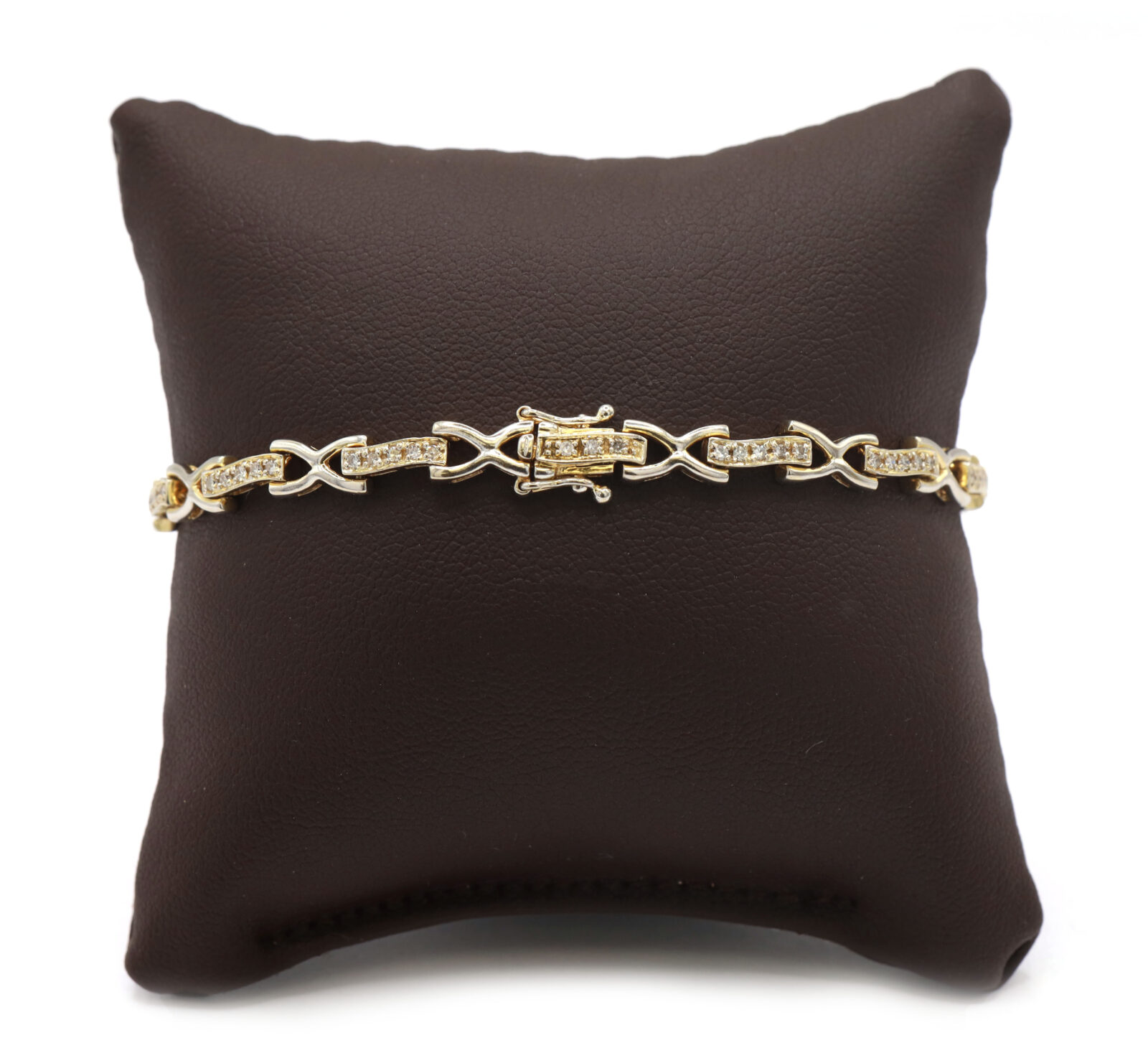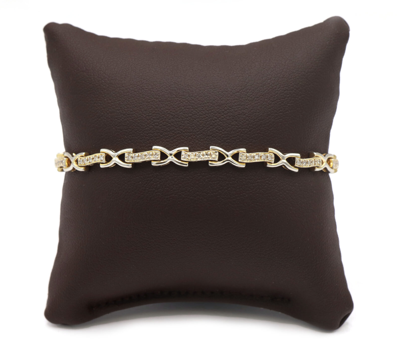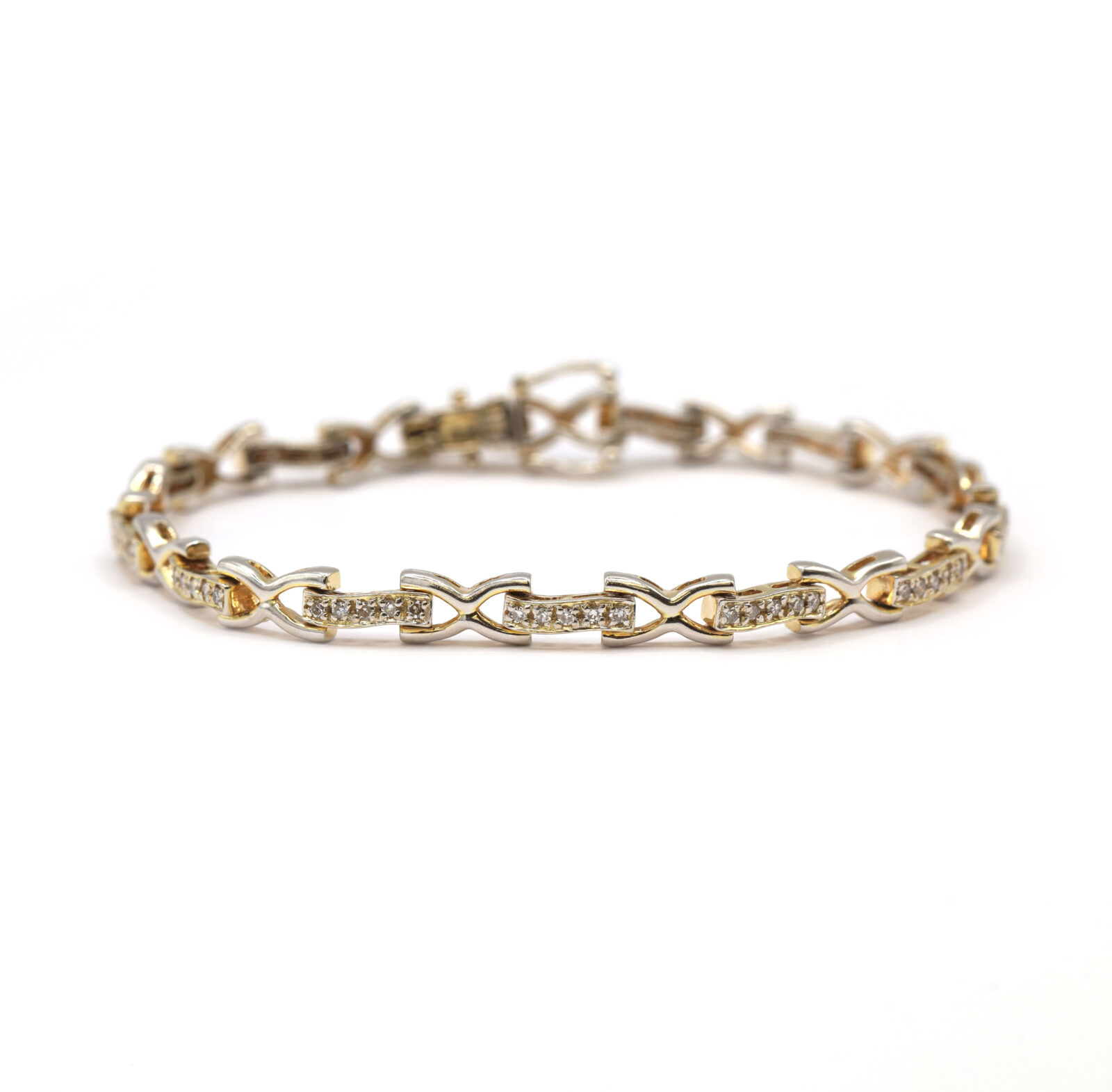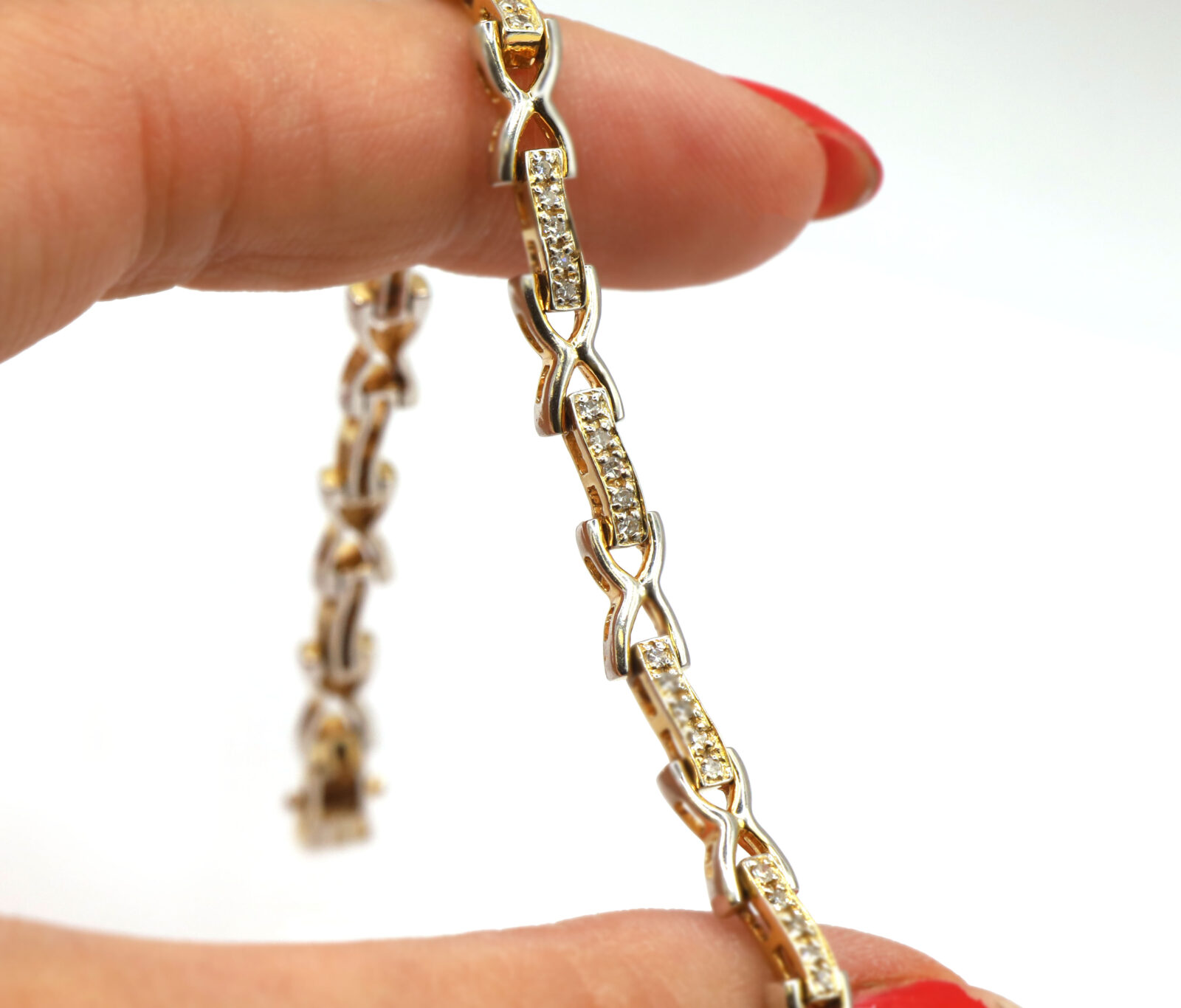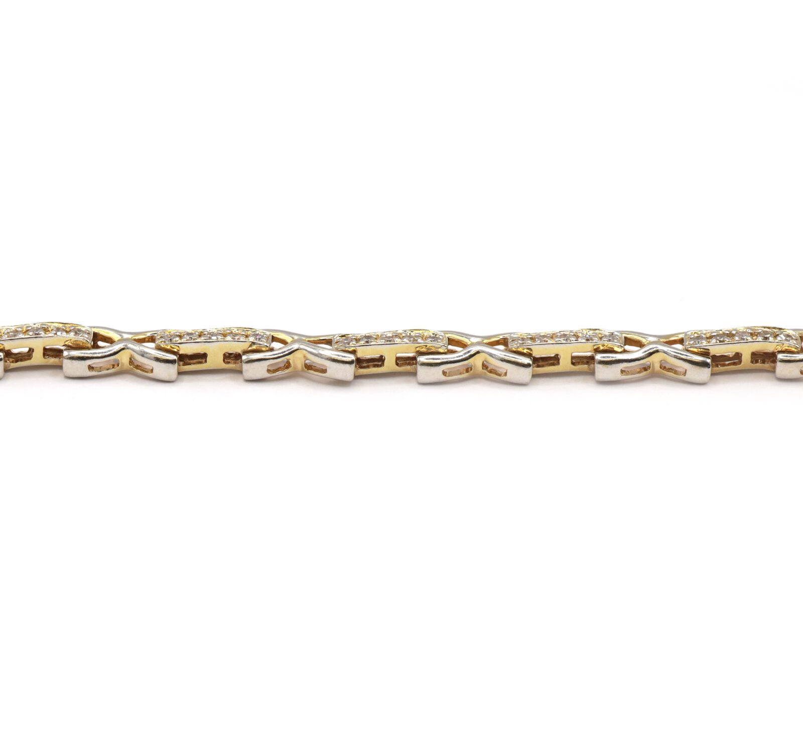Natural Diamond Two Tone X Link 14K Yellow White Gold Women’s Bracelet