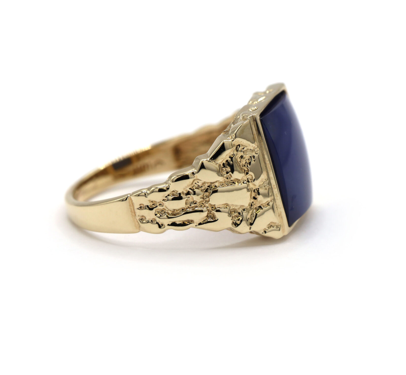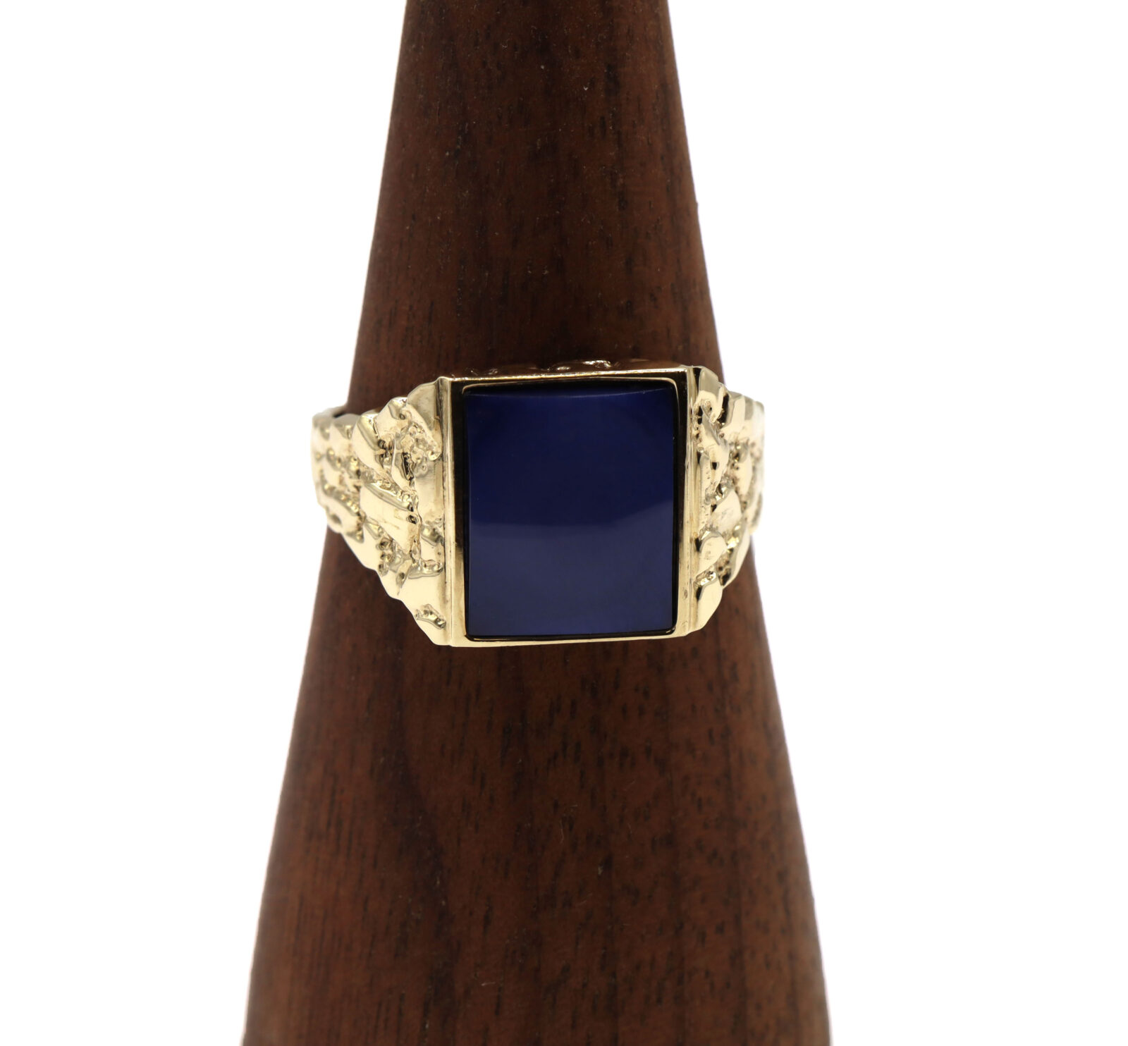 Natural Star Sapphire Rectangle Cabochon Gold Nugget 10K Yellow Gold Men’s Ring