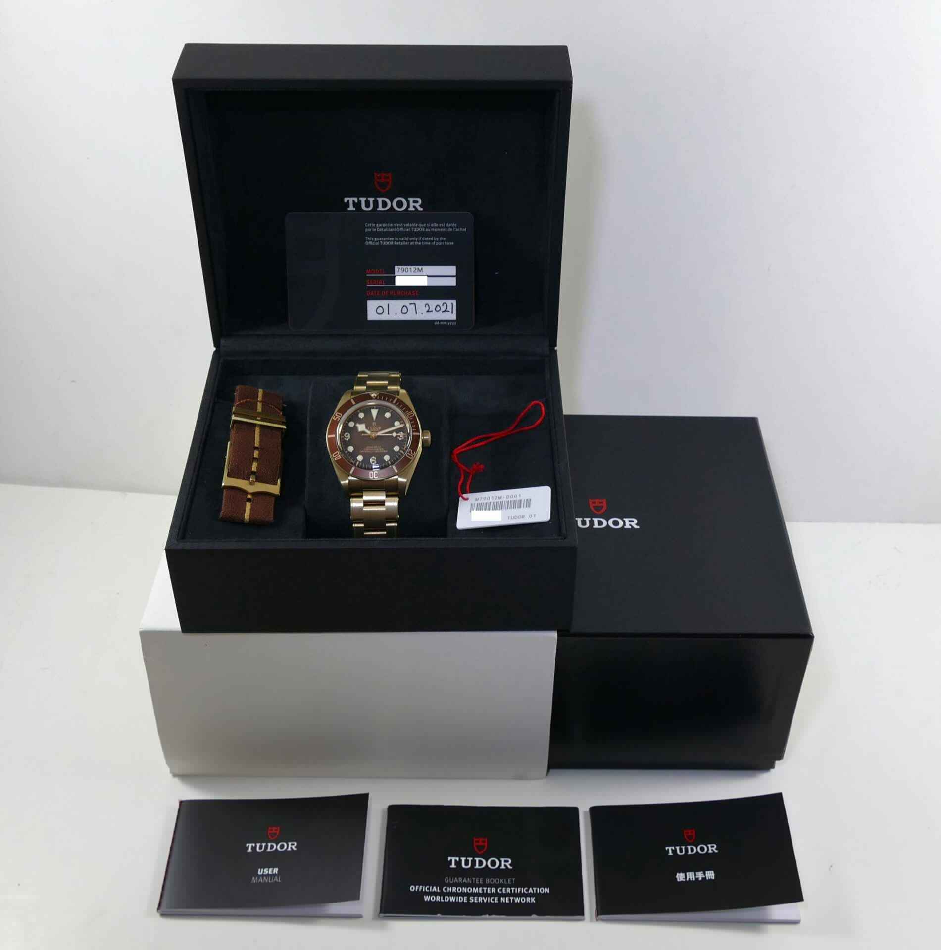 this tudor watch is brand new and comes with its complete set of box, papers, hang tag, one extra strap, and warranty card. This watch is in stock and ready to ship immediately!