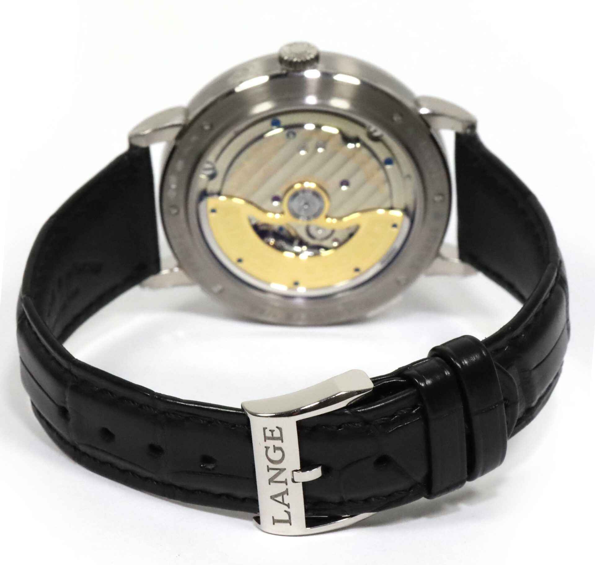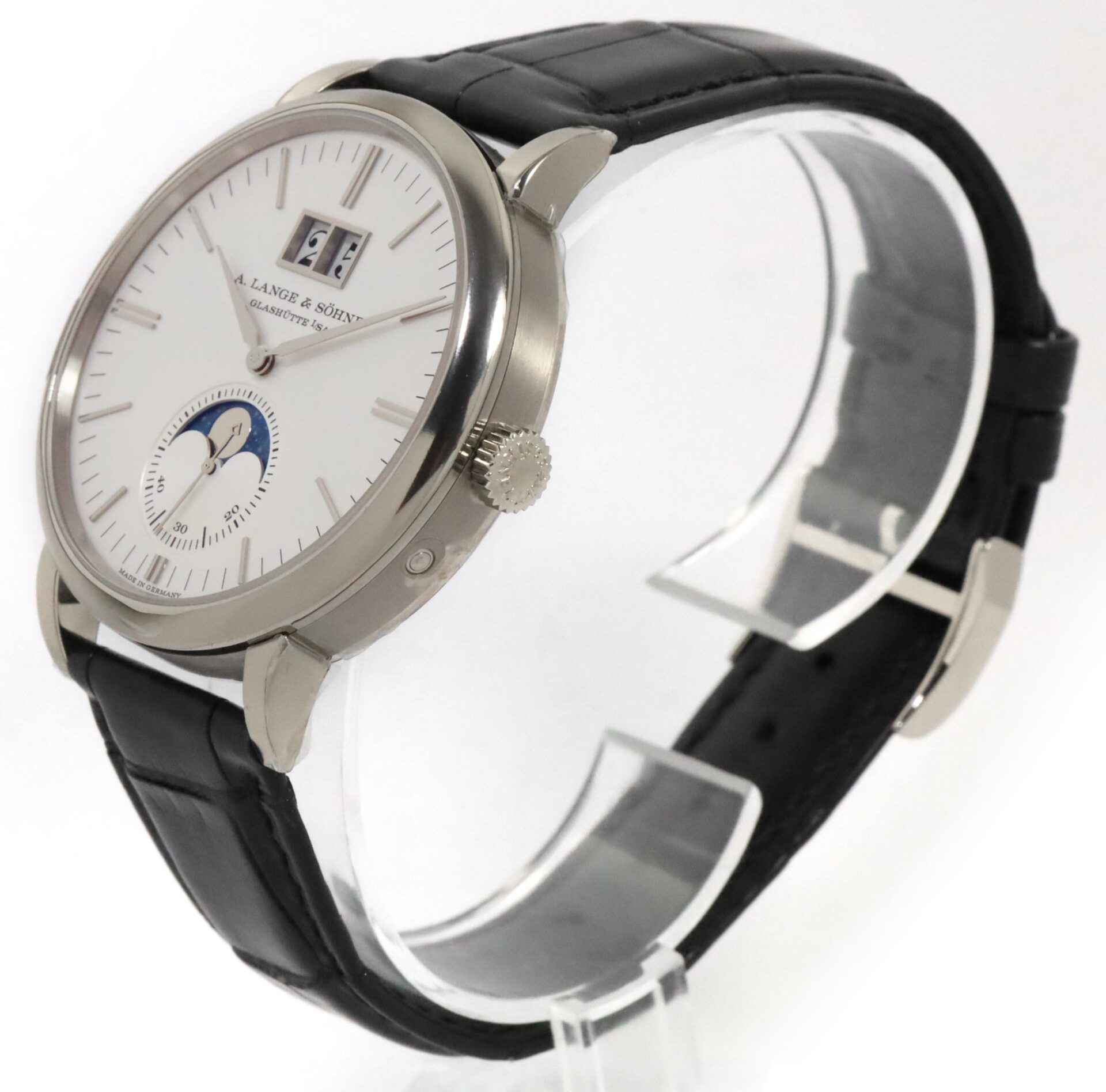 Read Morethis a. Lange saxonia is new with stickers and comes with its box, papers, a. Lange tool, microfiber cloth, and warranty booklet dated 2022. This watch features a 40mm 18k white gold case that surrounds a silver dial displaying the lange outsize date and moon phase on a black leather strap. this watch is in stock and available to ship immediately!