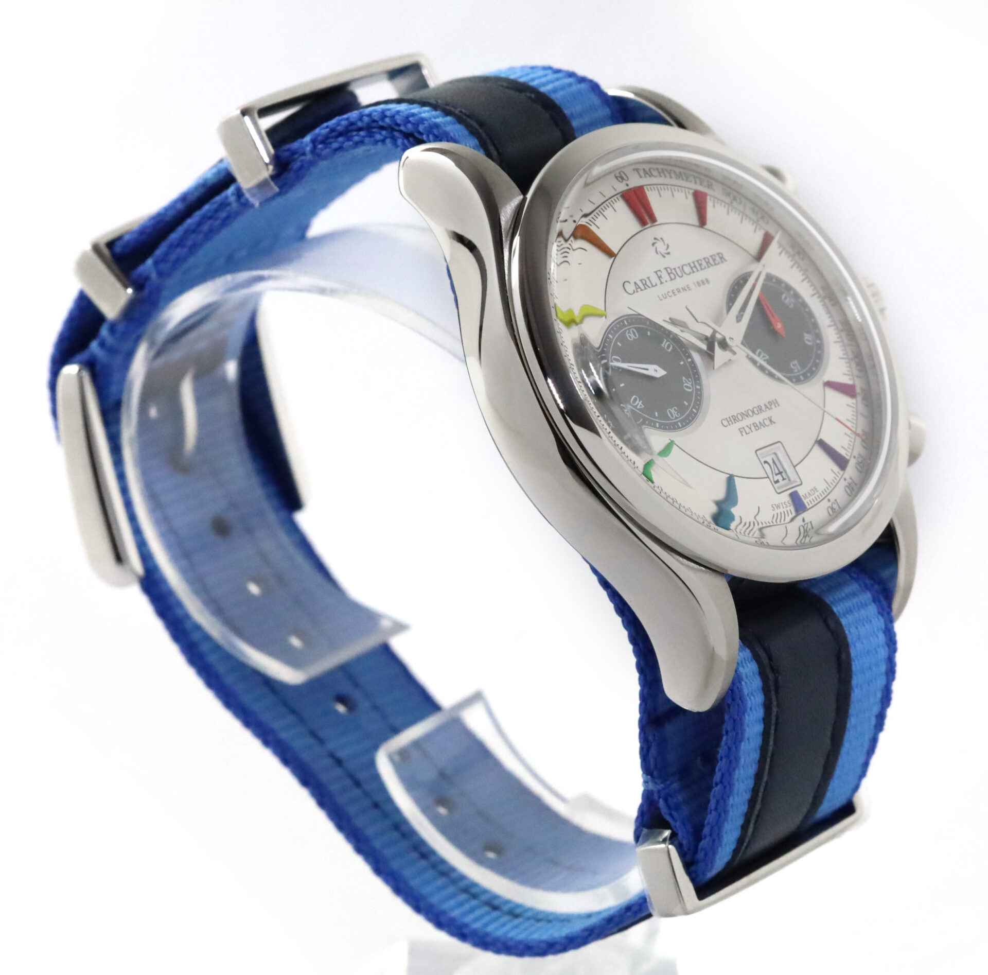 This Carl F. Bucherer watch is new and has stickers still on the bracelet as shown in photos attached. This watch comes with box, booklets, one additional strap, travel...