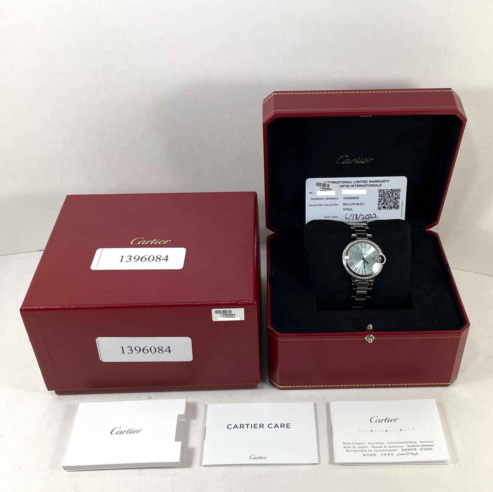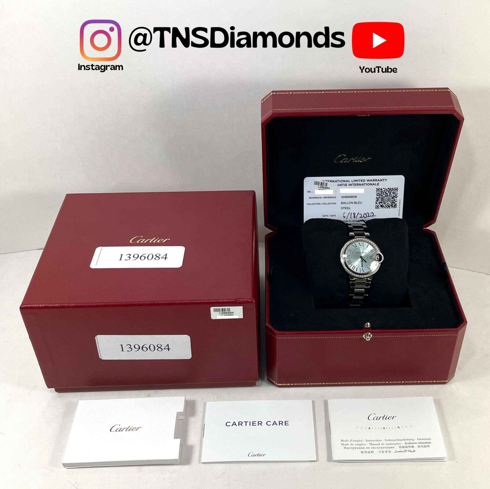 Read Morethis cartier watch is new with stickers on the bracelet and comes with its box, papers, and warranty card dated june 18th, 2022. This watch features a steel case surrounding the bezel set with 50 brilliant-cut diamonds totaling 0.58 carat, a blue silvered sunray-brushed dial and comes on a steel bracelet. This watch is in stock and available to ship immediately!