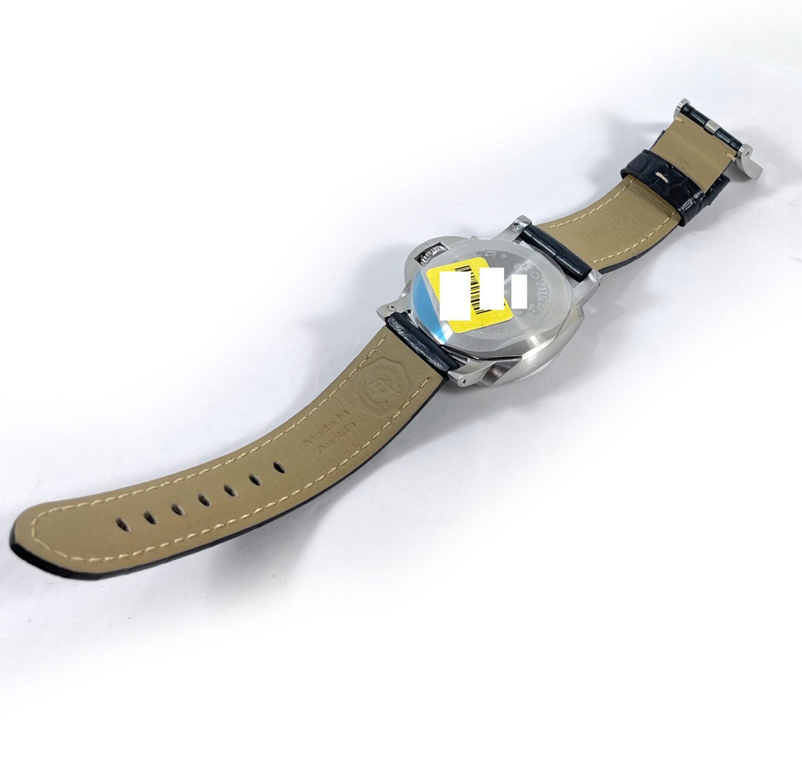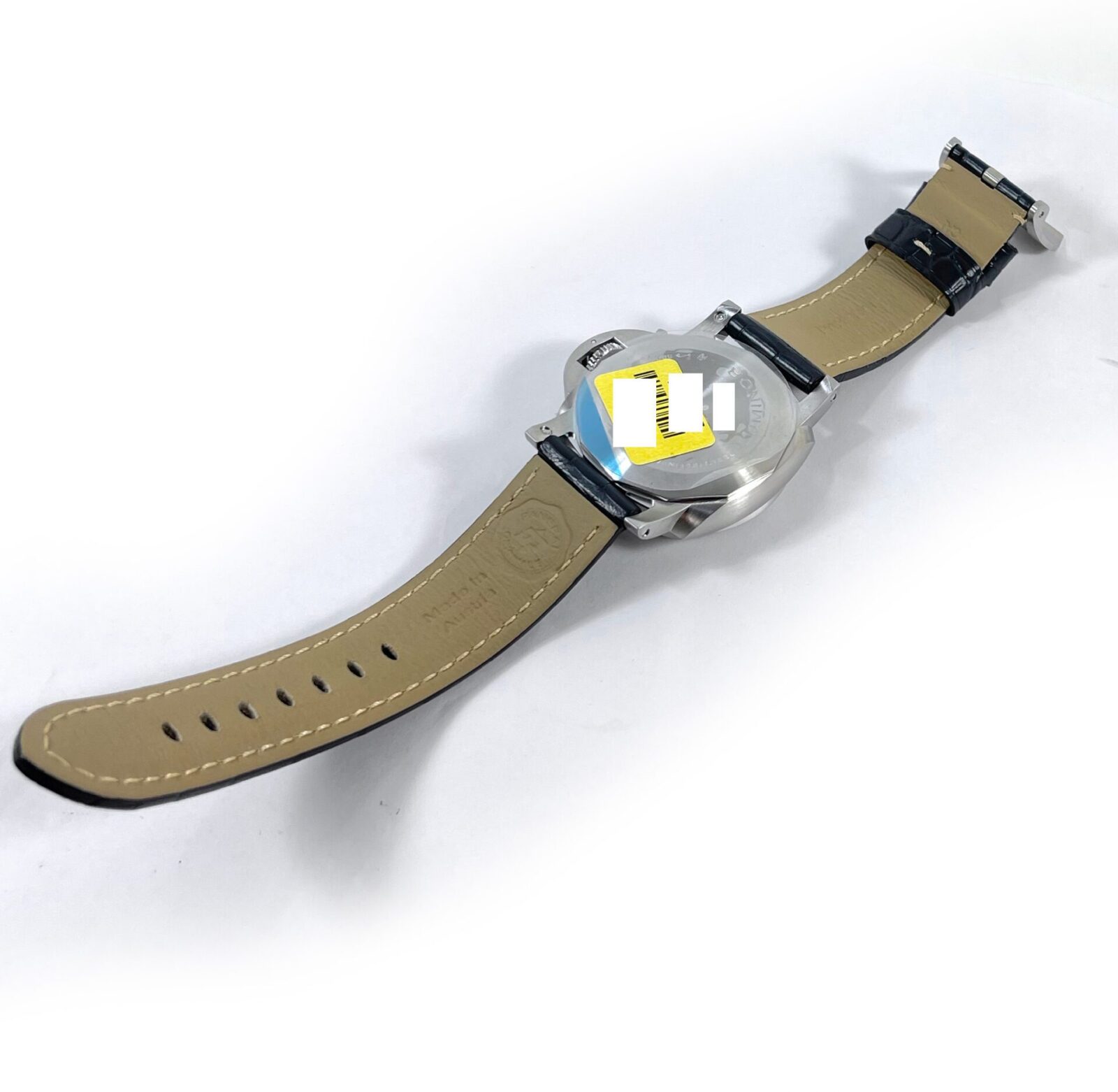 this panerai watch is new and comes with stickers still on the caseback as shown in the photos attached. This watch comes complete with box, papers, one extra strap, panerai tools, bezel protector, and warranty card. This watch is in stock and available to ship immediately!