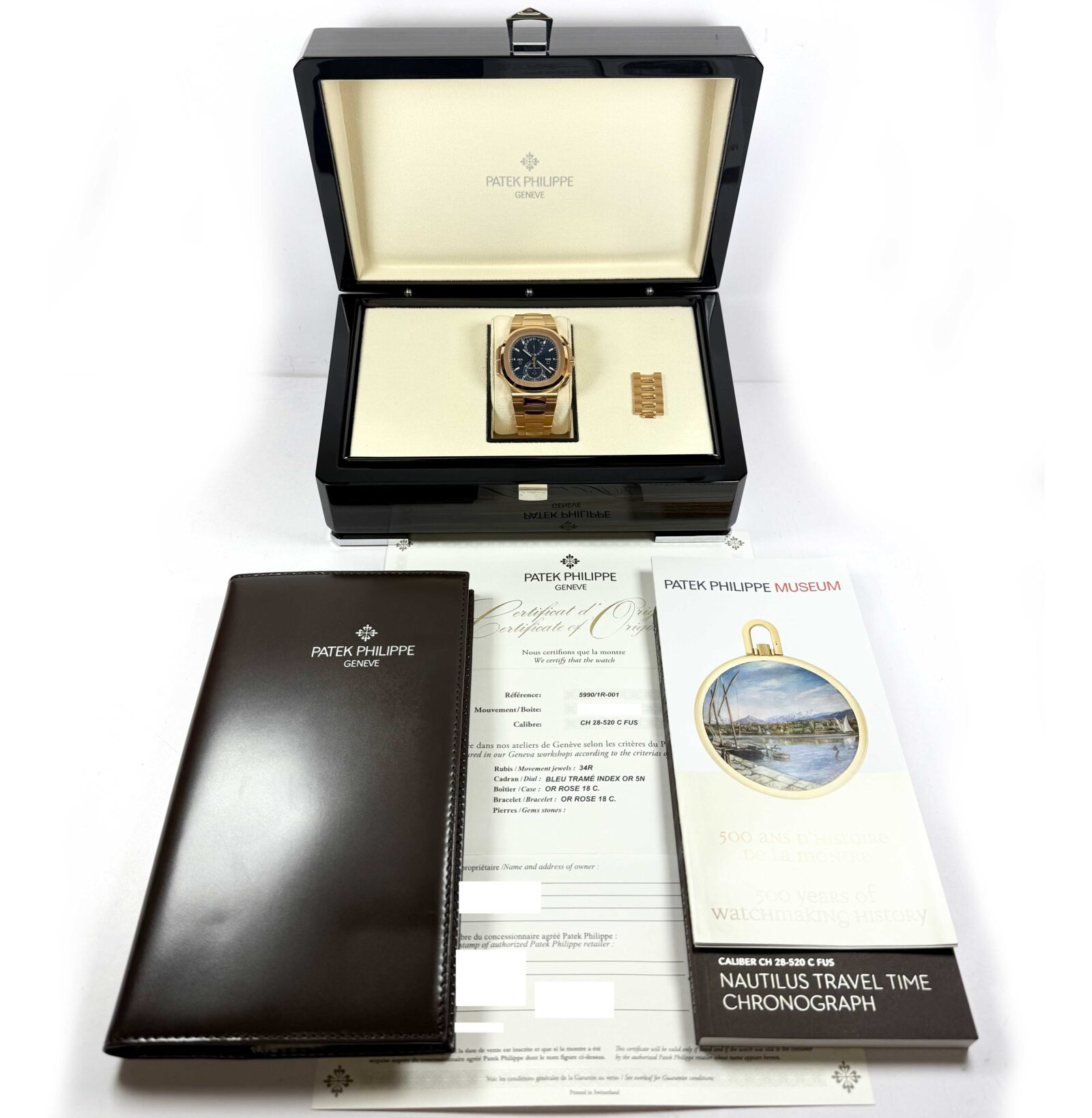 New 2022 Patek Philippe Nautilus Travel Time 5990 40MM Blue 18K Rg Box Papers