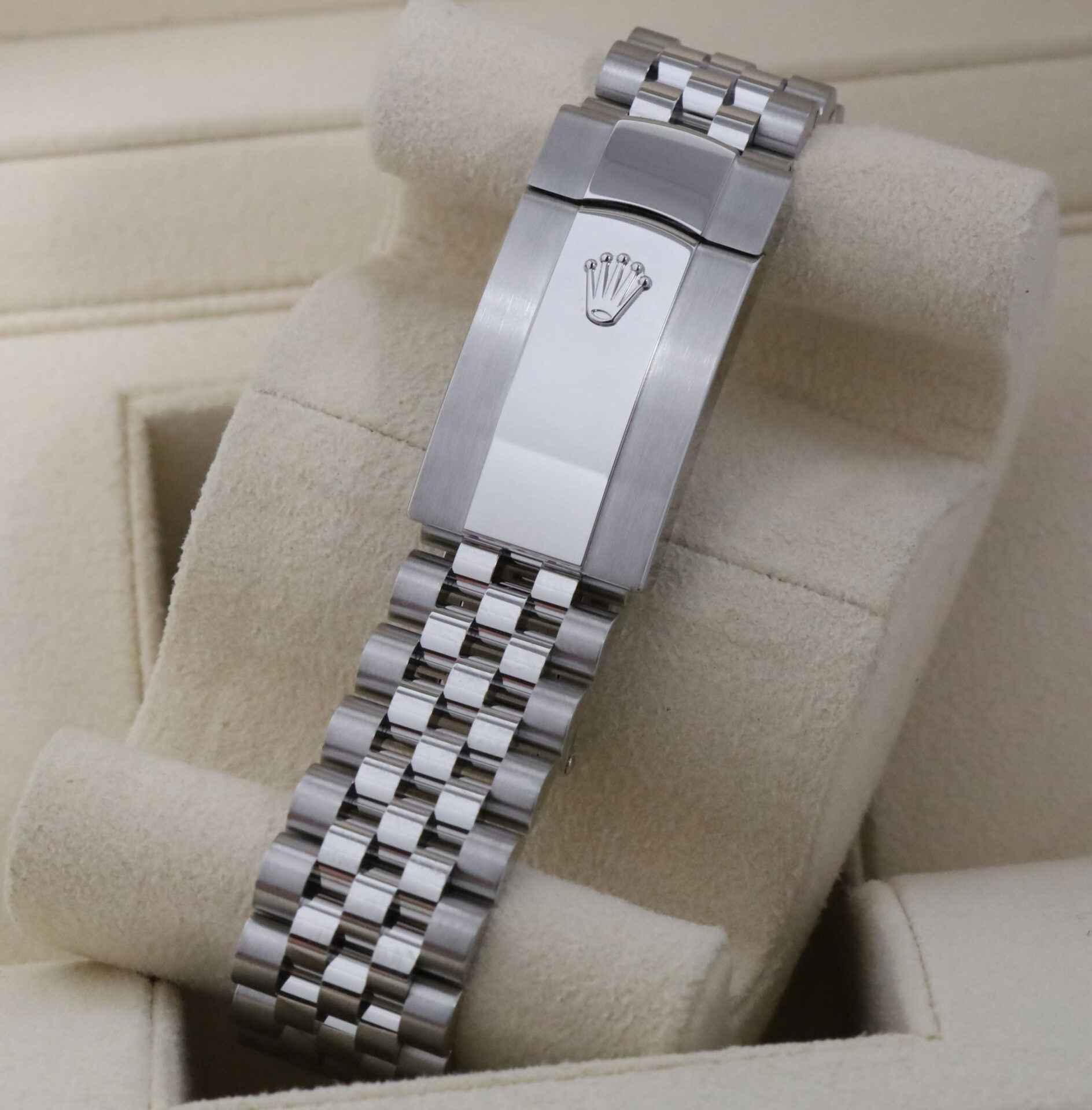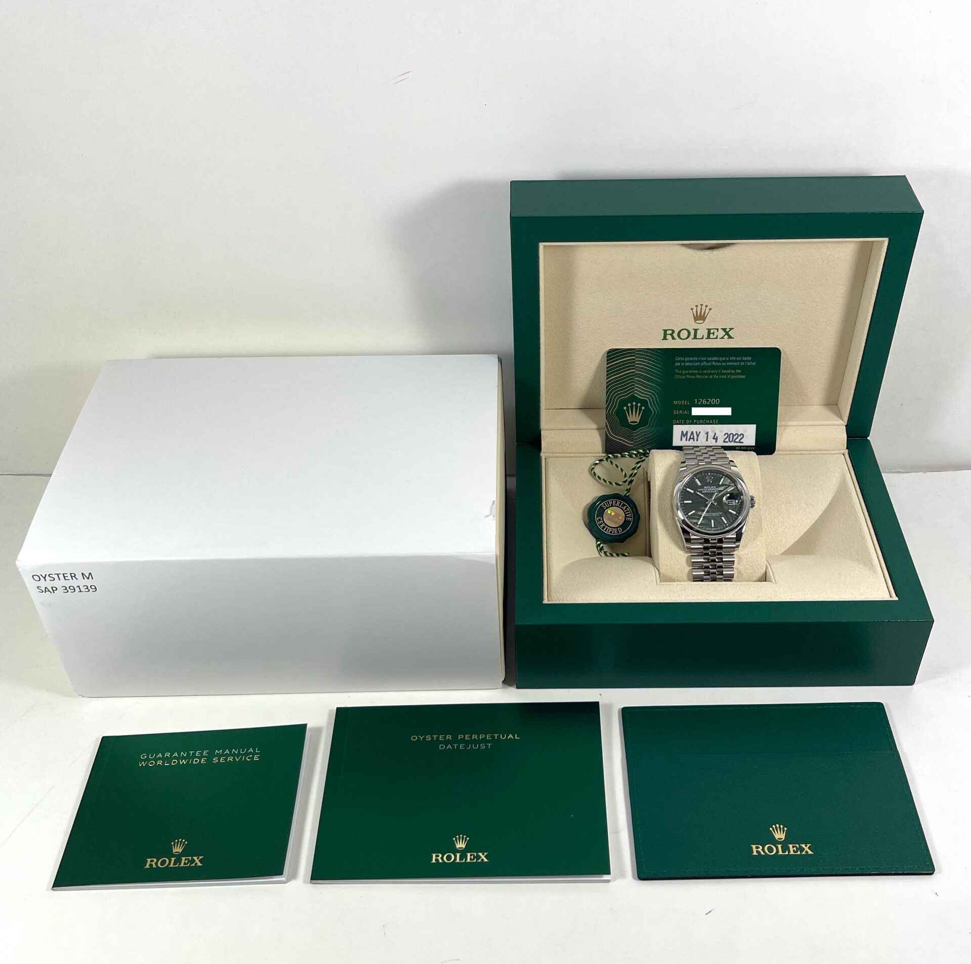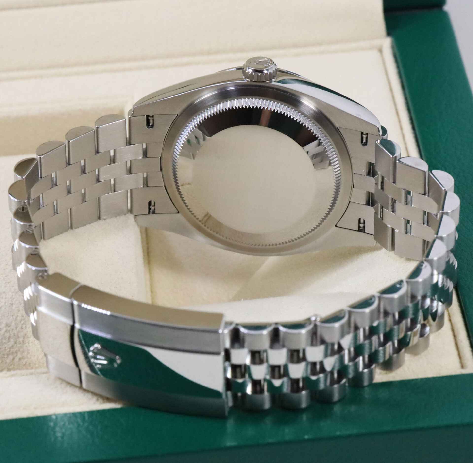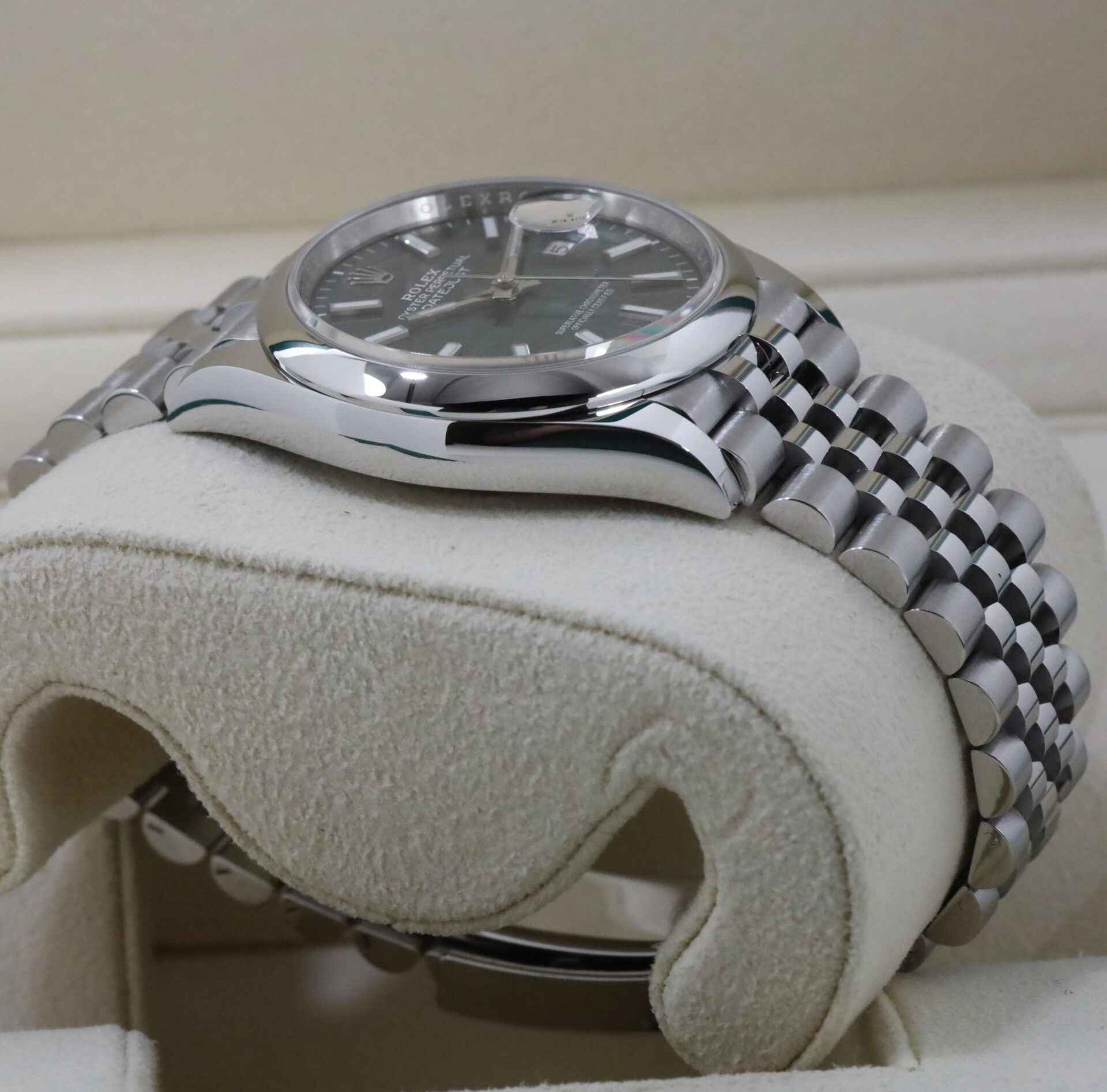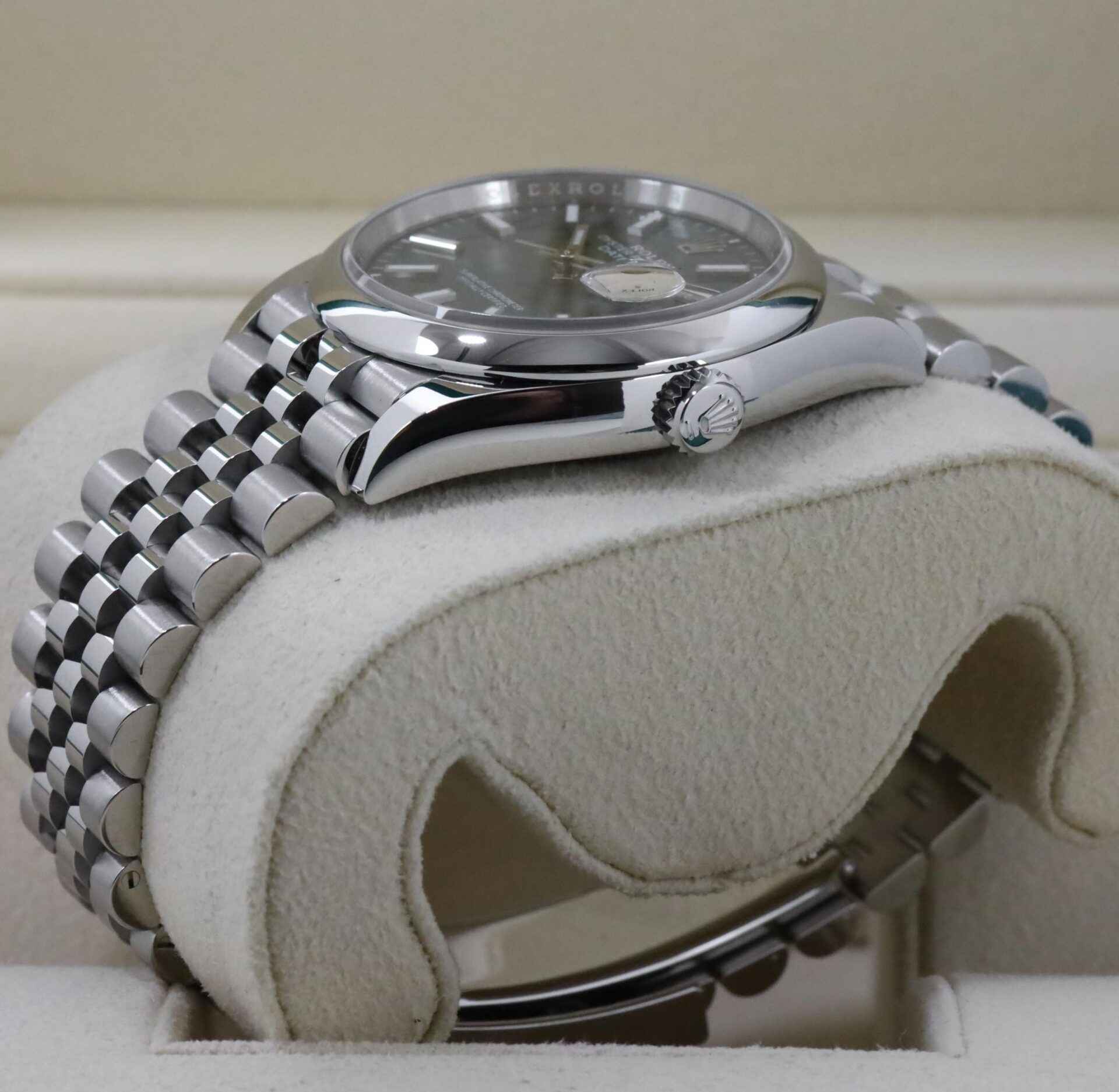 Read Morethis rolex is new and comes with box, papers, hang tag, and warranty card dated may 14th, 2022. This watch features a green motif palm dial with a stainless-steel smooth bezel on a steel jubilee band. This watch is in stock and available to ship immediately!