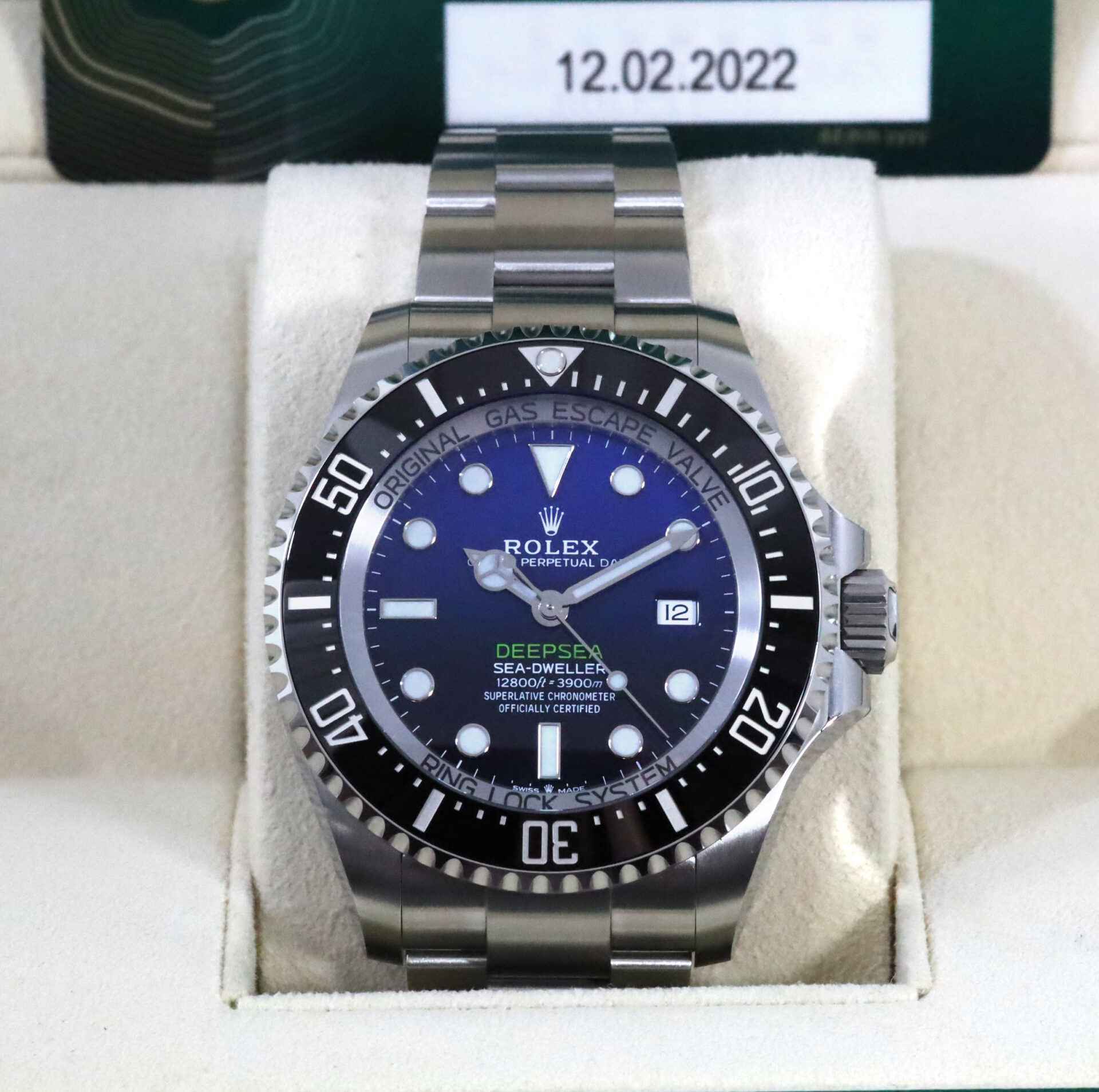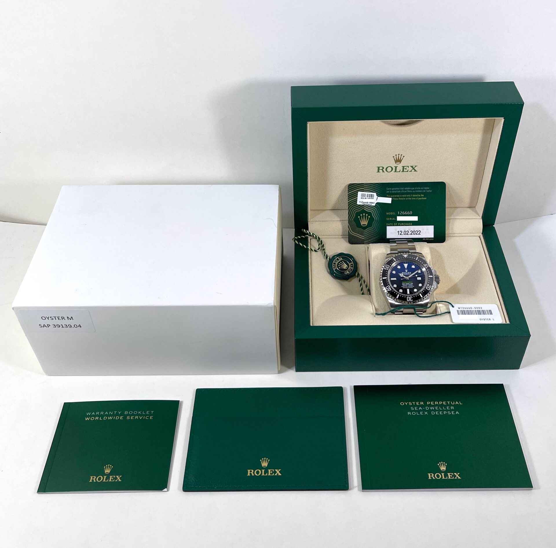 This watch is new and comes with its original box, papers, hang tags, and warranty card dated February 12th, 2022. This watch is in stock and available to ship immediately.