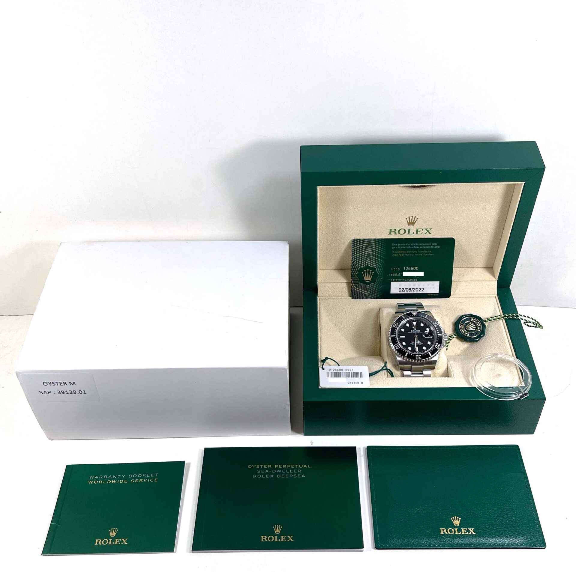 this rolex watch is new and comes with its box, papers, hang tags, bezel protector, and warranty card dated august 2nd, 2022. This watch is in stock and available to ship immediately!