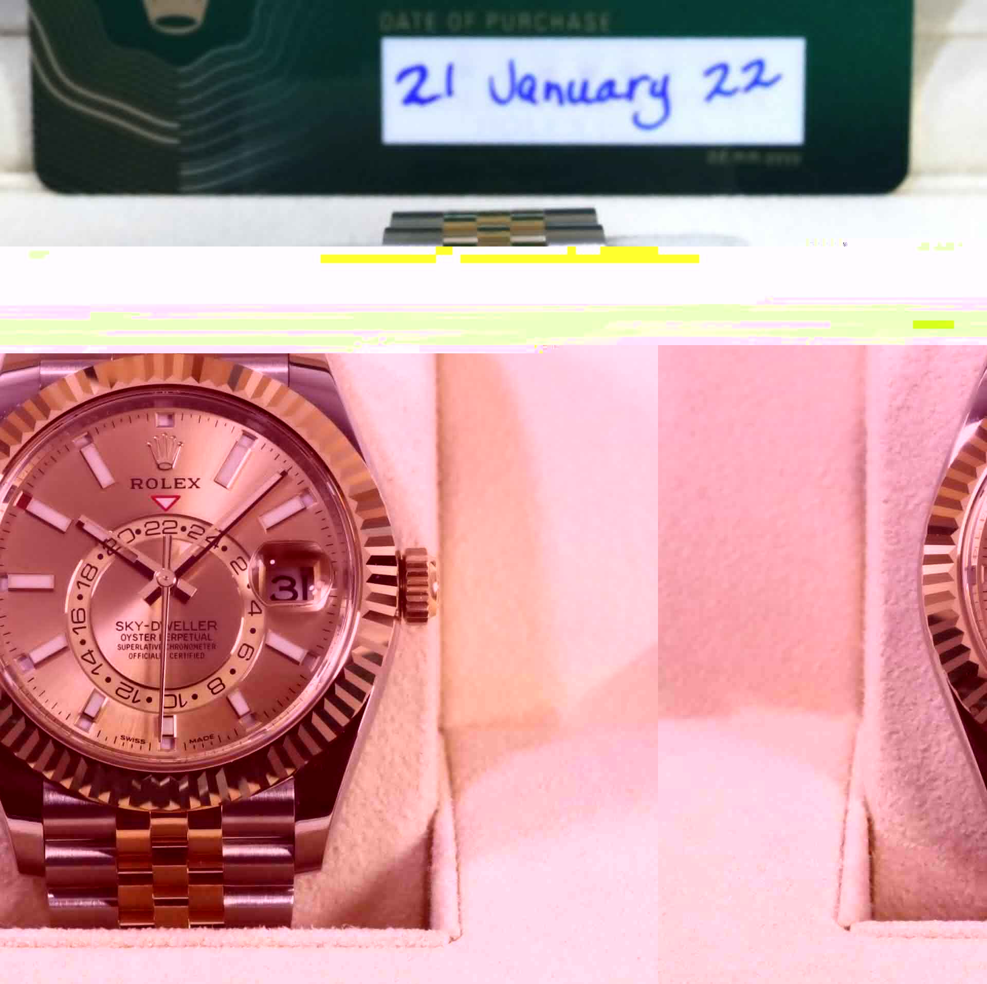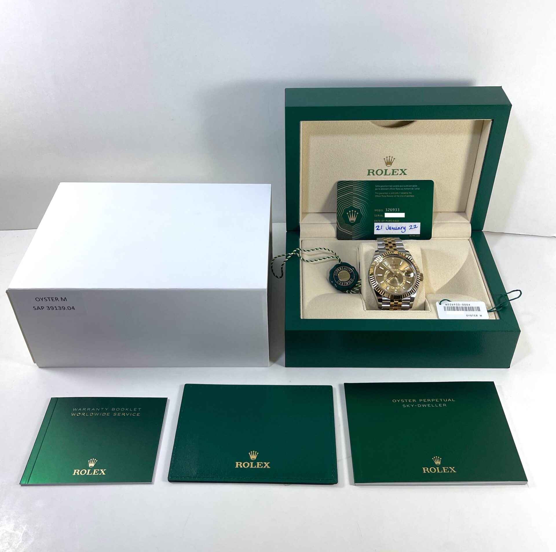 This Rolex is new and comes with box, papers, hang tags, and warranty card dated January 21st, 2021. This watch is in stock and available to ship immediately!