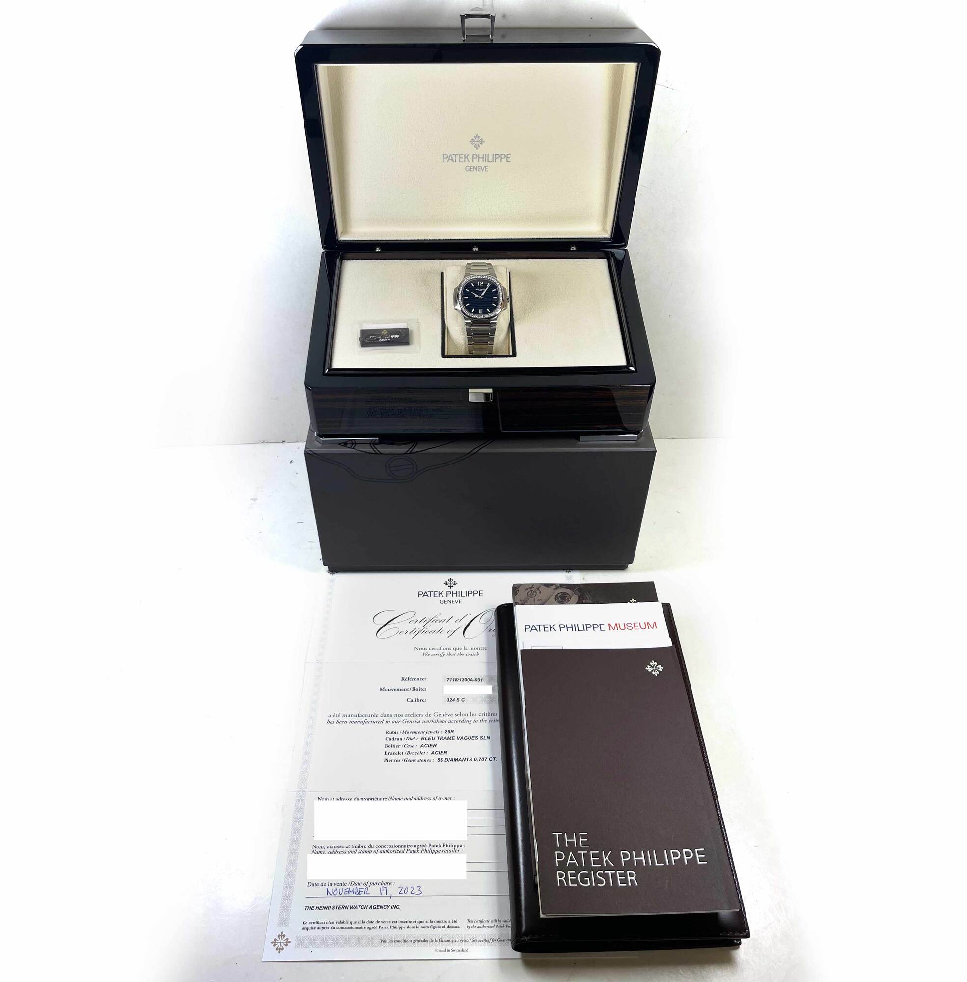 this patek is new with the stickers on the clasp and comes with its box, booklets, hang tag, and warranty paper dated november 17th, 2023 as shown in the pictures attached. This watch is in stock and available to ship immediately!