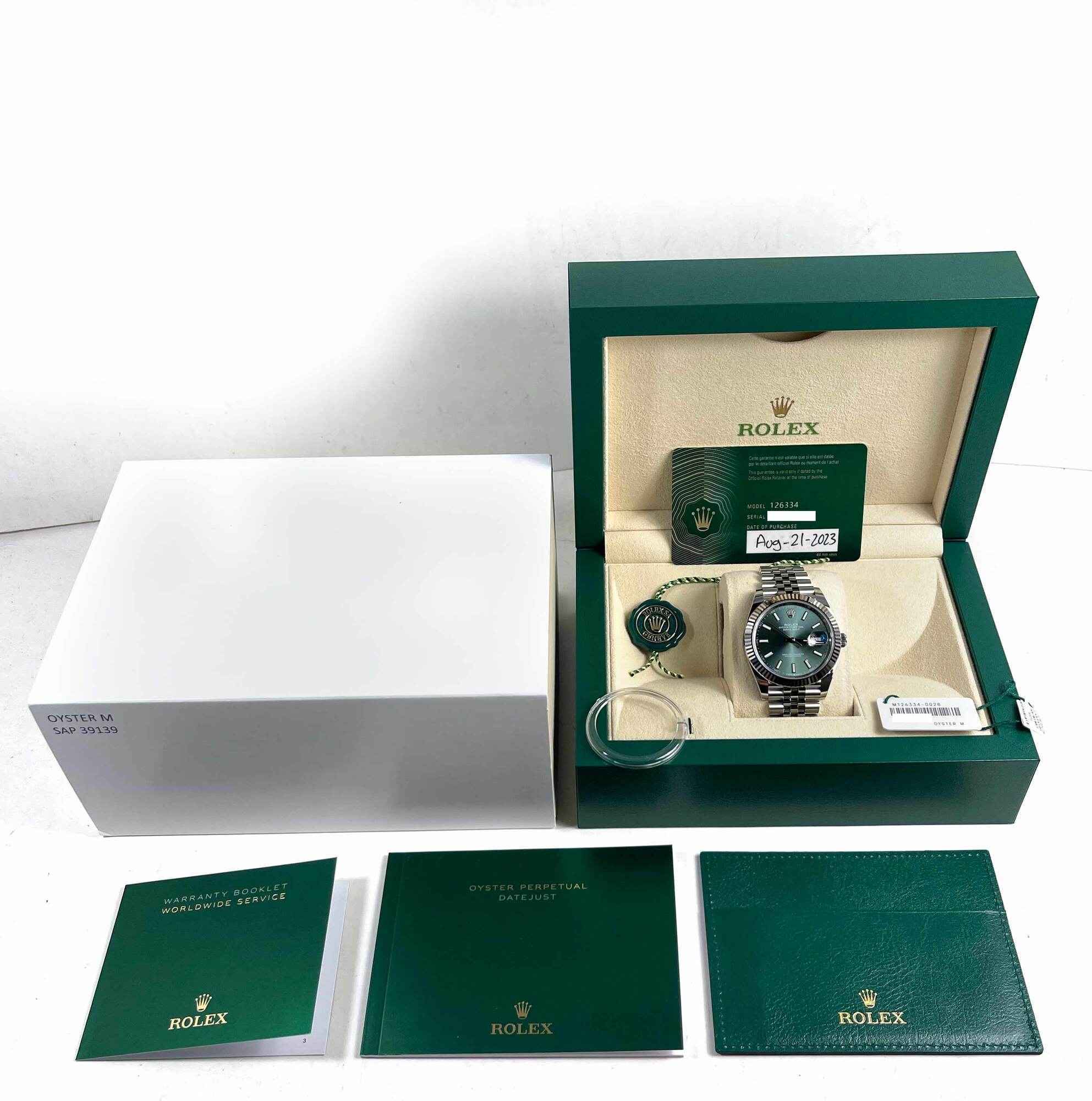 THIS ROLEX IS NEW AND COMES WITH ITS BOX, BOOKLETS, BEZEL PROTECTOR, BOTH HANG TAGS, AND WARRANTY CARD DATED AUGUST 21ST, 2023 AS SHOWN IN THE PICTURES ATTACHED. THIS WATCH IS IN STOCK AND AVAILABLE TO SHIP IMMEDIATELY!