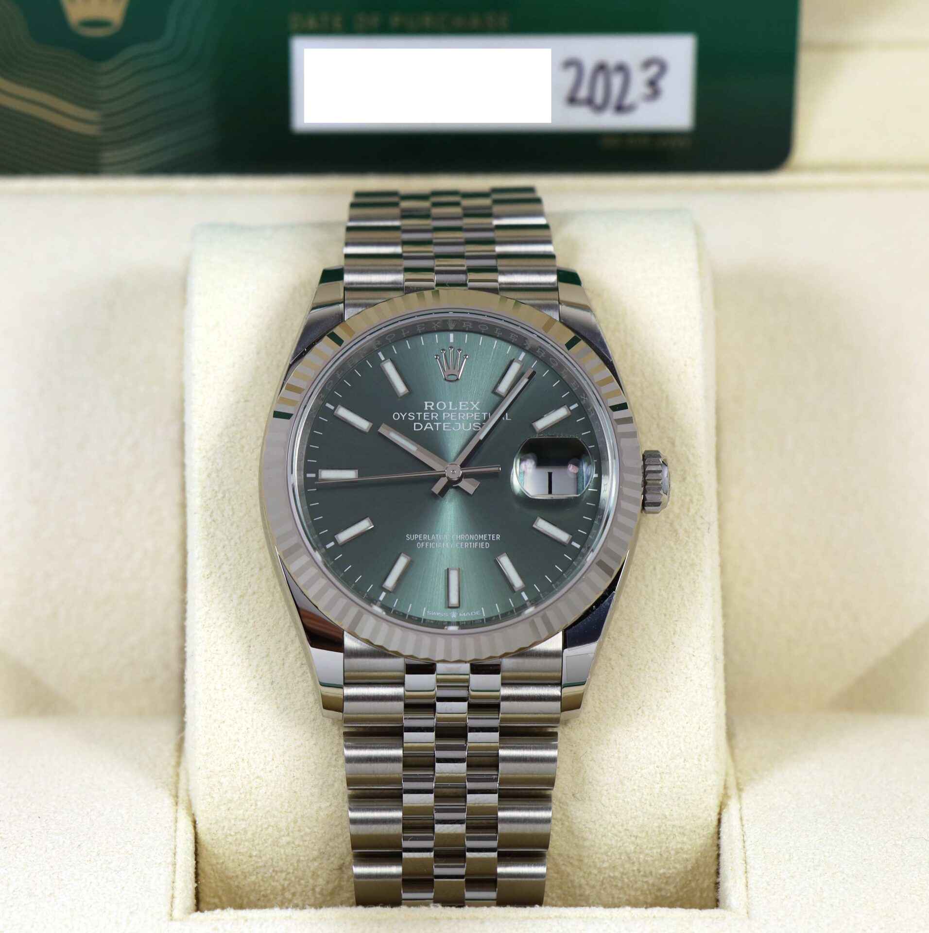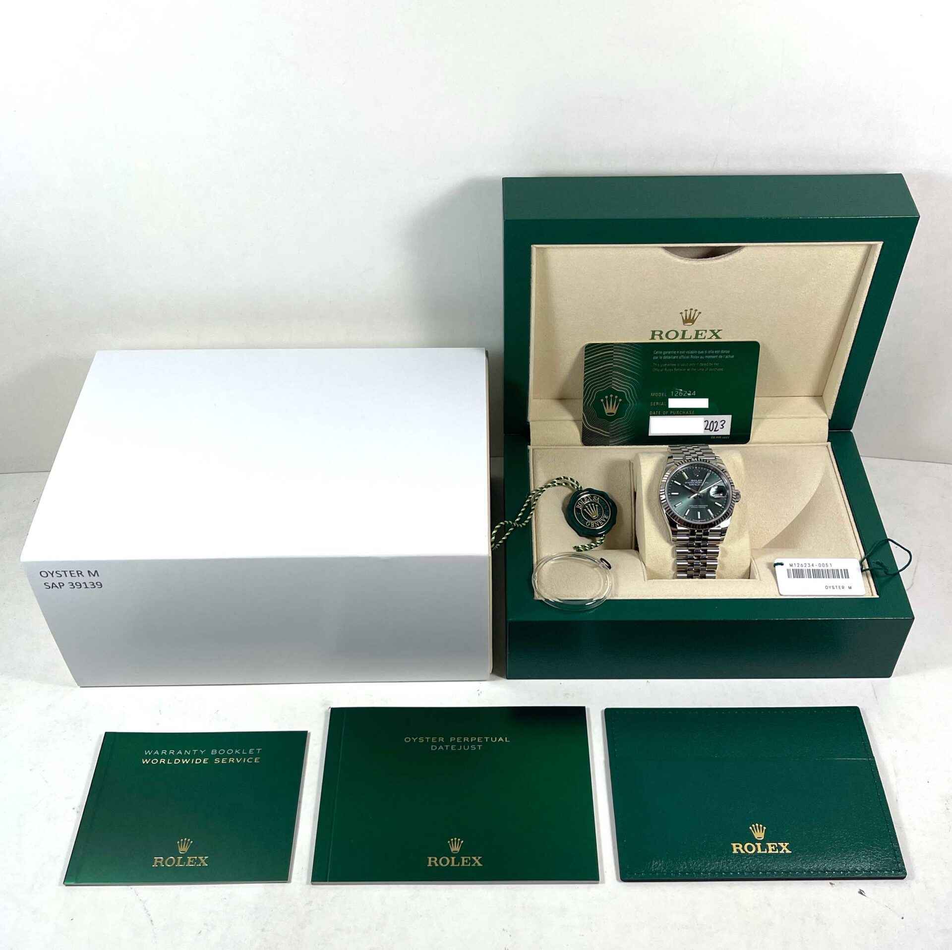 this rolex is new and comes with its box, papers, hang tags, bezel protector and warranty card dated march 2023. This watch is in stock and available to ship immediately!