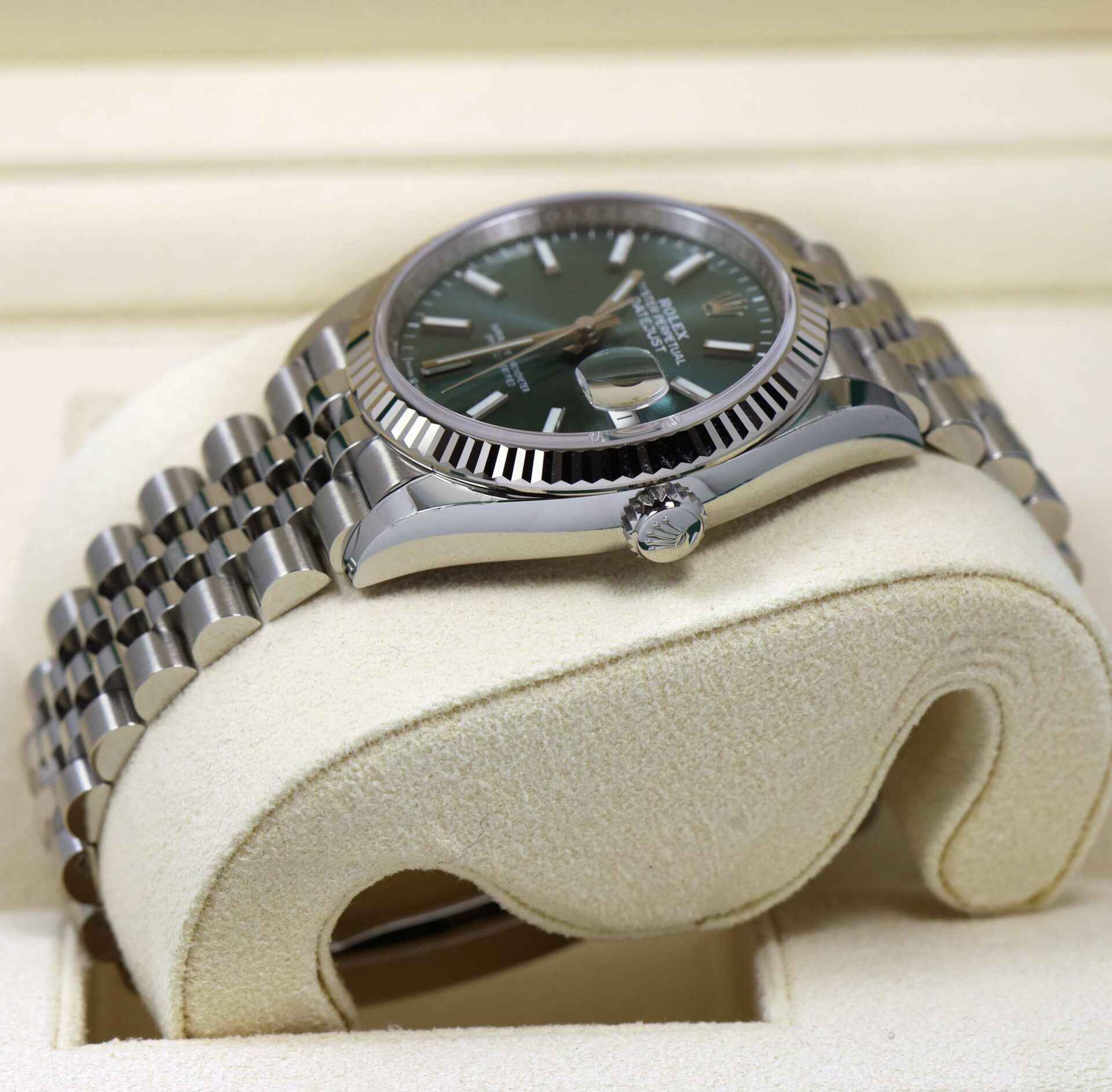 This Rolex is new and comes with its box, papers, hang tags, bezel protector and warranty card dated March 2023. This watch is in stock and available to ship immediately!