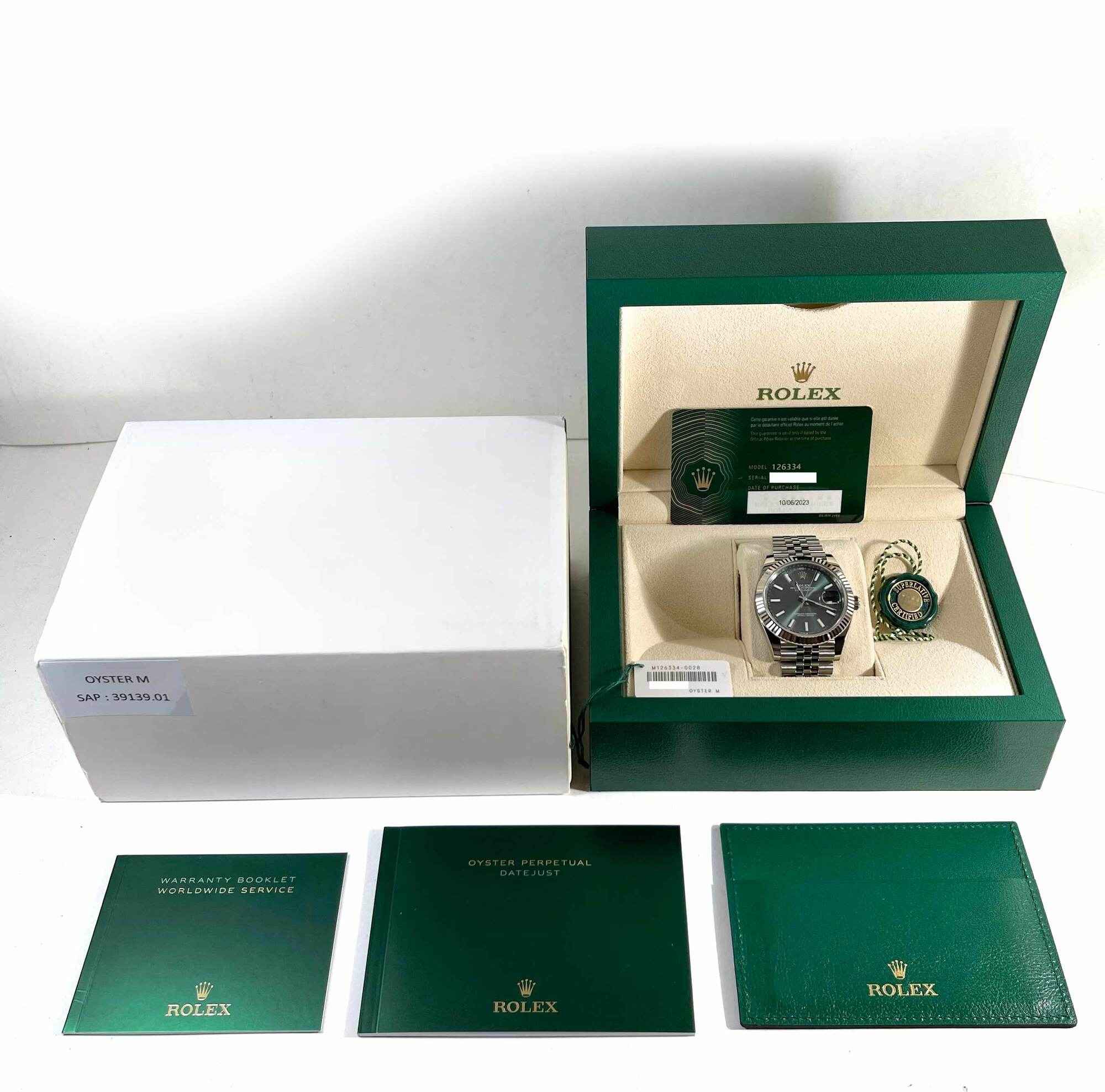 New 2023 Rolex Datejust 41 126334 41MM Mint Green Dial Fluted Jubilee Box Papers