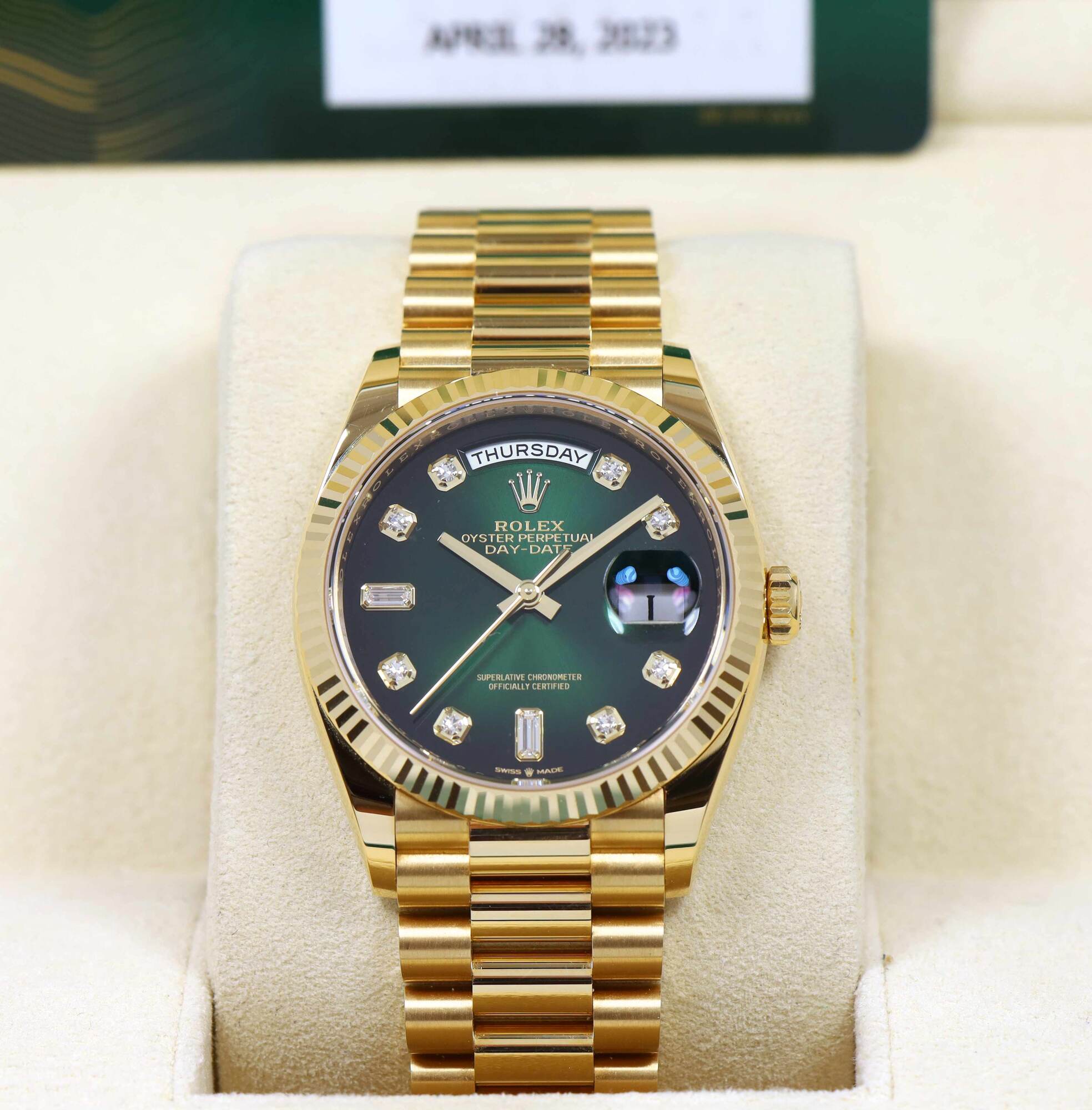 New 2023 Rolex Day-Date President 128238 36MM Green Ombre Diamond Dial Box Papers