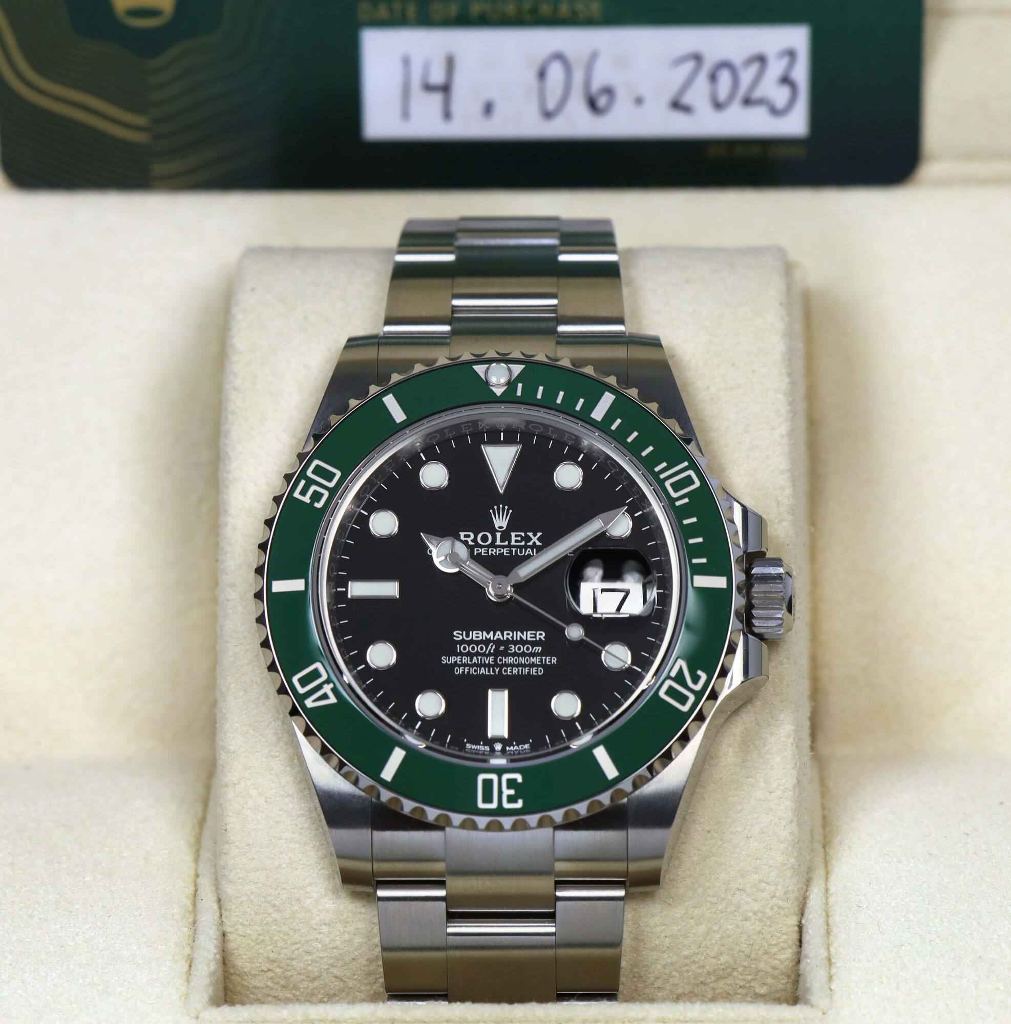 THIS ROLEX IS NEW AND COMES WITH ITS BOX, BOOKLETS, HANG TAGS, AND WARRANTY CARD DATED JUNE 14TH, 2023 AS SHOWN IN THE PICTURES ATTACHED. THIS WATCH IS IN STOCK AND AVAILABLE TO SHIP IMMEDIATELY!