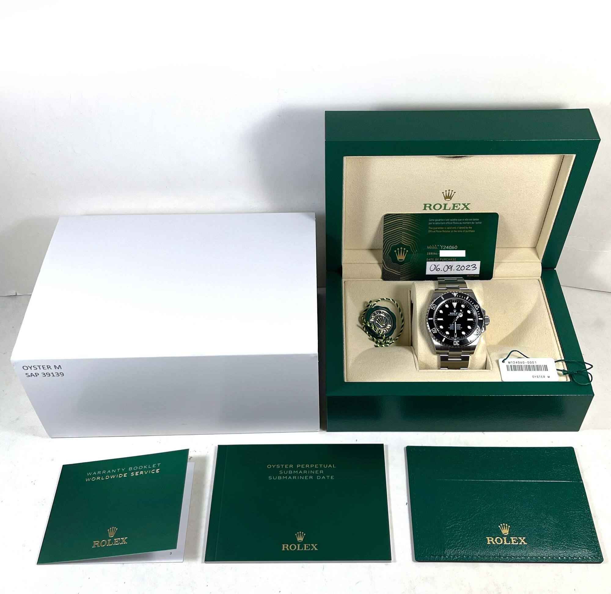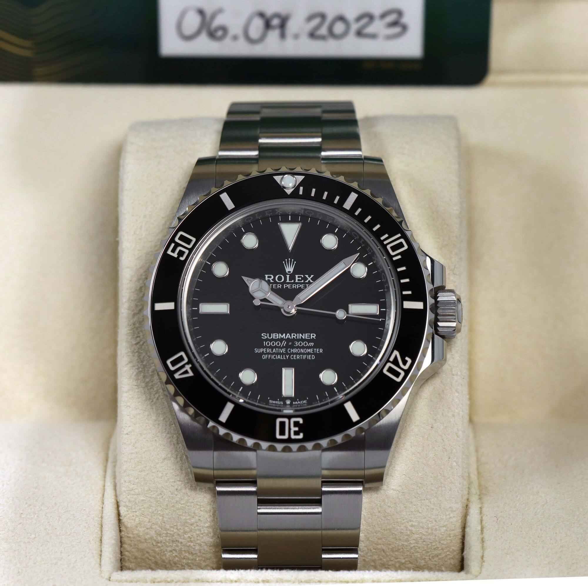 THIS ROLEX IS NEW AND COMES WITH ITS BOX, BOOKLETS, BOTH HANG TAGS, AND WARRANTY CARD DATED SEPTEMBER 6TH, 2023 AS SHOWN IN THE PICTURES ATTACHED. THIS WATCH IS IN STOCK AND AVAILABLE TO SHIP IMMEDIATELY!