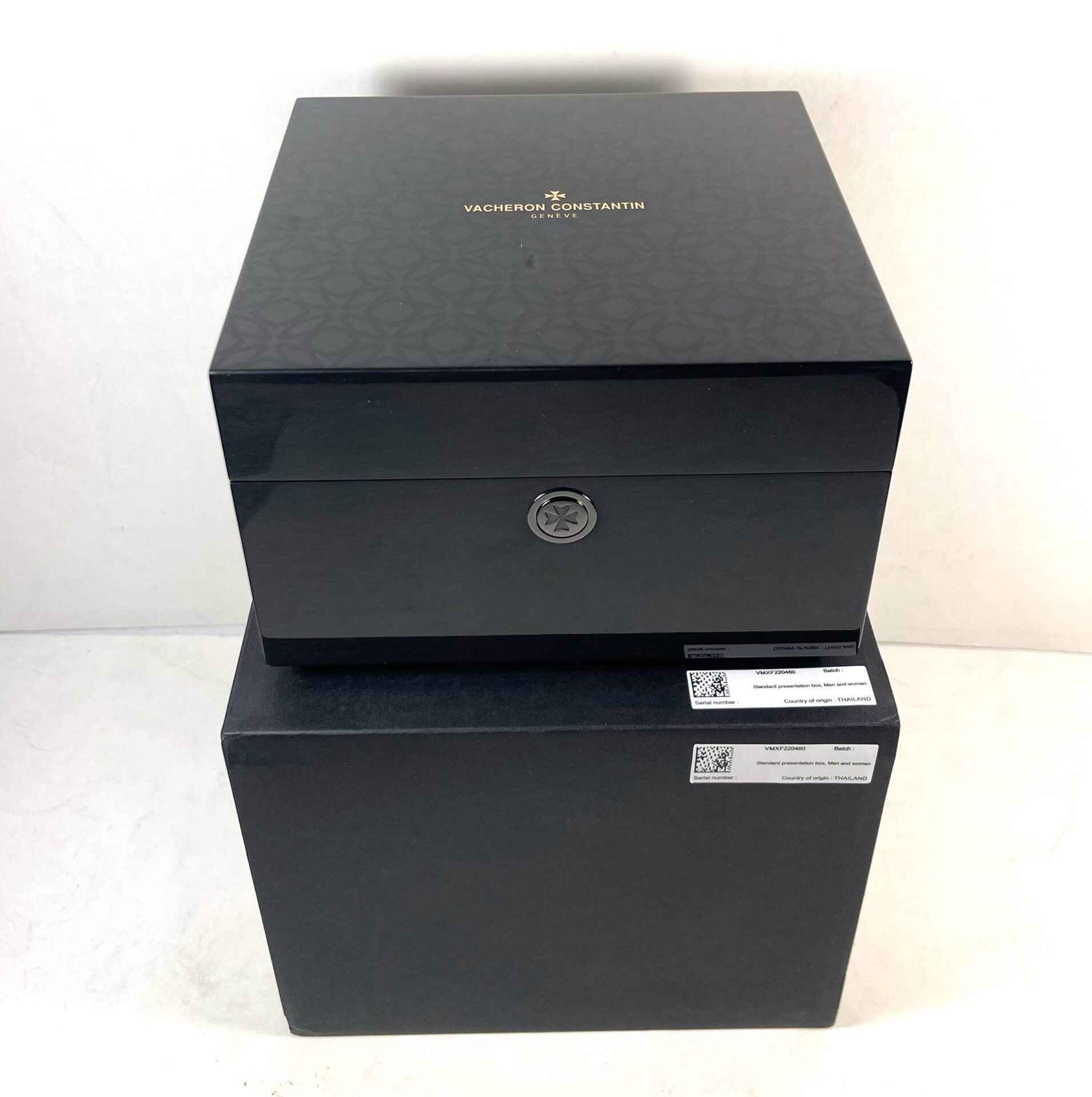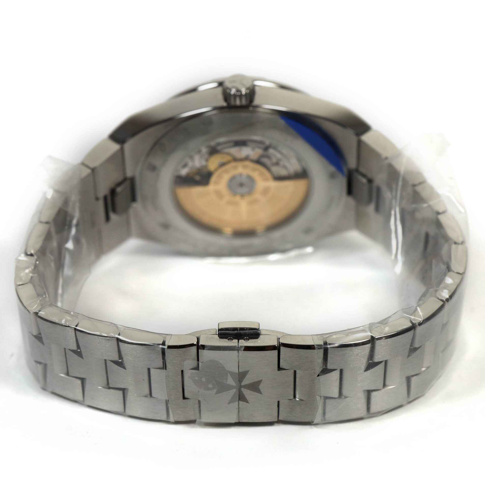 This Vacheron Constantin watch is new with the stickers on the bracelet and caseback and comes with its box, papers, two additional straps, and warranty card dated Mid-2023.