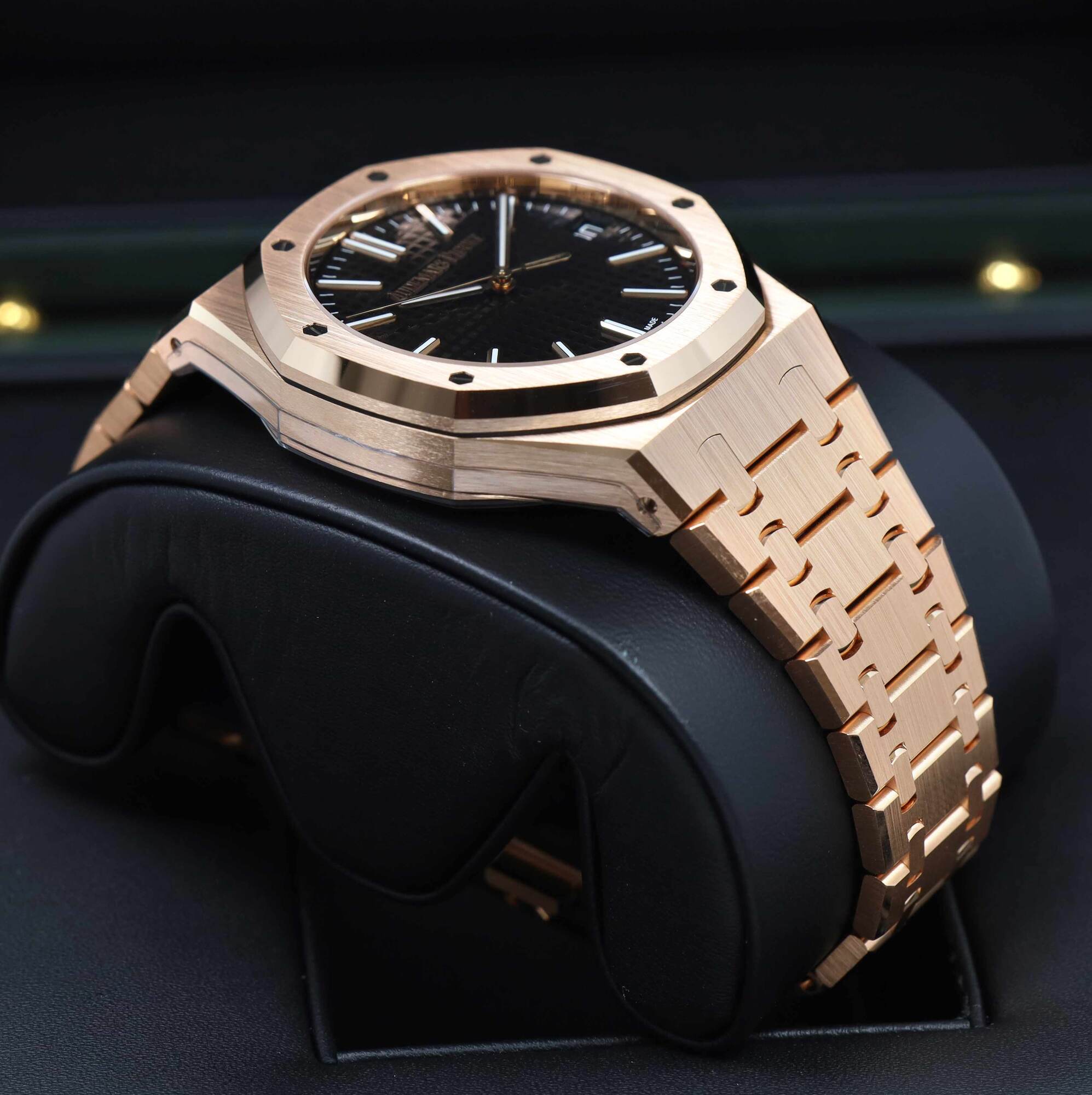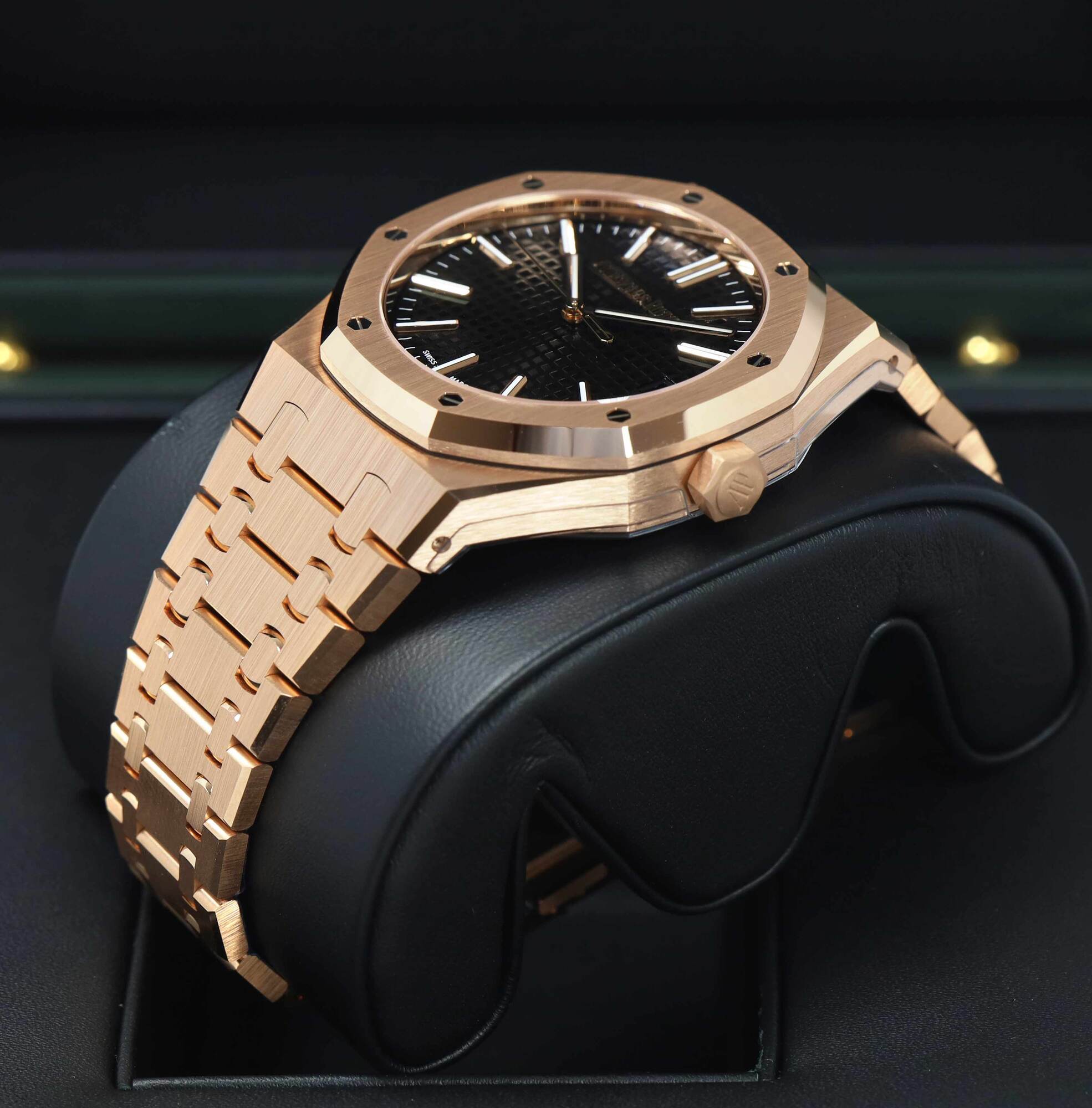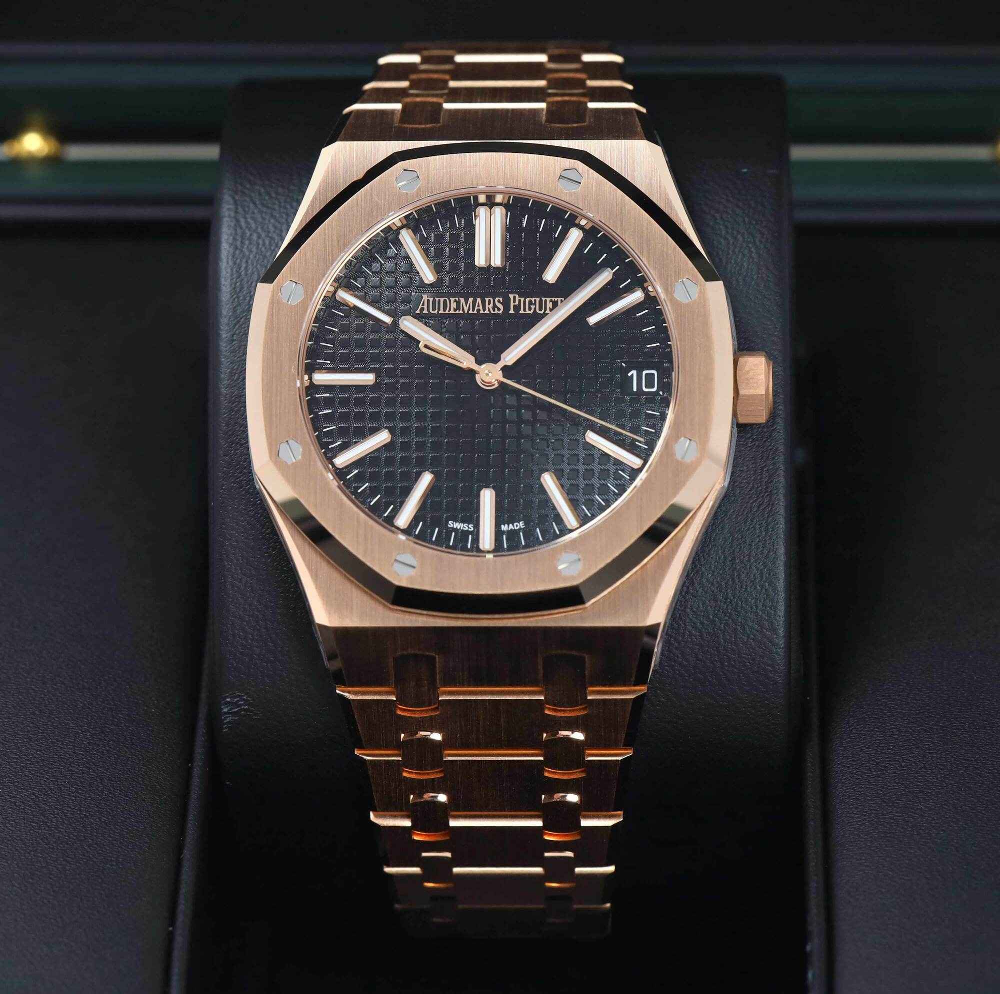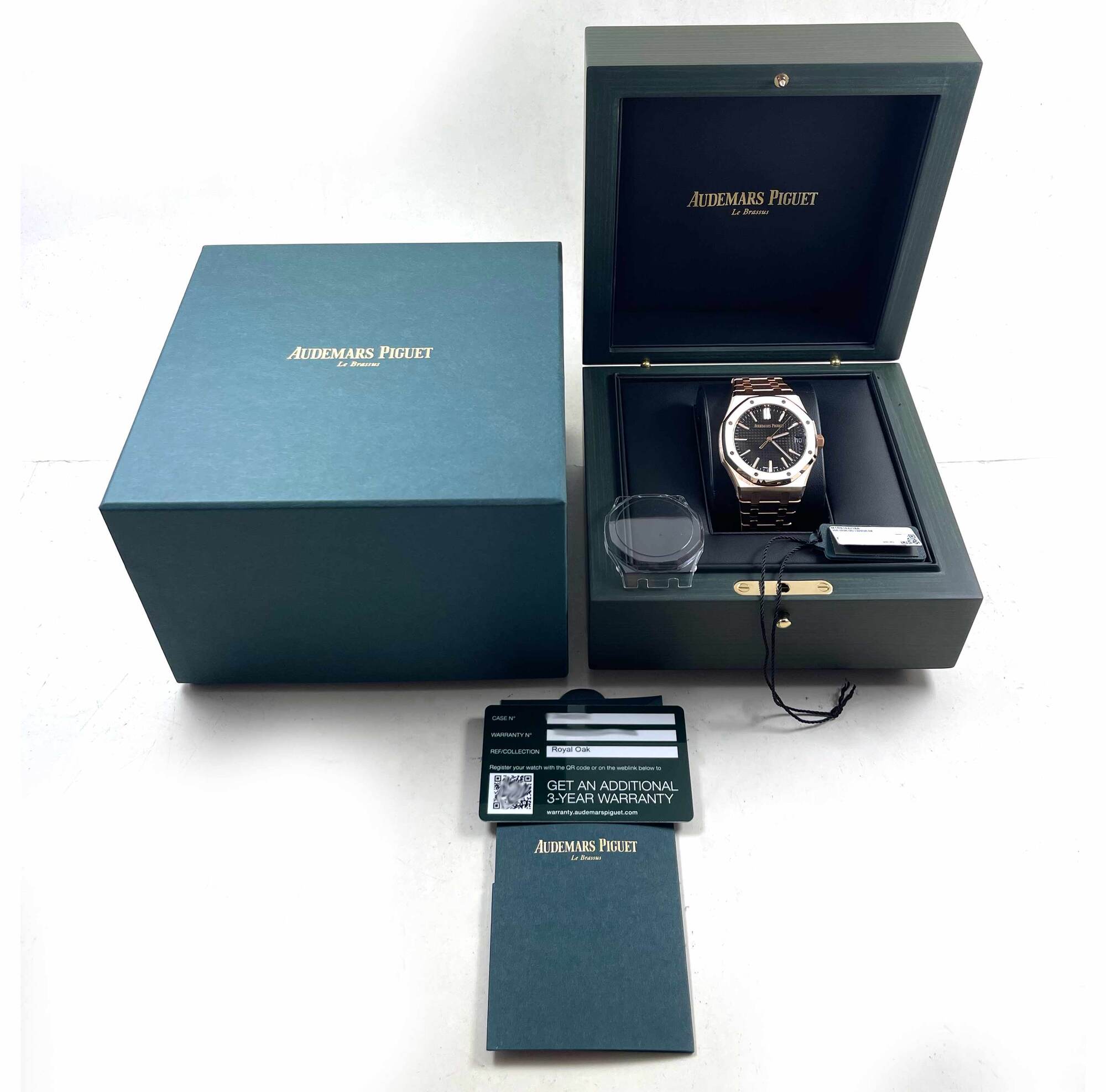 THIS AUDEMARS PIGUET IS NEW WITH STICKERS AND COMES WITH ITS BOX, HANG TAG, CASE PROTECTOR, AND WARRANTY CARD, the warranty started Sept 2024. THIS WATCH IS IN STOCK AND AVAILABLE TO SHIP IMMEDIATELY!