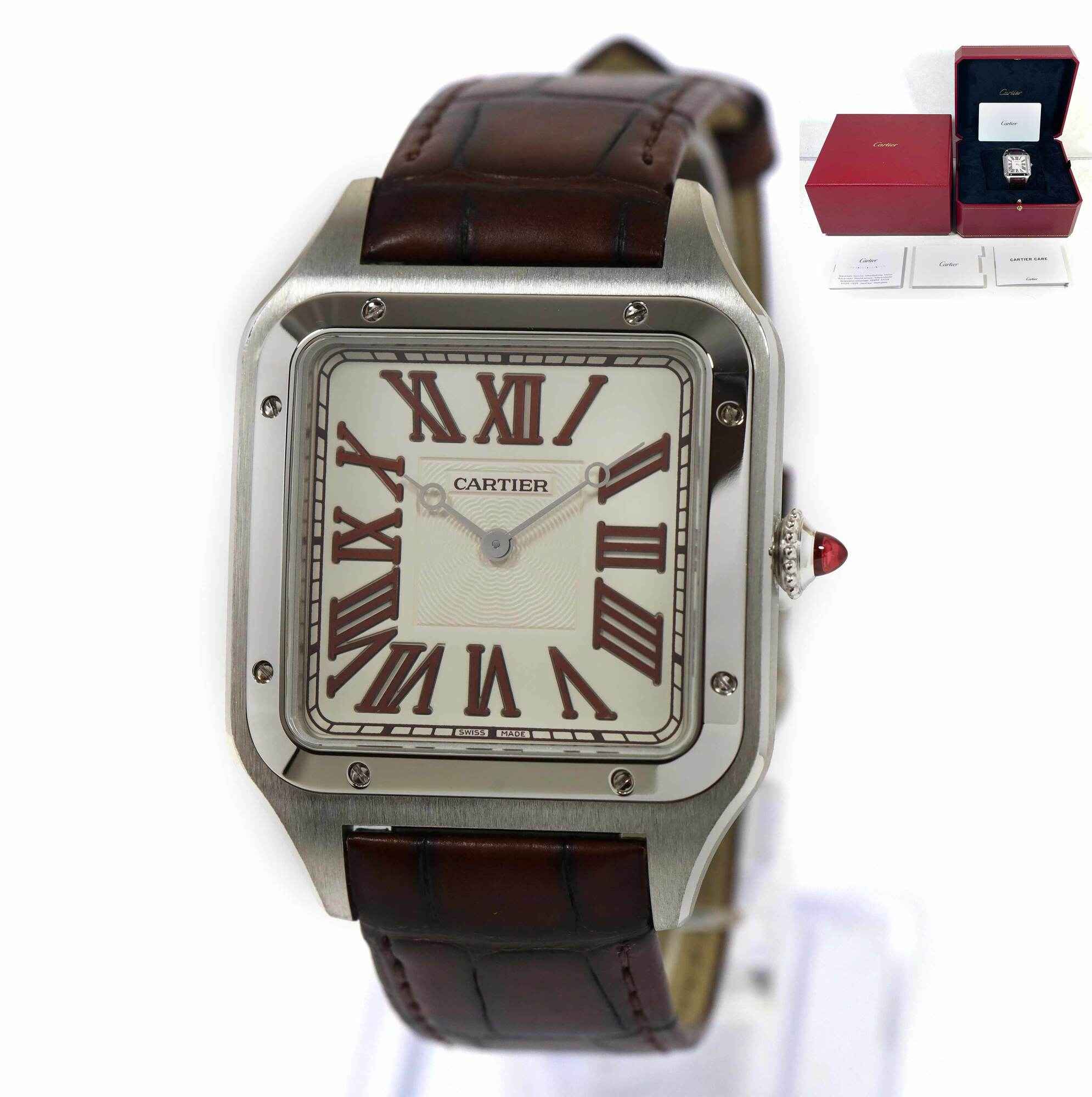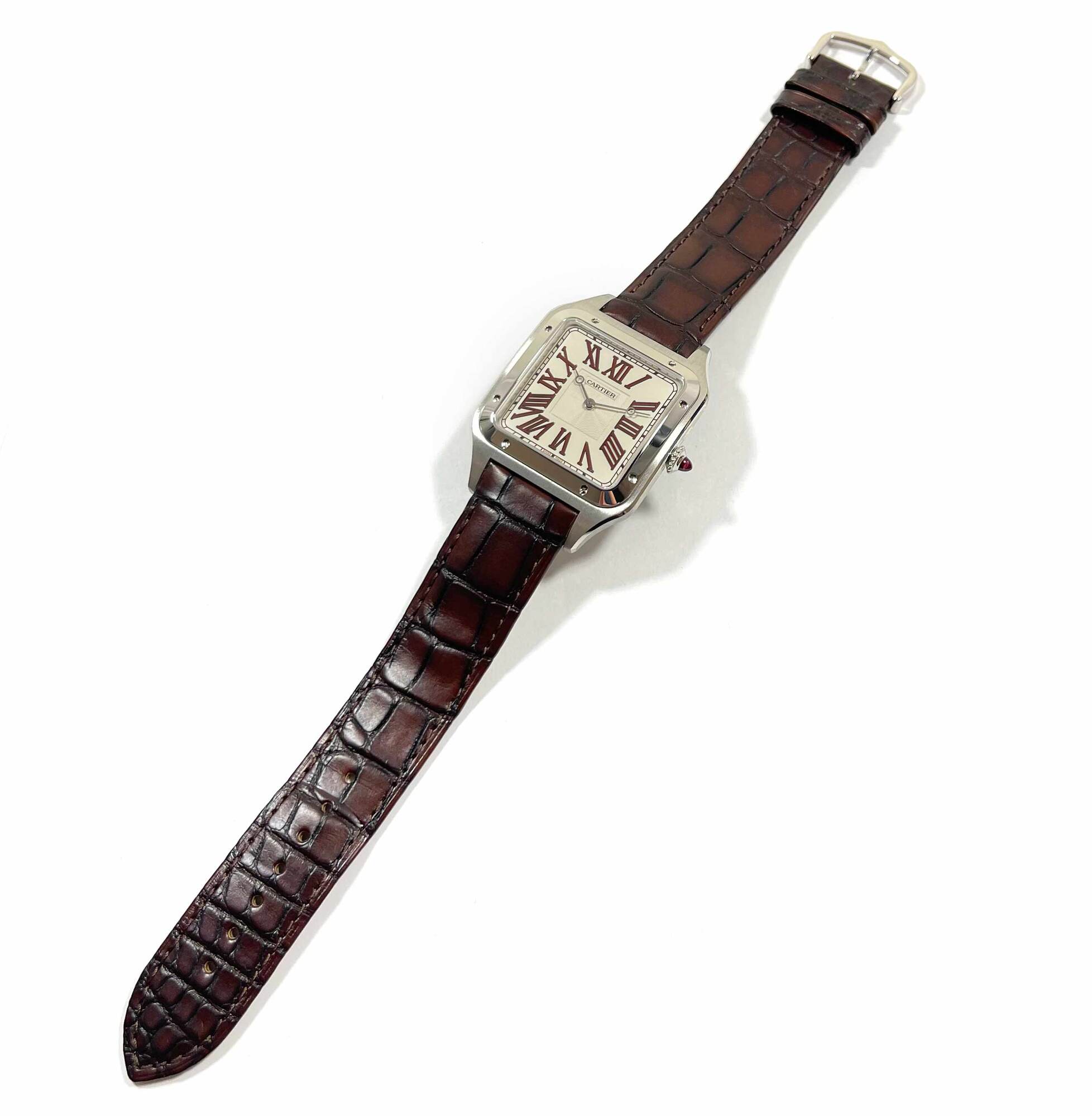 Read Morethis cartier watch is new and comes with its box, booklets, and warranty card dated 2024. This watch is part of a limited edition with only 200 pieces produced in this model. This watch features a 47mm x 34mm platinum case that surrounds a white beige colored dial with red roman numeral hour markers and comes on a brown leather strap. This watch is in stock and available to ship immediately!