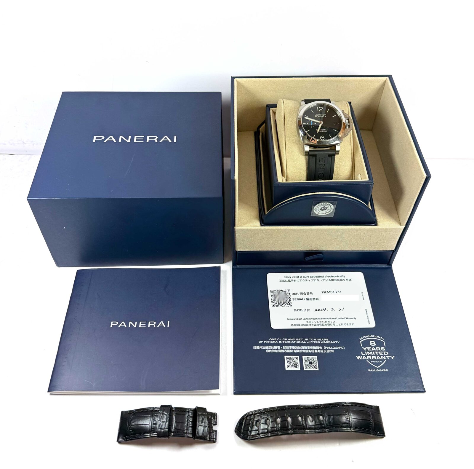 this panerai watch is new and comes with its box, booklets, one additional black leather strap, and warranty card dated july 21st, 2024 as shown in the pictures attached. This watch is in stock and available to ship immediately!