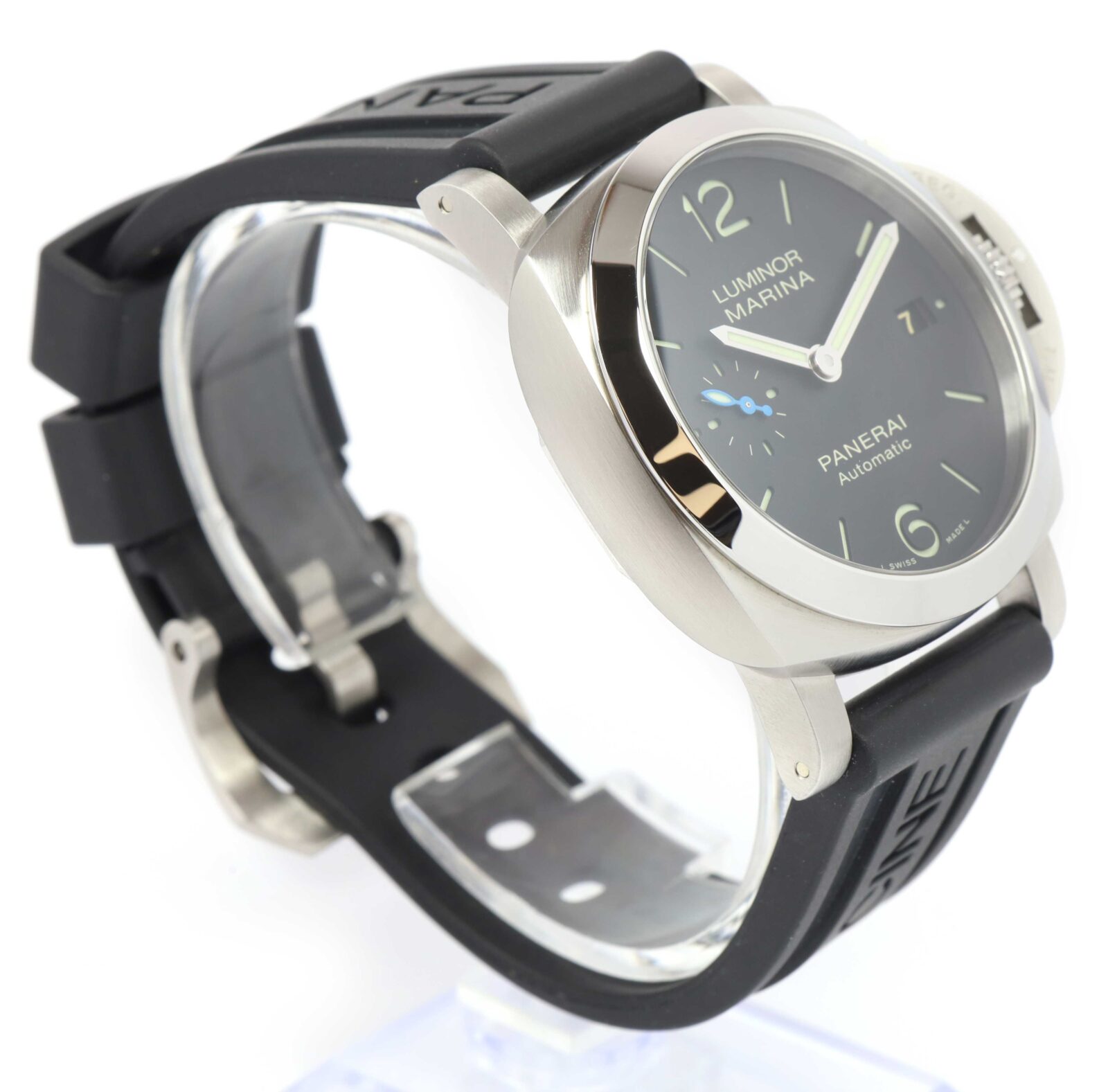 This Panerai watch is new and comes with its box, booklets, one additional black leather strap, and warranty card dated July 21st, 2024 as shown in the pictures attached. This watch is in stock and available to ship immediately!