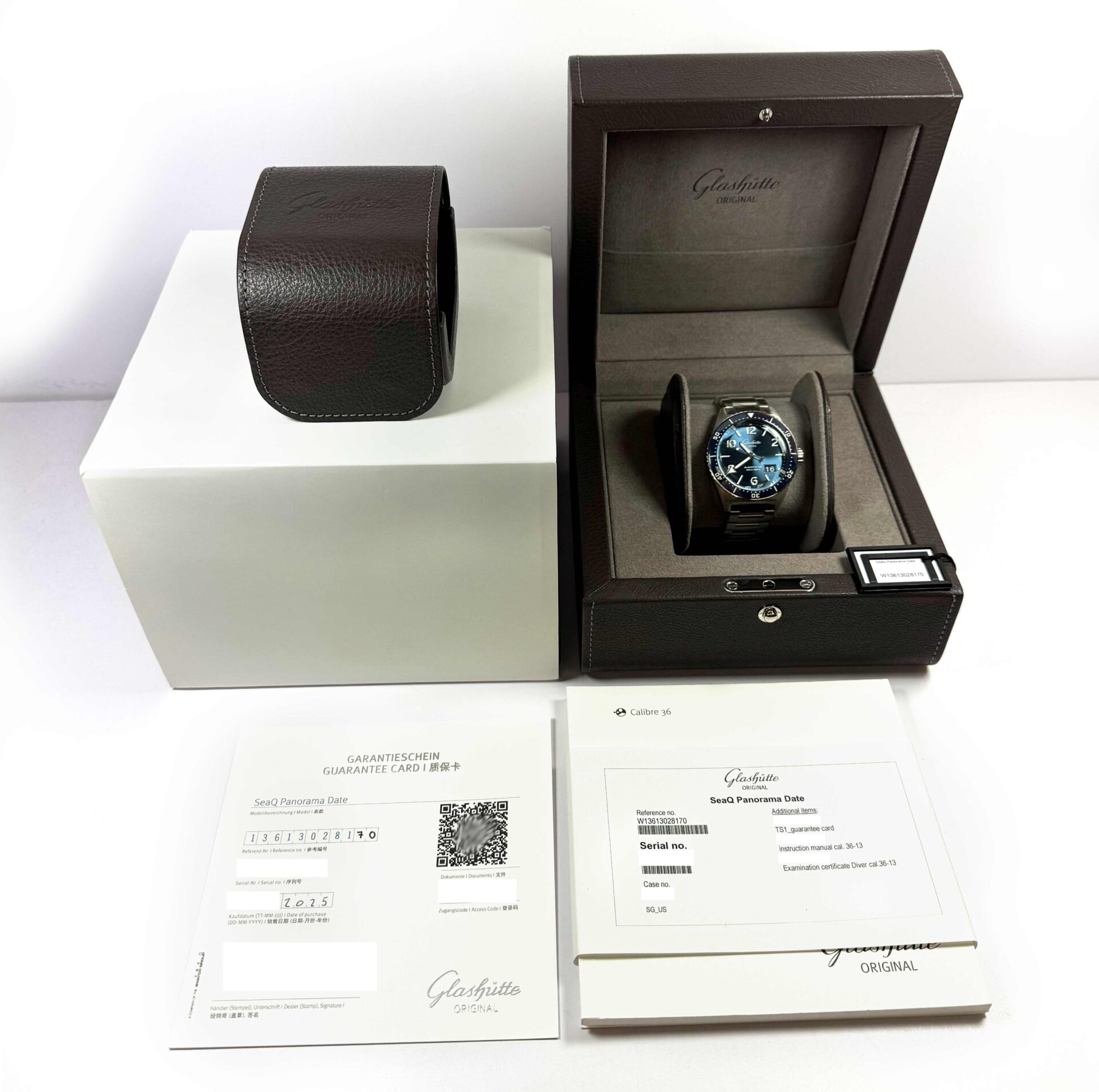 this glashutte watch is new with stickers on the bracelet and comes with its box, booklets, hang tag, and warranty paper dated 2025 as shown in the pictures attached. This watch is in stock and available to ship immediately!