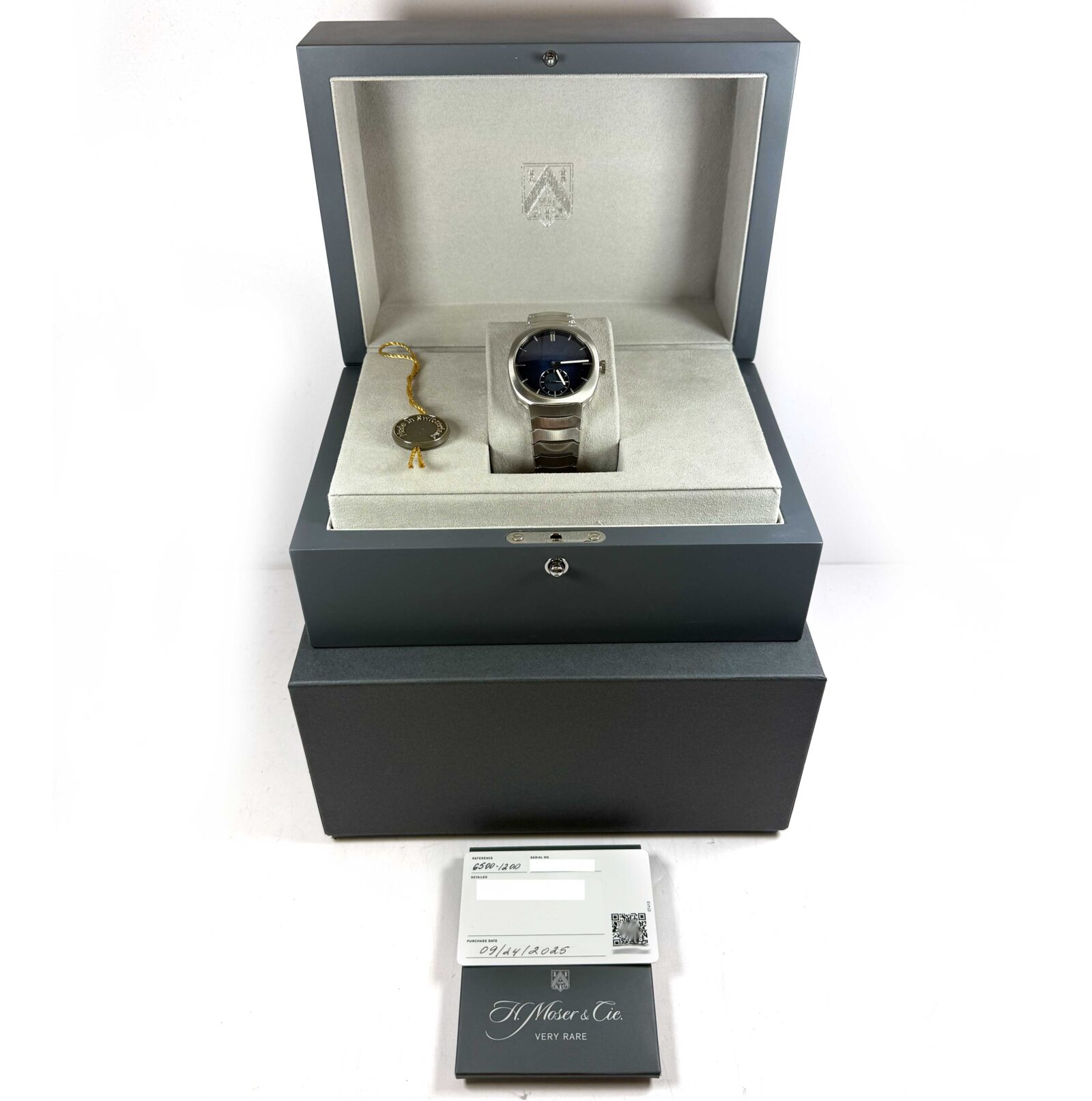 this h. Moser & cie. Watch is new and comes with its box, booklets, hang tag, and warranty card dated september 24th, 2025 as shown in the pictures attached. This watch is in stock and available to ship immediately!