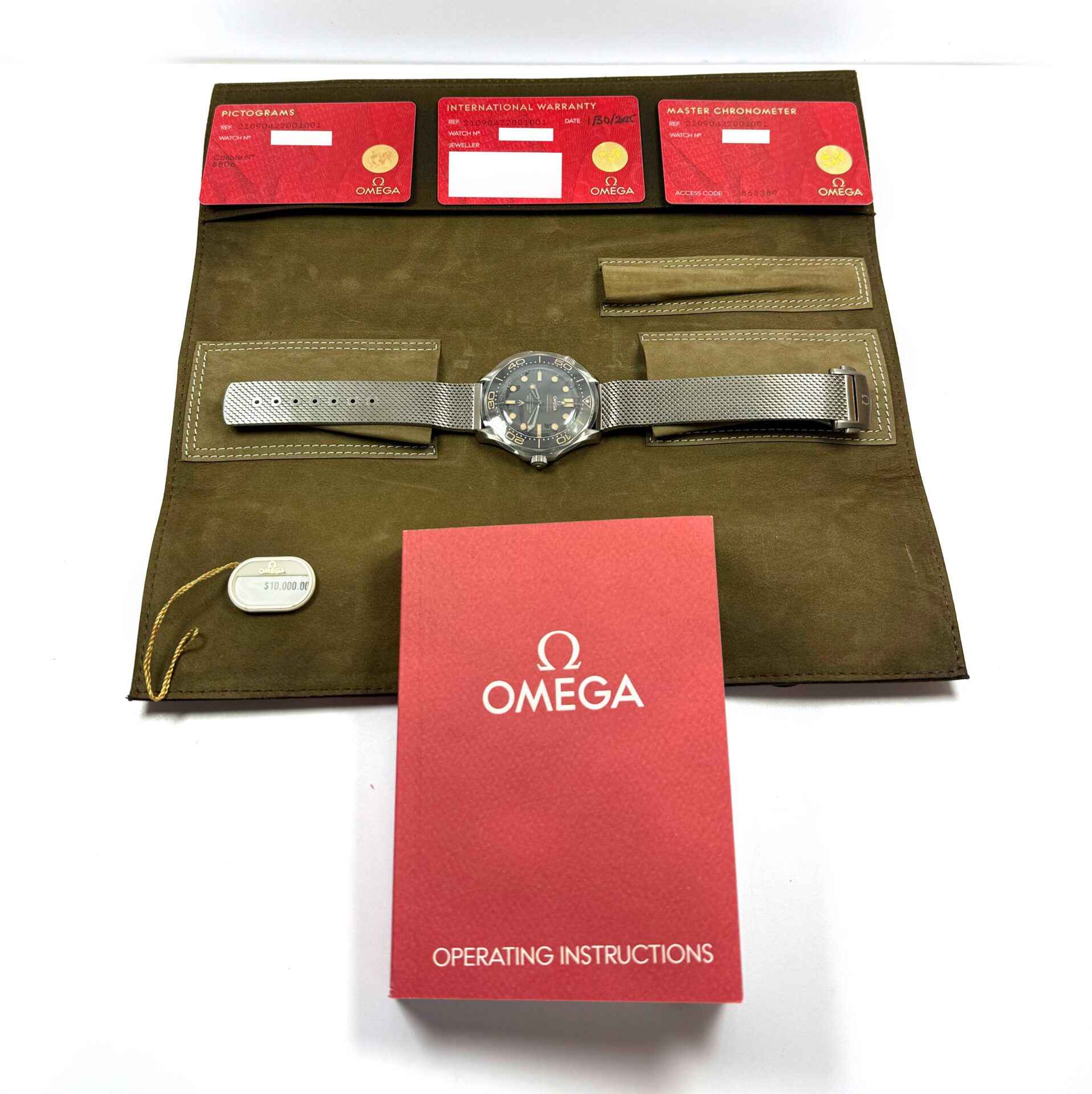 THIS OMEGA SEAMASTER IS NEW WITH STICKERS ON THE CASEBACK AND COMES WITH ITS BOX, BOOKLETS, HANG TAG, AND WARRANTY CARD DATED JANUARY 30TH, 2025 AS SHOWN IN THE PICTURES ATTACHED. THIS WATCH IS IN STOCK AND AVAILABLE TO SHIP IMMEDIATELY!