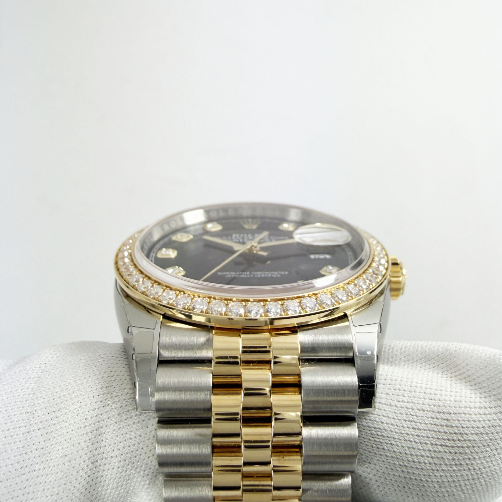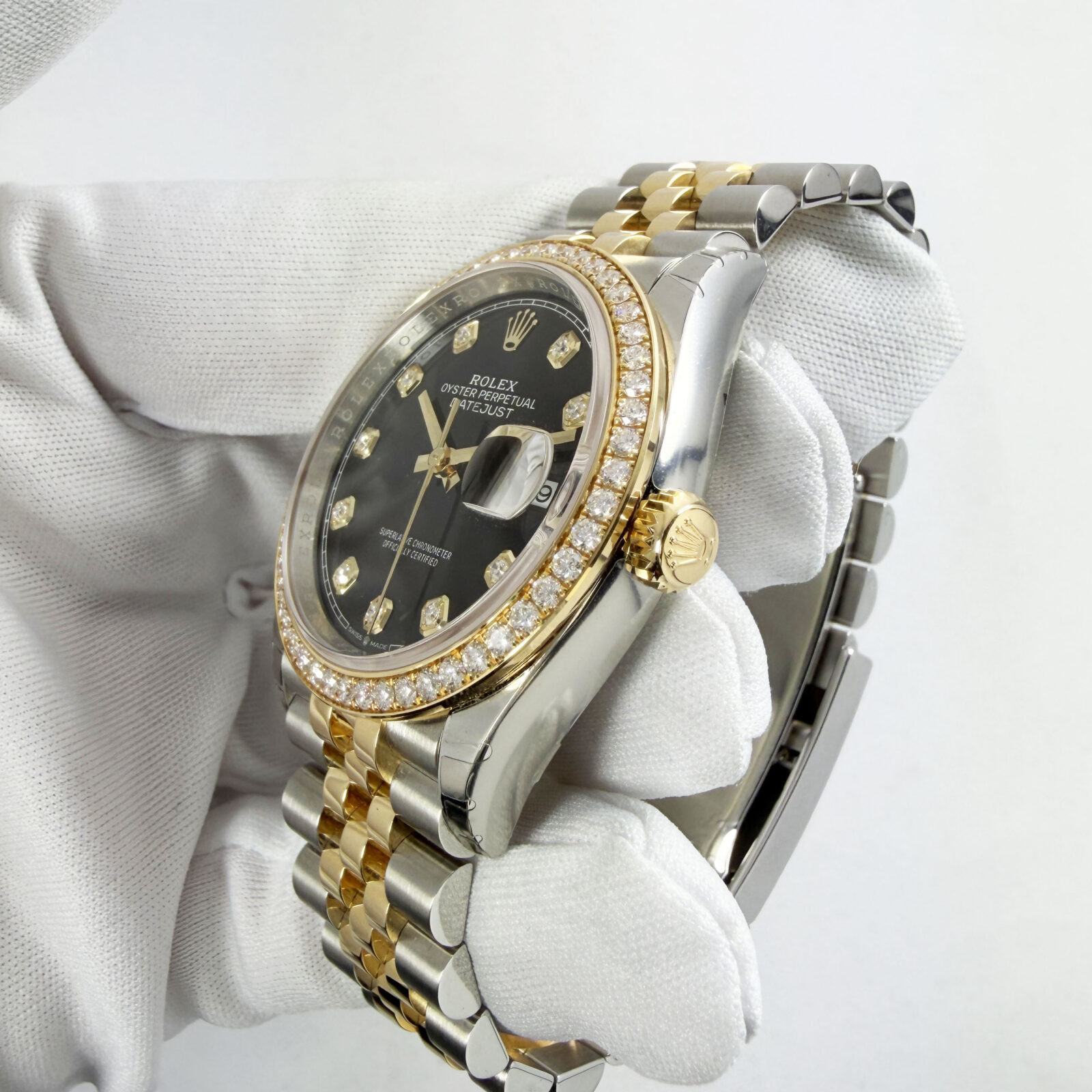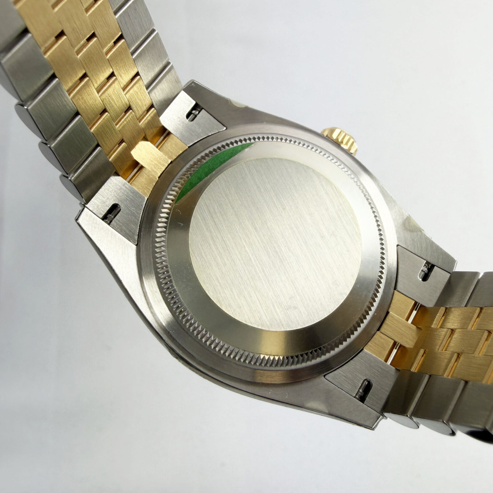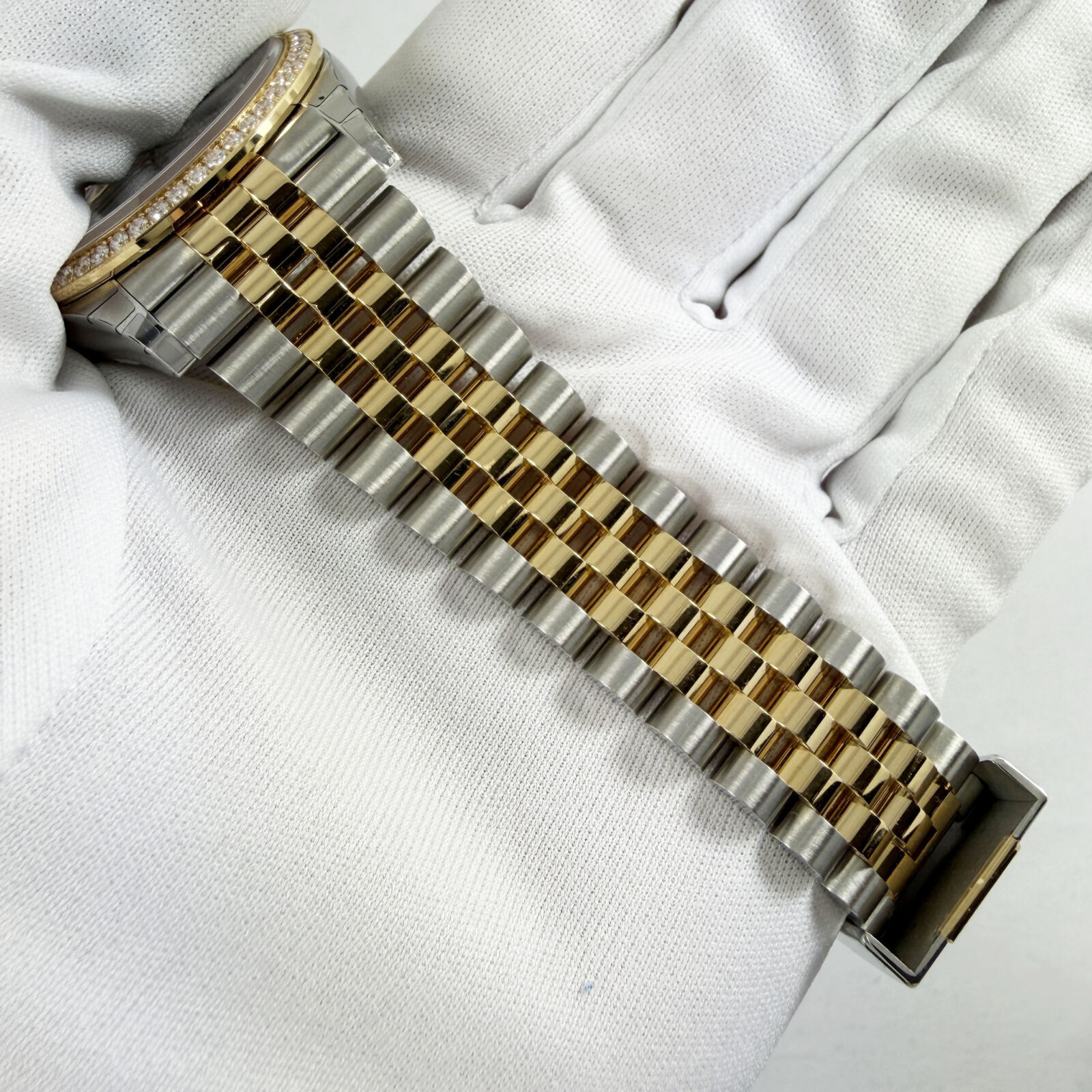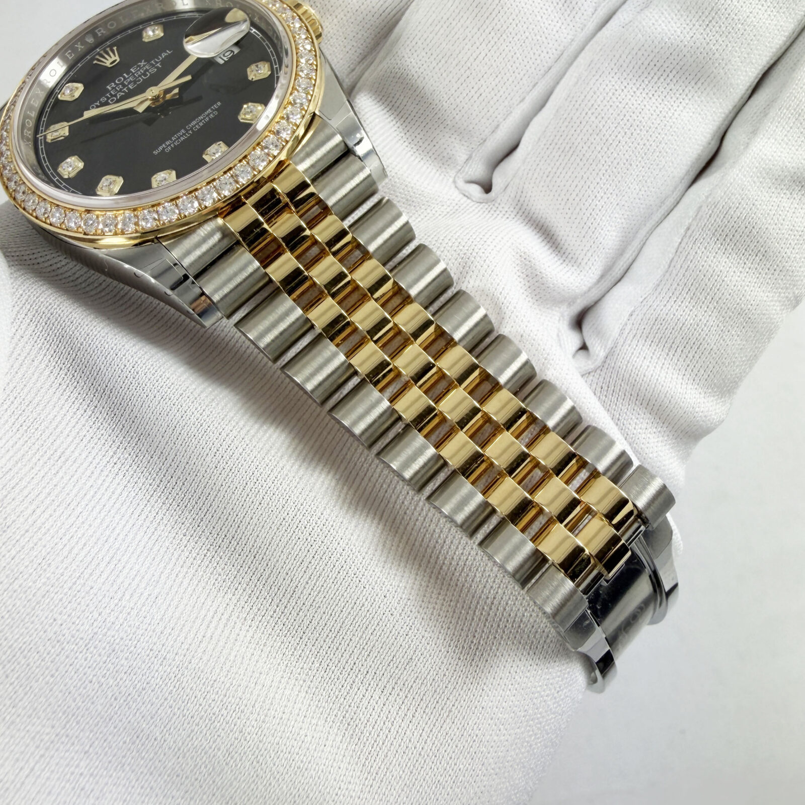 this rolex datejust watch is new with stickers and comes with its box, booklets, hangtags, extra links, and warranty card dated september, 2025. The photos shown are of the exact watch being sold and accurately represent its condition. This watch is in stock and ready to ship immediately!