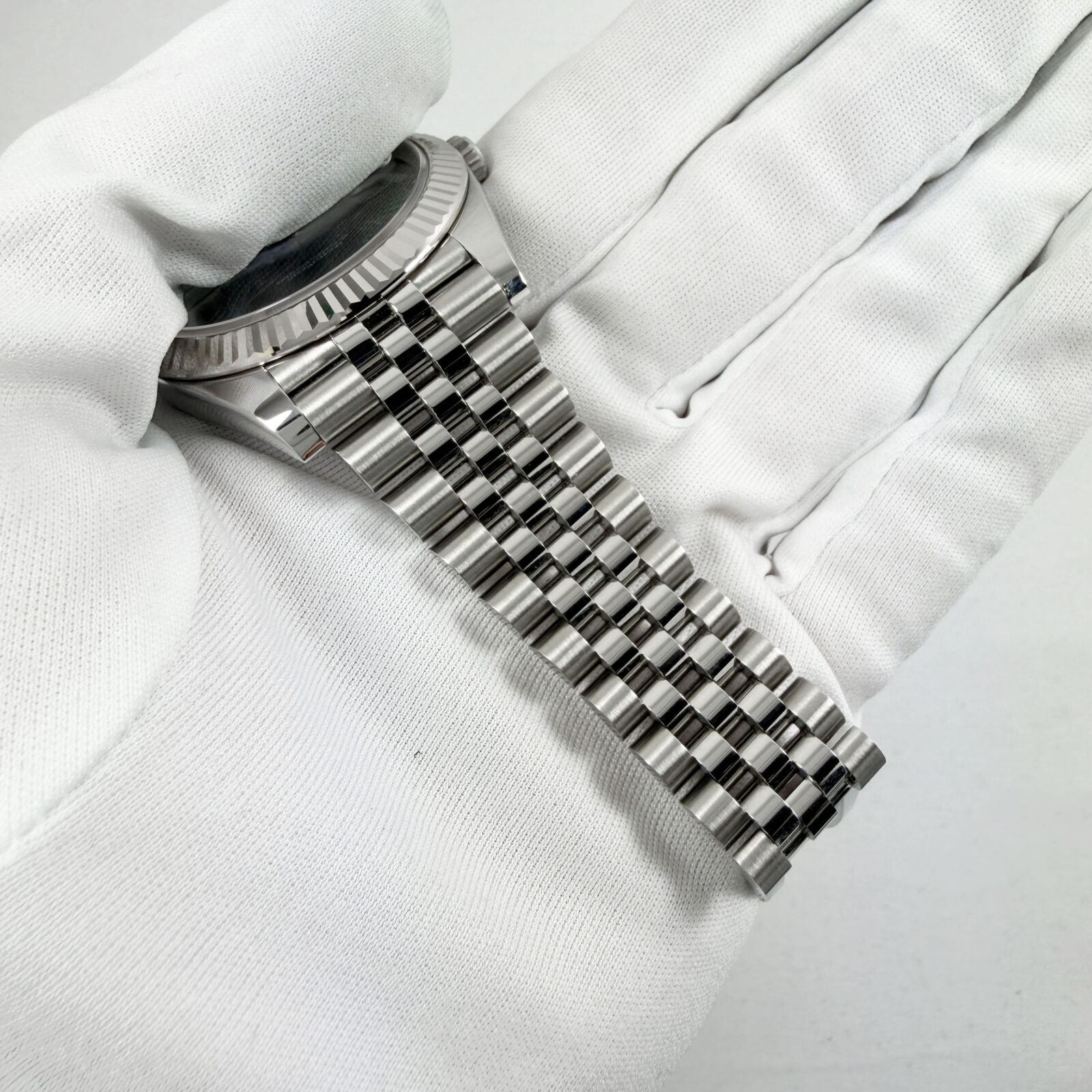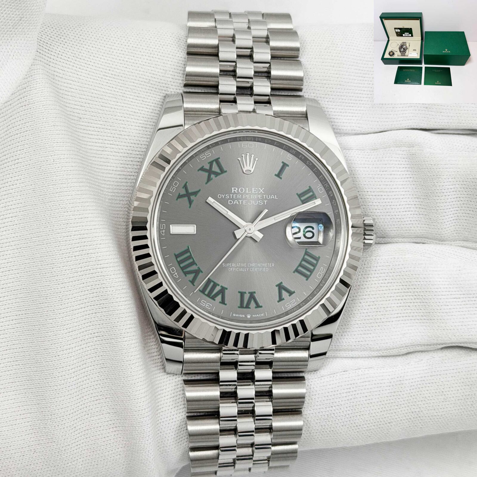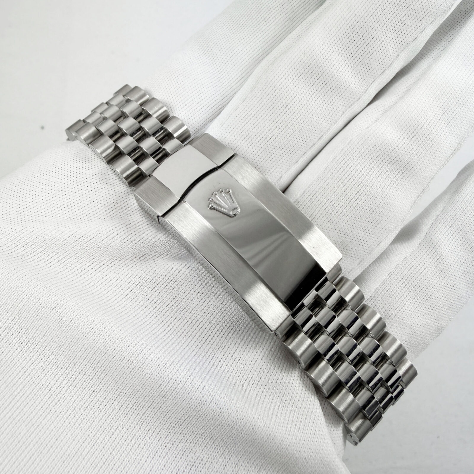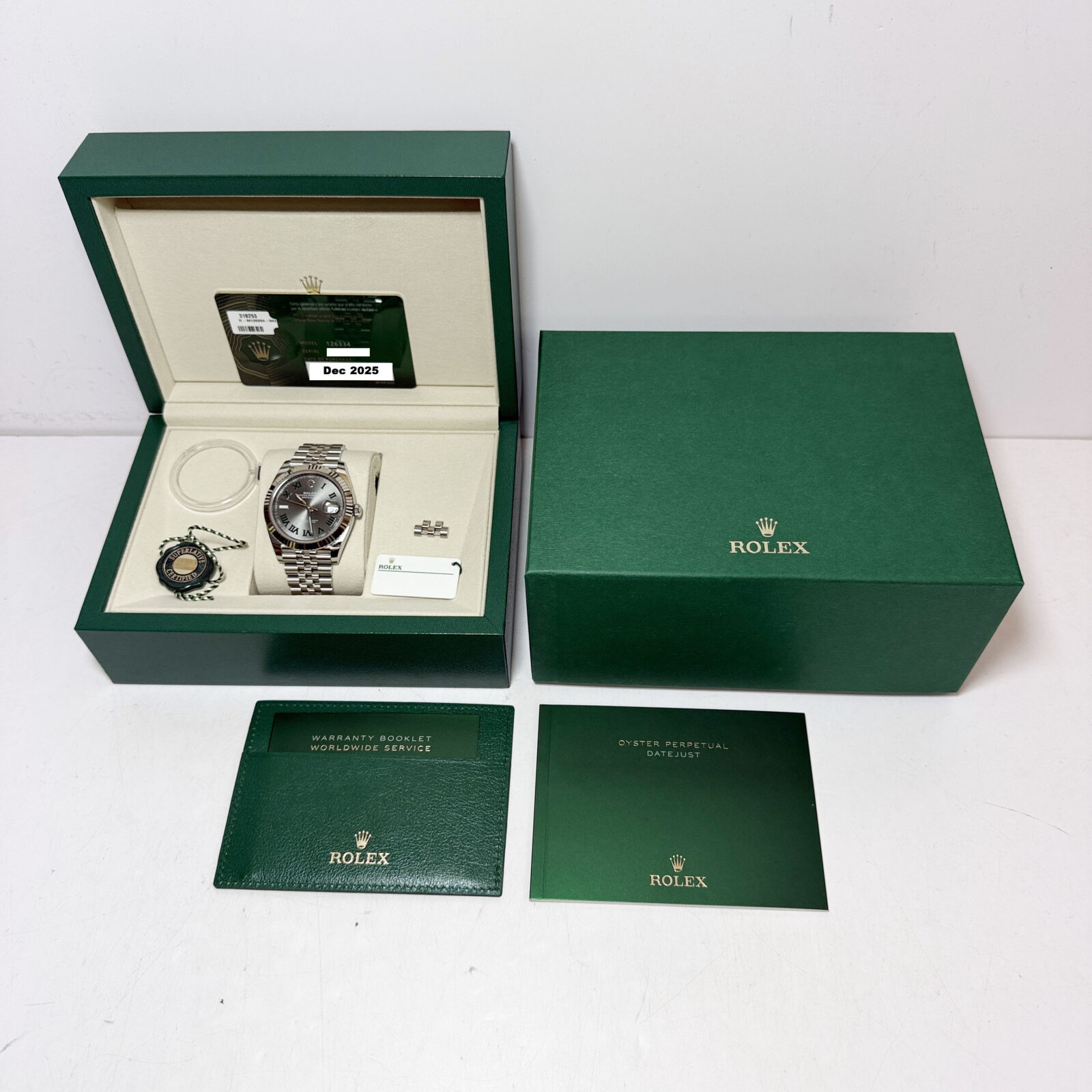 this brand new rolex datejust comes with its box, hangtags, extra link, case protector, booklets, and warranty card dated december, 2025. The photos shown are of the exact watch being sold and accurately represent its condition. This watch is in stock and ready to ship immediately!