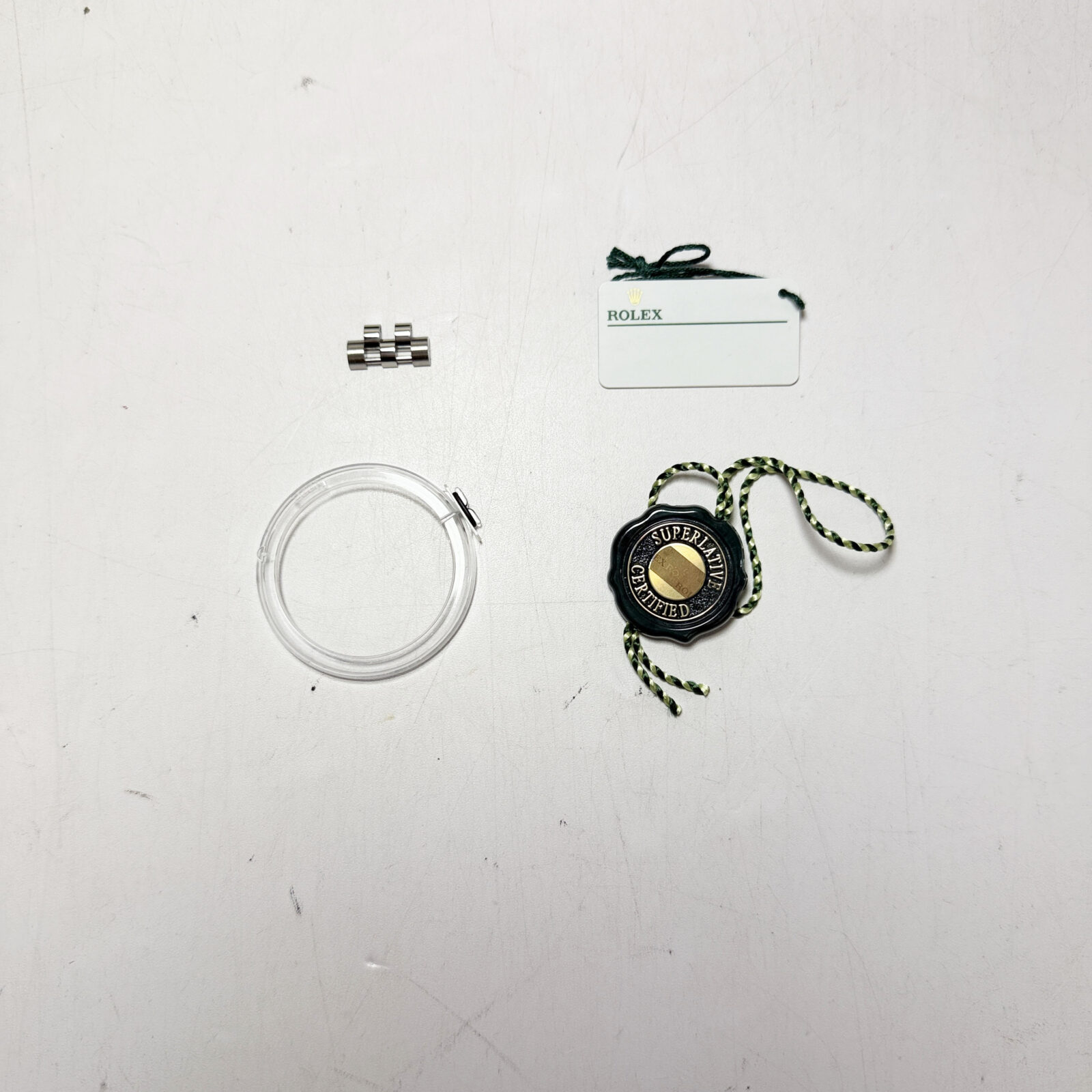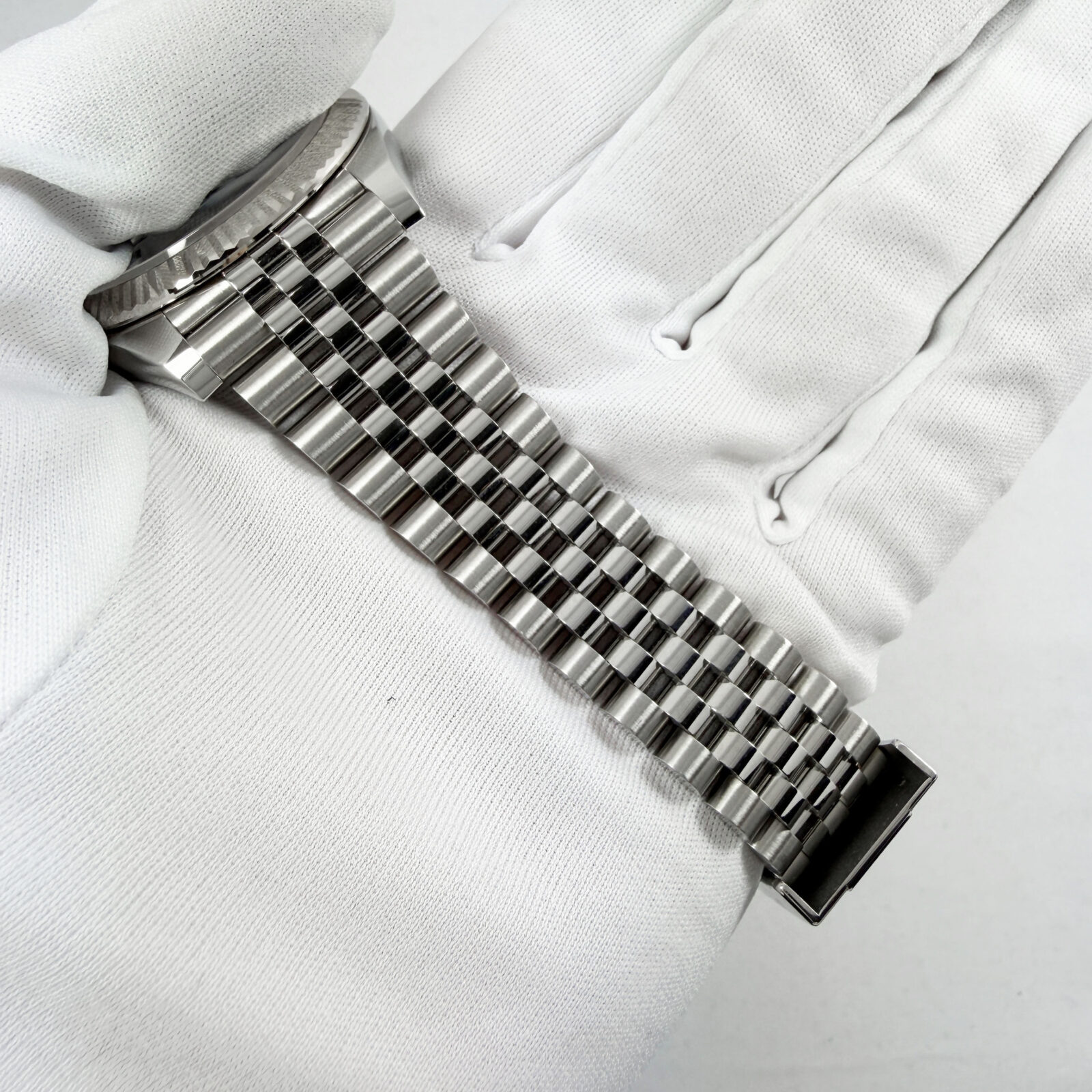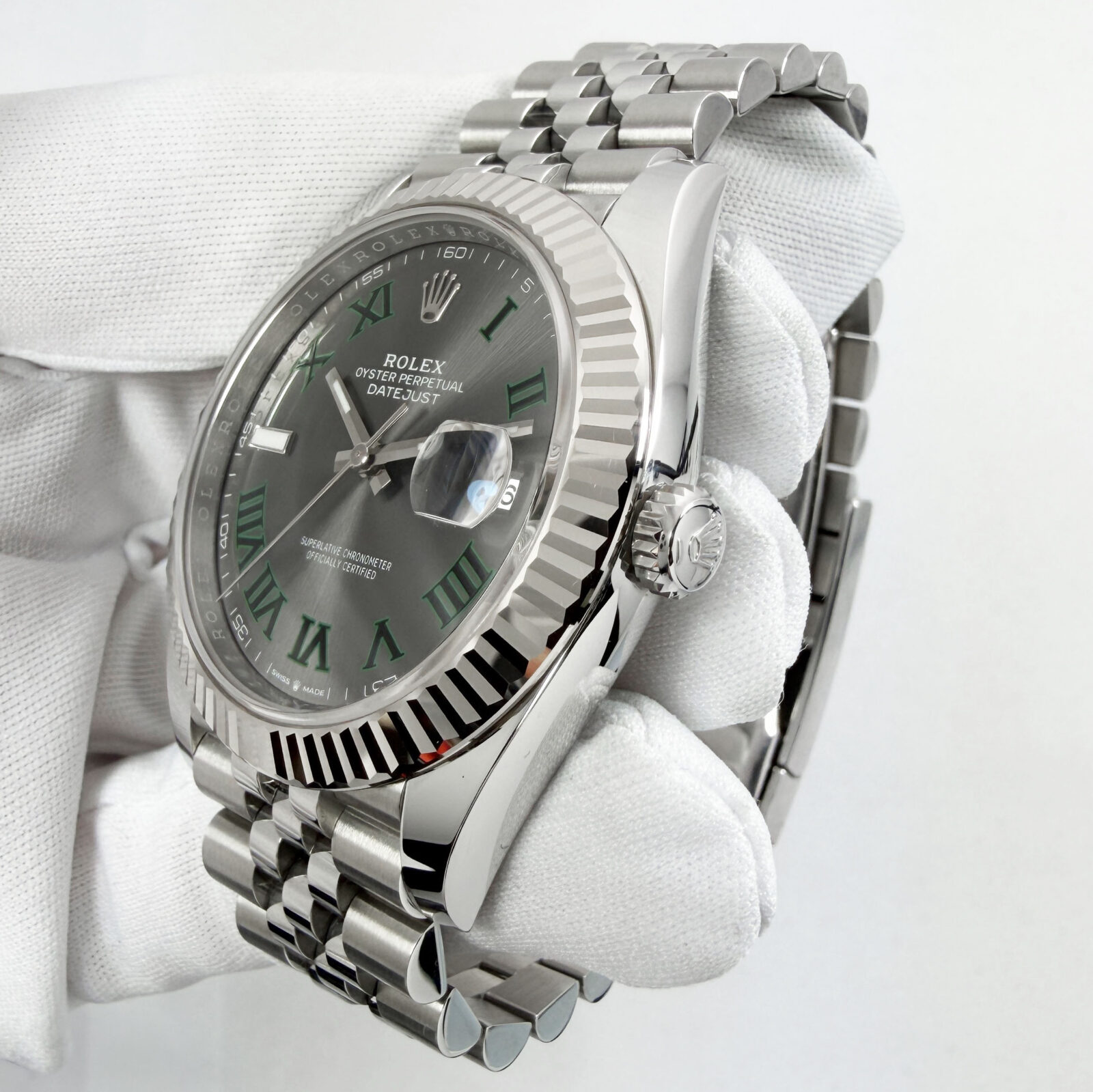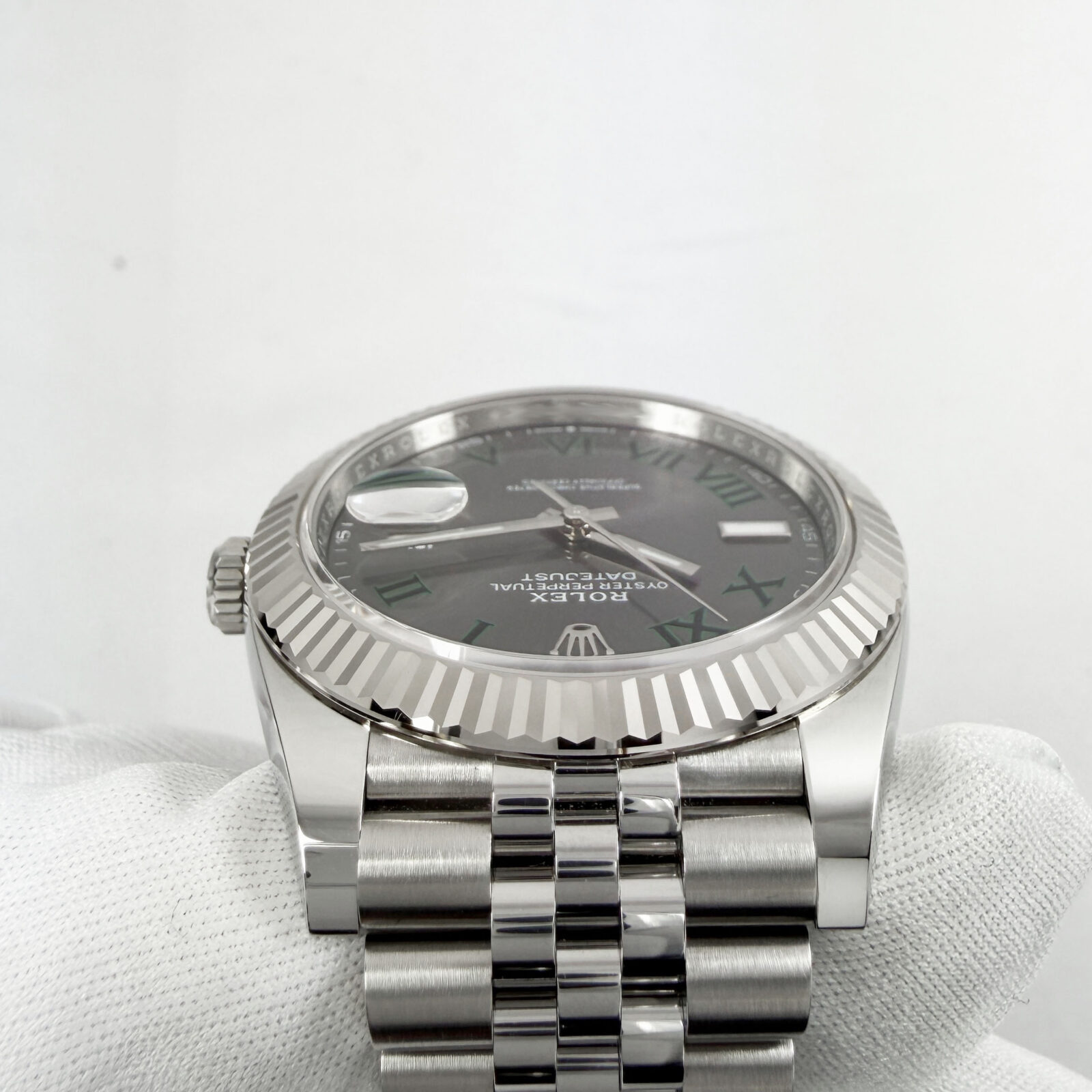 this brand new rolex datejust comes with its box, hangtags, extra link, case protector, booklets, and warranty card dated december, 2025. The photos shown are of the exact watch being sold and accurately represent its condition. This watch is in stock and ready to ship immediately!