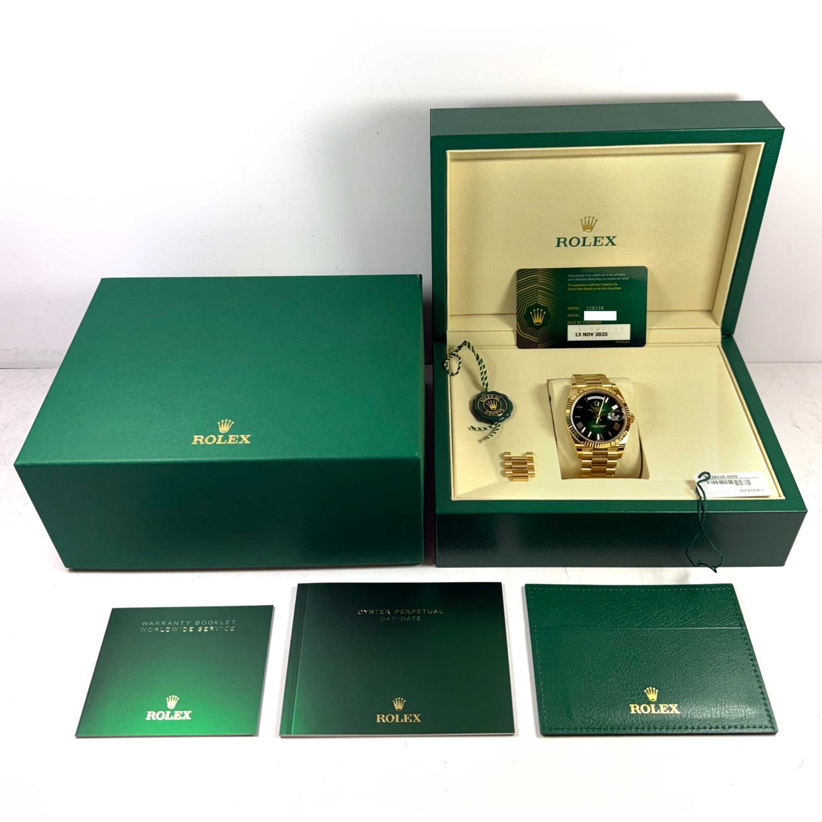 Read Morethis rolex watch is new with the green caseback sticker attached and comes with its box, booklets, hang tags, spare links, and warranty card dated november 13th, 2025 as shown in the pictures attached. This watch is in stock and available to ship immediately!