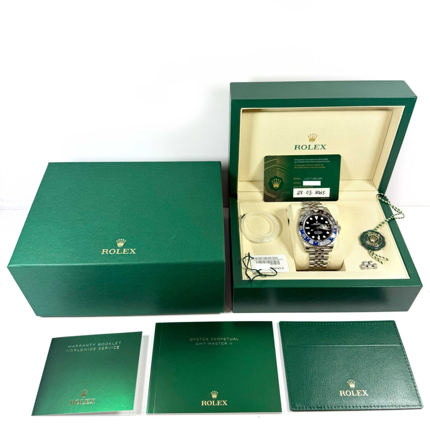Read Morethis rolex is new and comes with its box, booklets, both hang tags, bezel protector, spare link, and warranty card dated march 28th, 2025 as shown in the pictures attached. This watch is new but has very minor handling wear on the buckle. This watch is in stock and available to ship immediately!