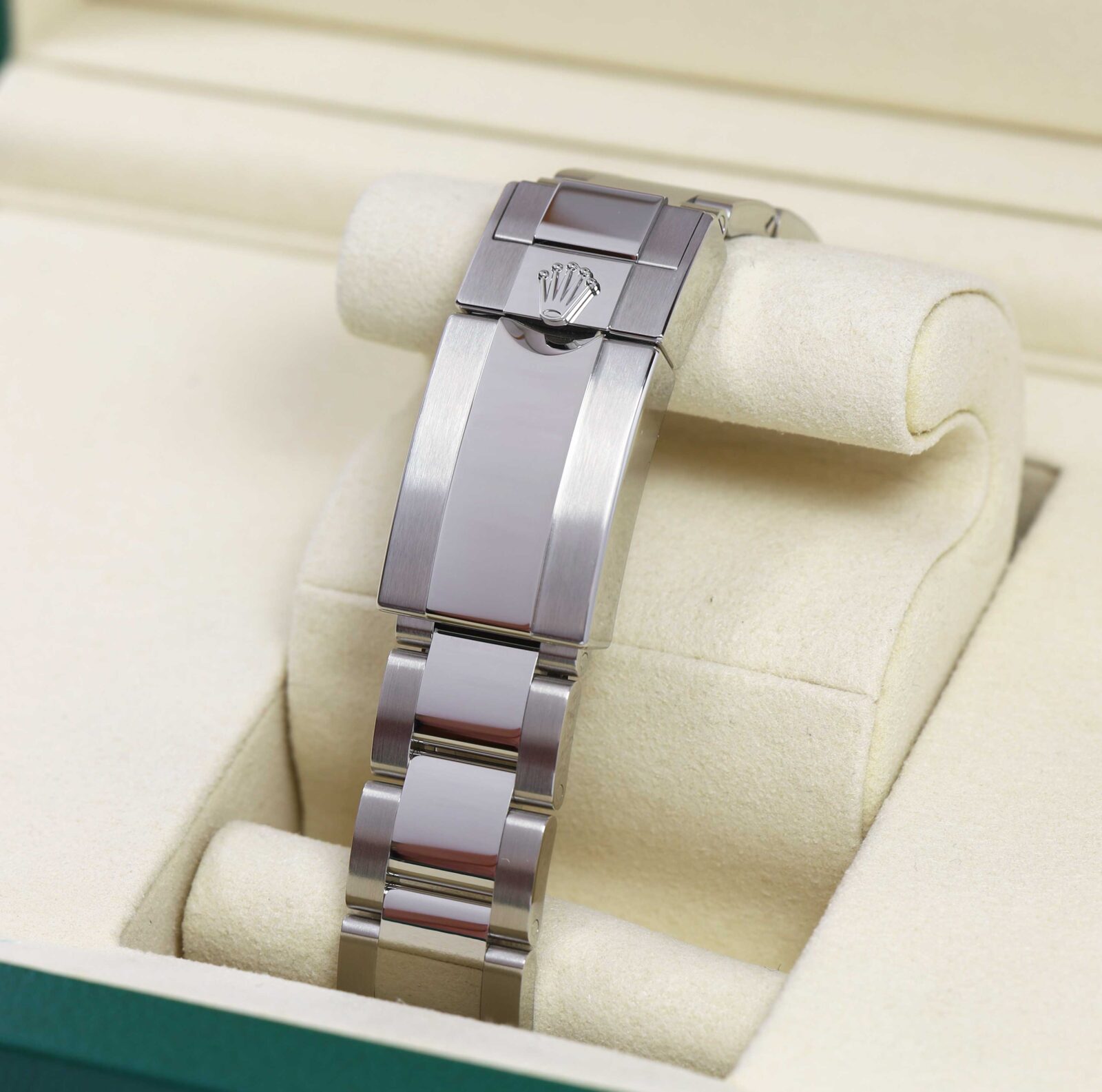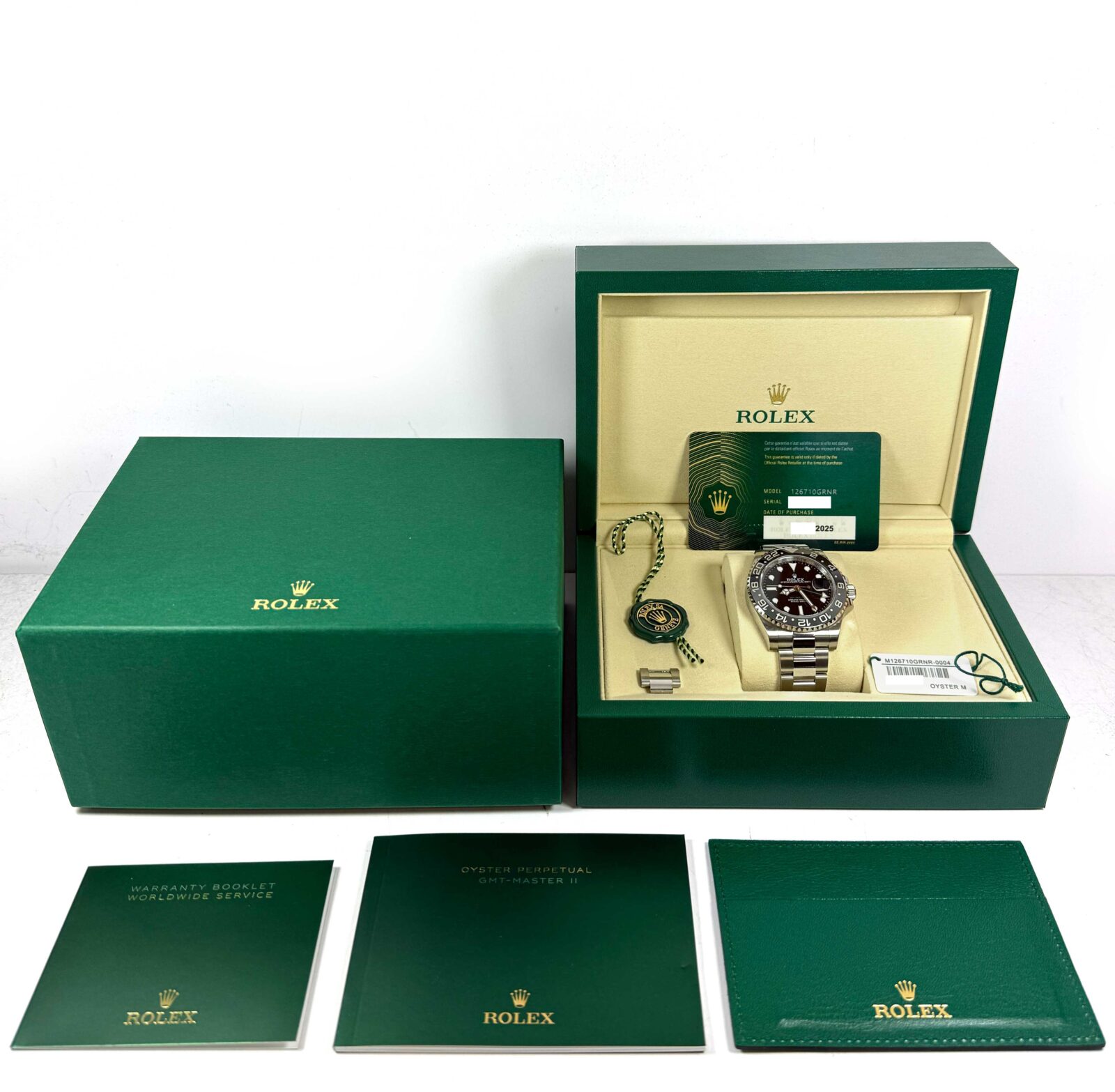 this rolex watch is new and comes with its box, booklets, hang tags, spare link, and warranty card dated november 2025 as shown in the pictures attached. This watch is in stock and available to ship immediately!