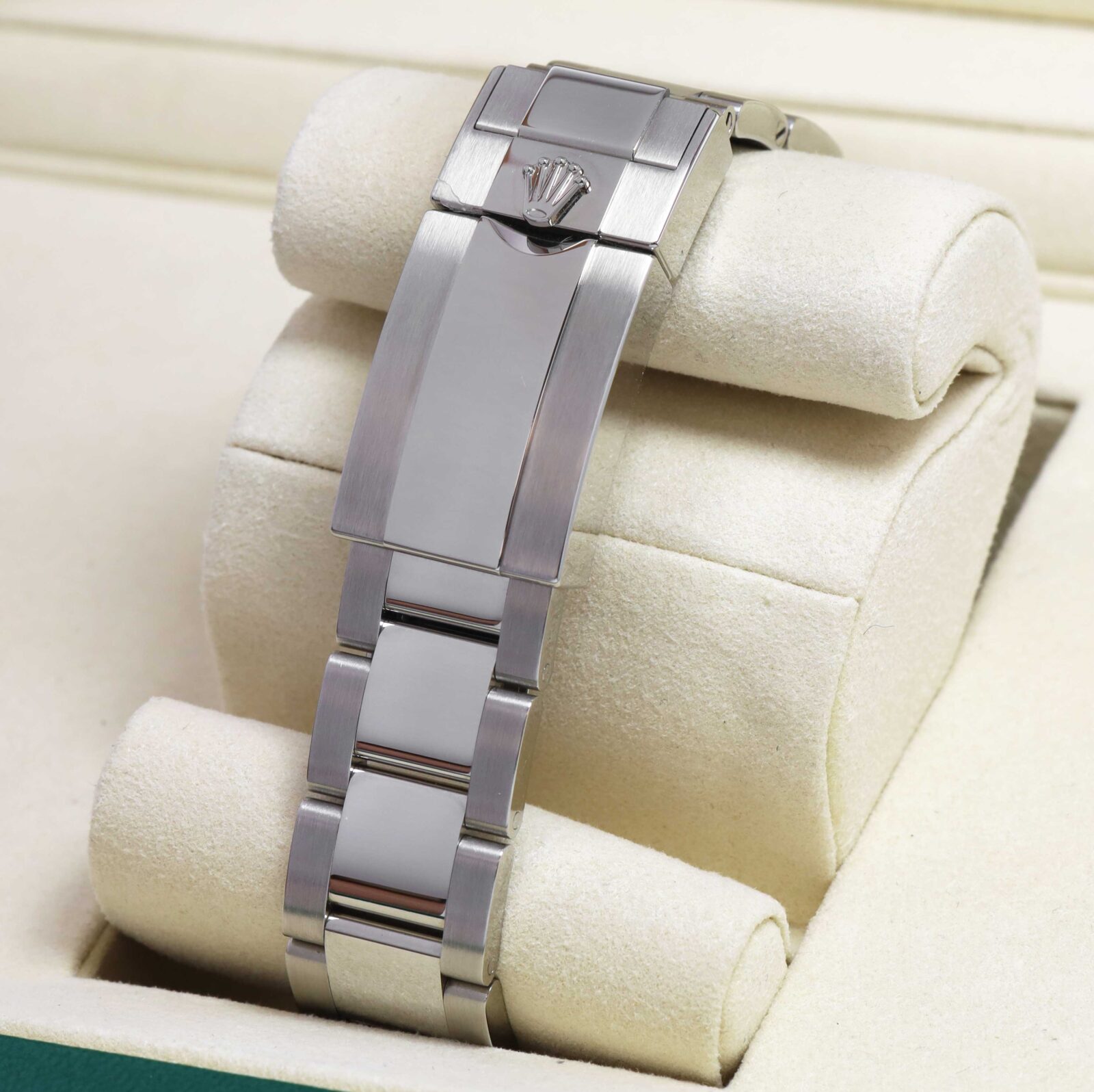 This Rolex is new and comes with its box, booklets, both hang tags, one spare link, and warranty card dated 2025 as shown in the pictures attached. This watch is in stock and available to ship immediately!