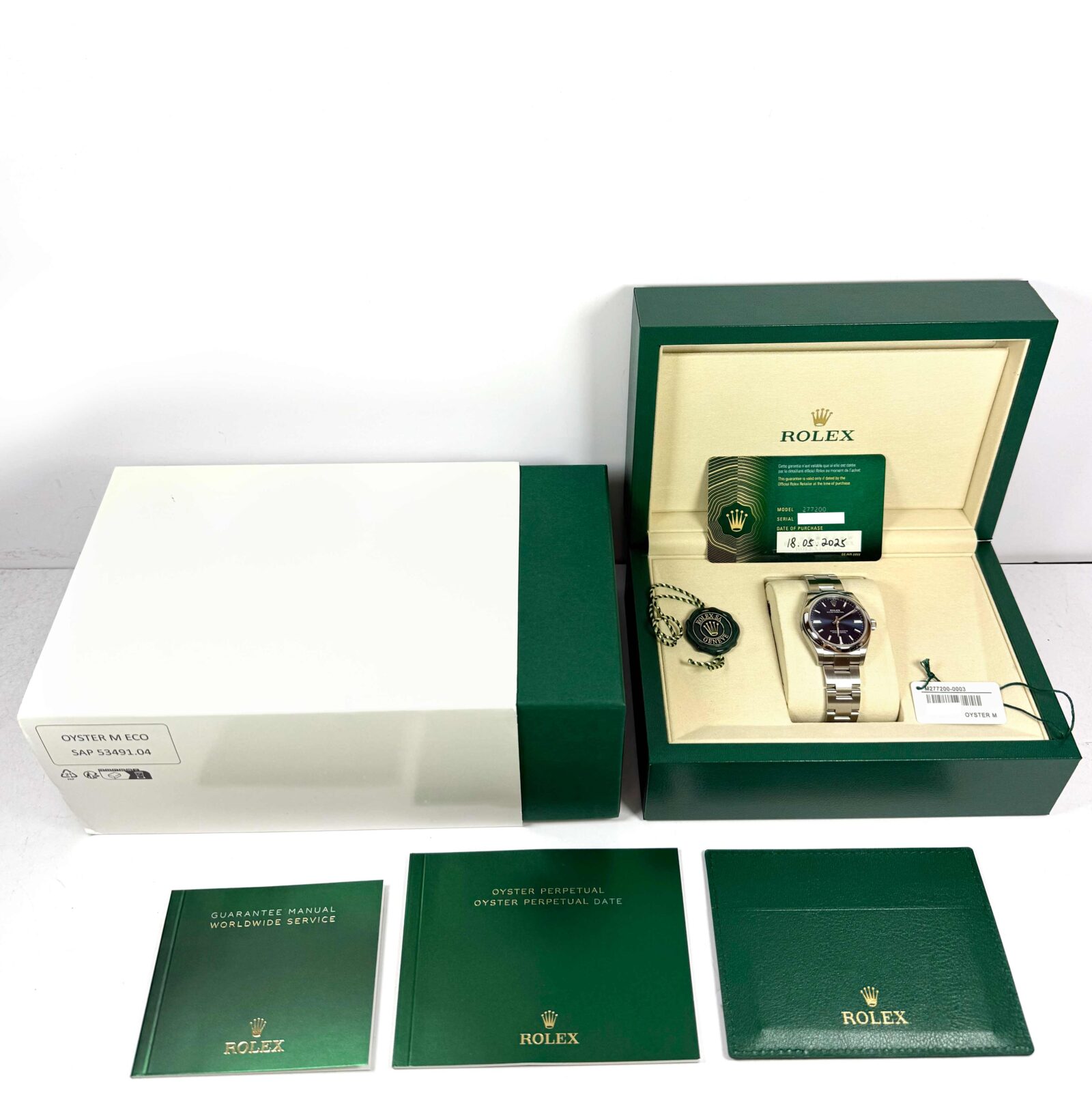 THIS ROLEX IS NEW AND COMES WITH ITS BOX, BOOKLETS, BOTH HANG TAGS, AND WARRANTY CARD DATED MAY 18TH, 2025 AS SHOWN IN THE PICTURES ATTACHED. THIS WATCH IS IN STOCK AND AVAILABLE TO SHIP IMMEDIATELY!