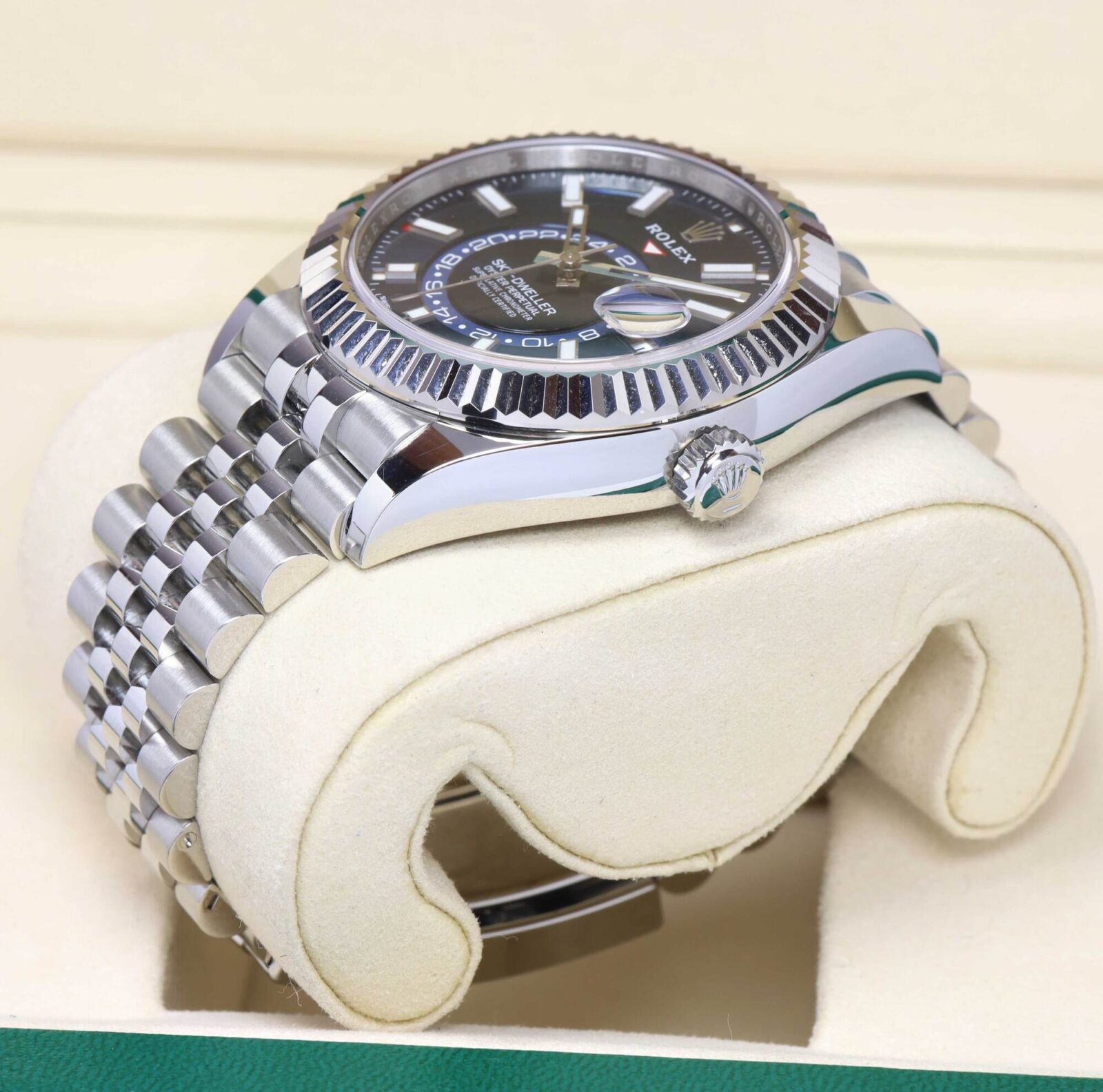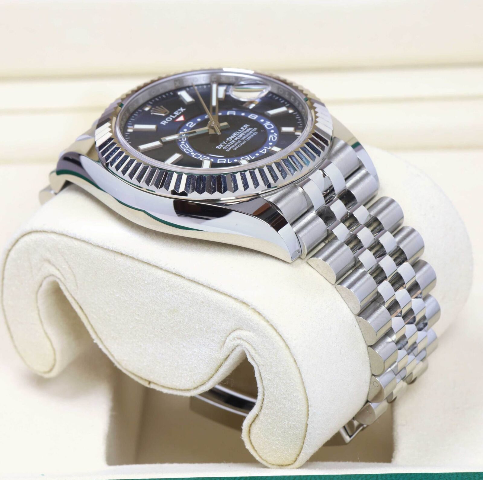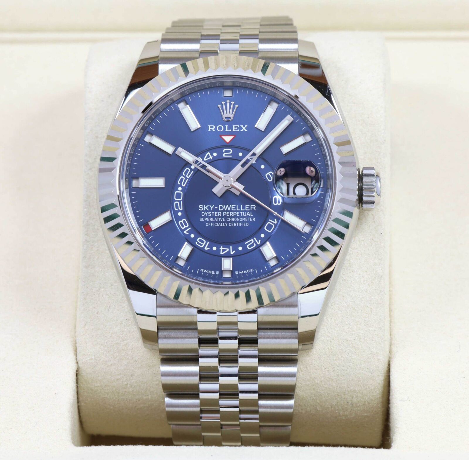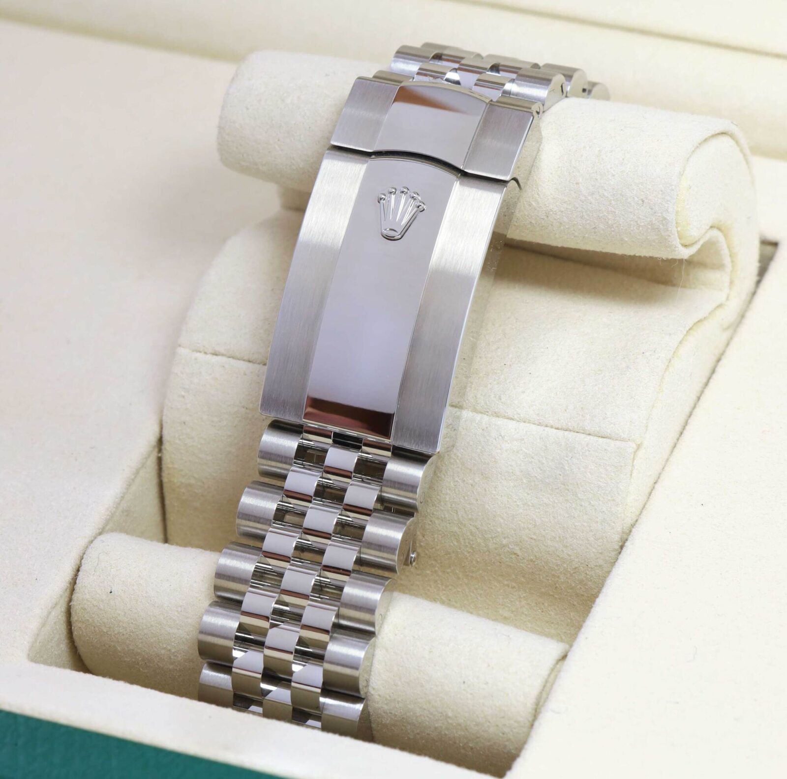 this rolex is new and comes with its box, booklets, both hang tags, one spare link, and warranty card dated june 25th, 2025 as shown in the pictures attached. This watch is in stock and available to ship immediately!
