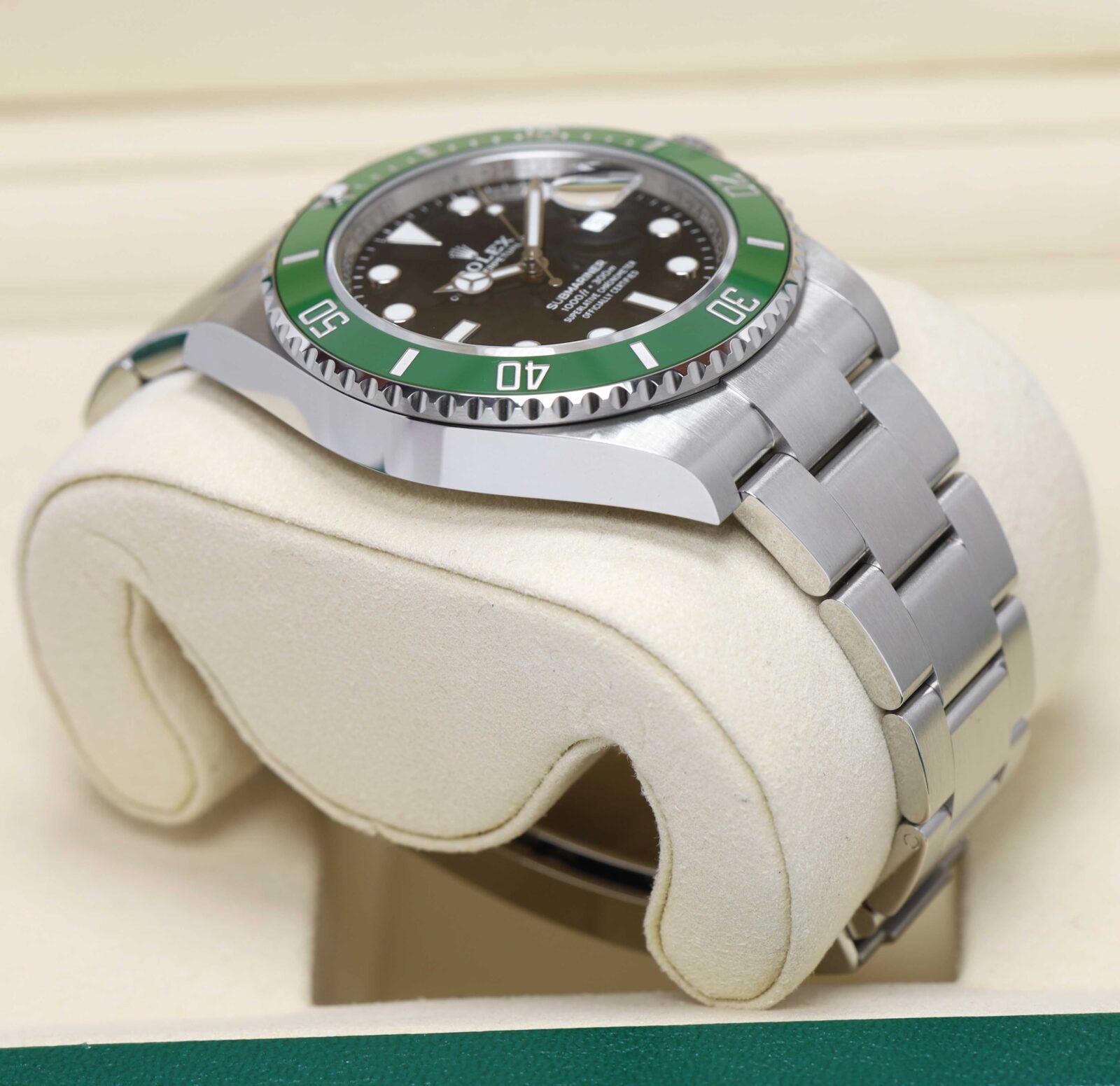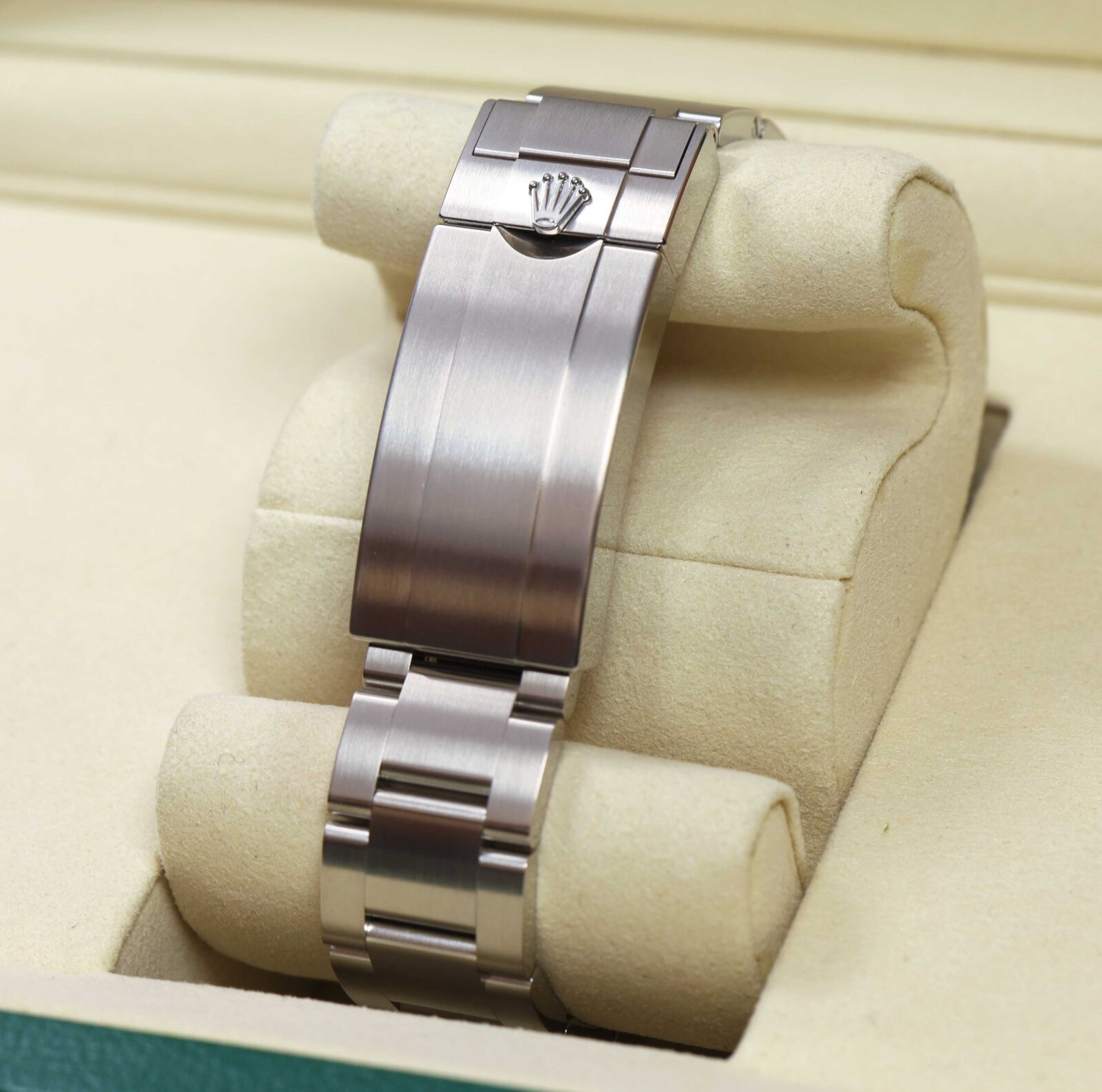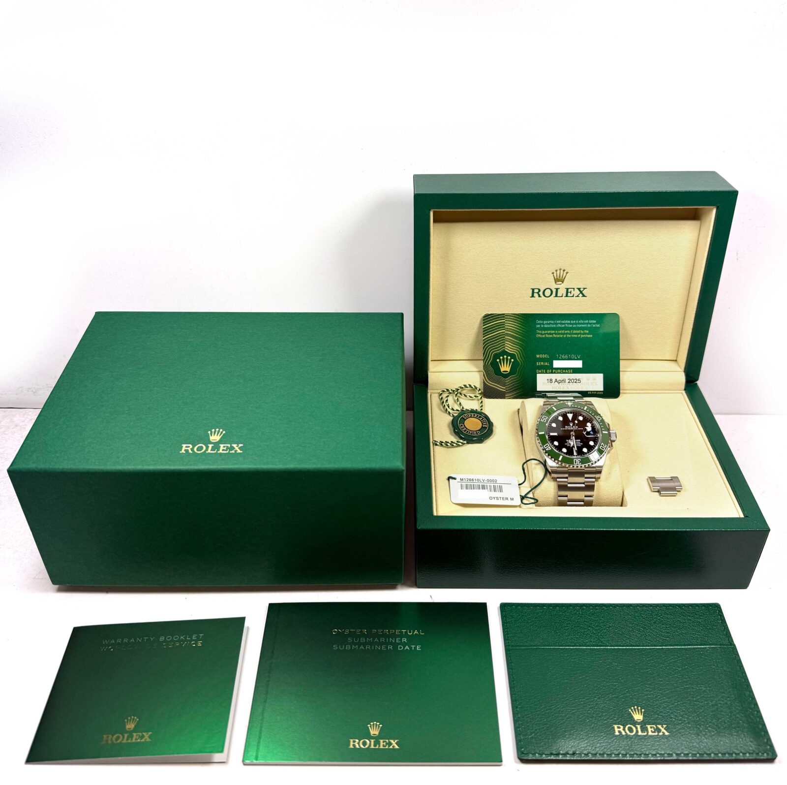 this rolex watch is new and comes with its box, booklets, hang tags, 1 spare link, and warranty card dated april 18th, 2025 as shown in the pictures attached. This watch is in stock and available to ship immediately!
