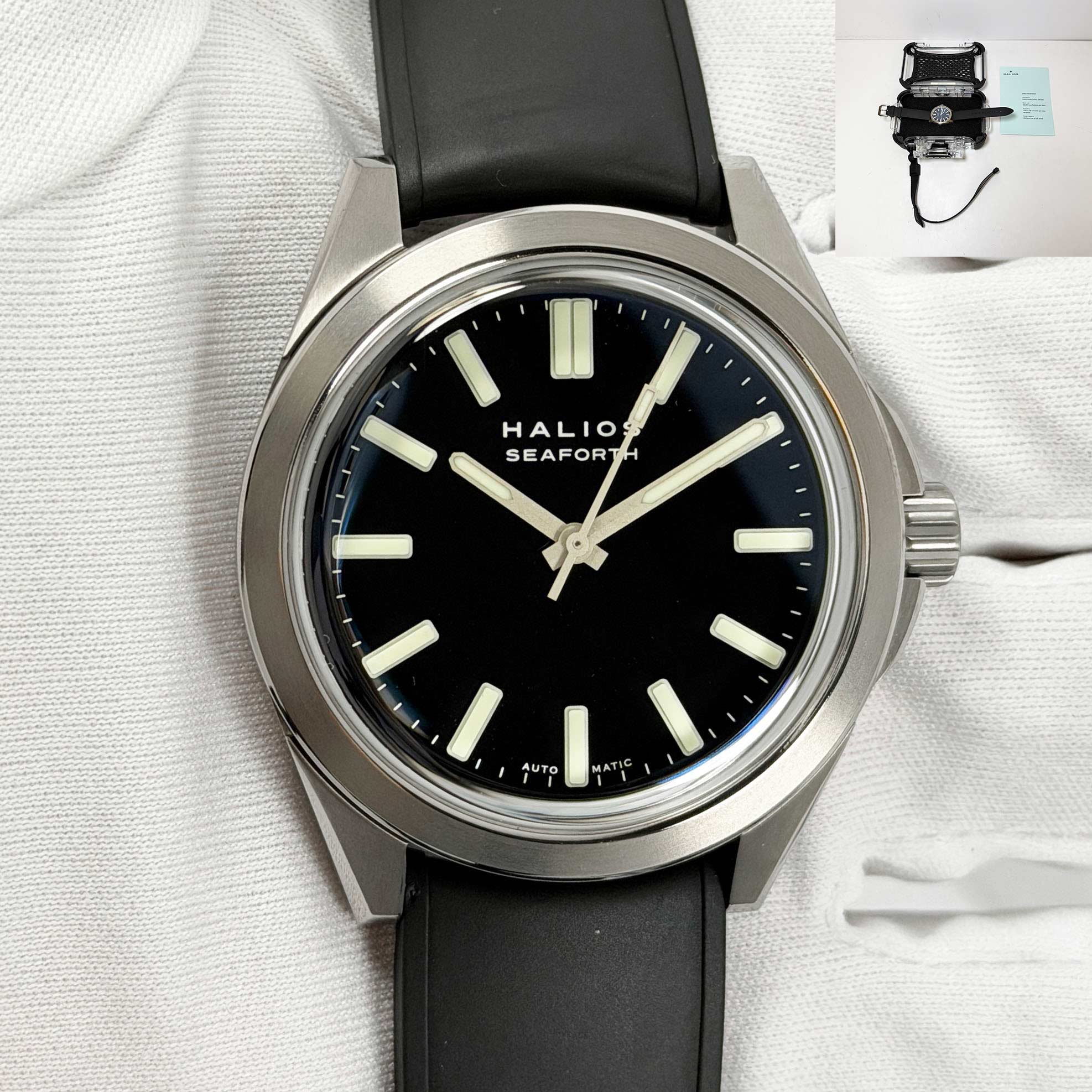 this brand new halios seaforth iv comes with its box and paper. The photos shown are of the exact watch being sold and accurately represent its condition. This watch is in stock and ready to ship immediately!