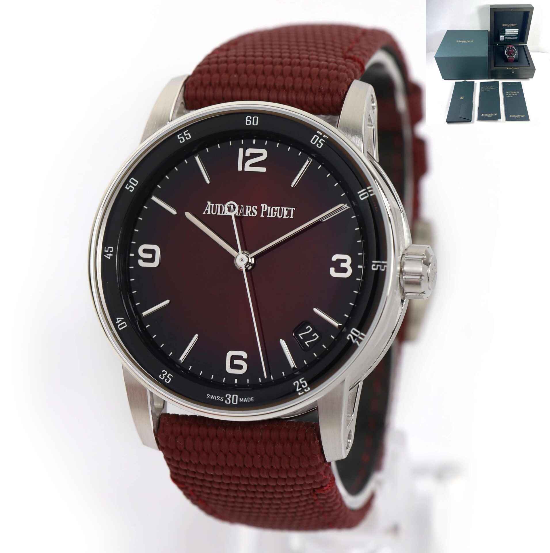 this is the newly released version of the ap code 11:59 lineup, this model features a white gold outer case with a smoked burgundy lacquered dial on a burgundy bracelet that is absolutely stunning in person. This ap is new and comes with its box, booklets, and warranty card as shown in the photos attached. This watch is in stock and available to ship immediately!
