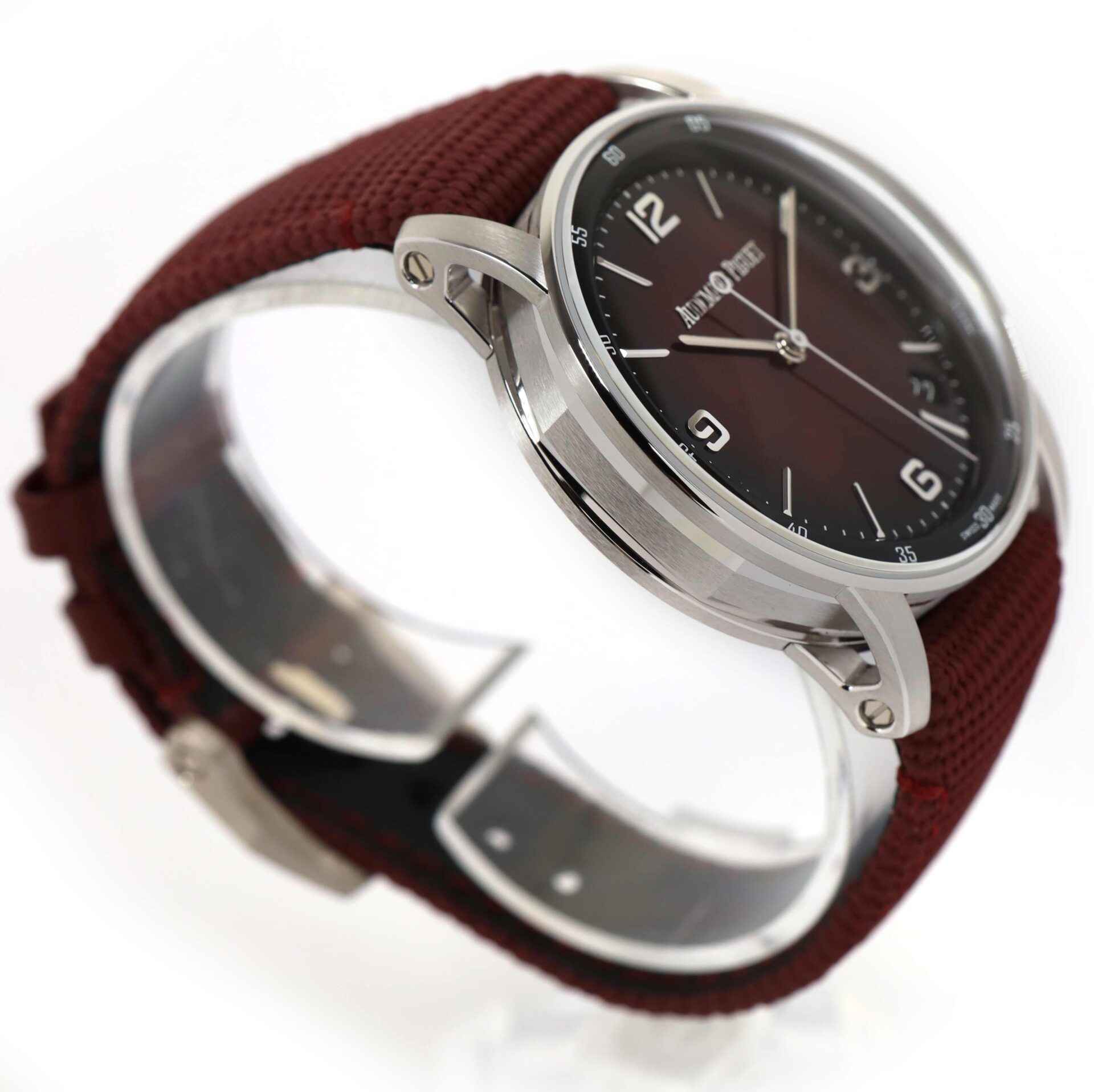 This is the newly released version of the AP Code 11:59 lineup, this model features a white gold outer case with a smoked burgundy lacquered dial on a burgundy bracelet that is absolutely stunning in person. This AP is n...