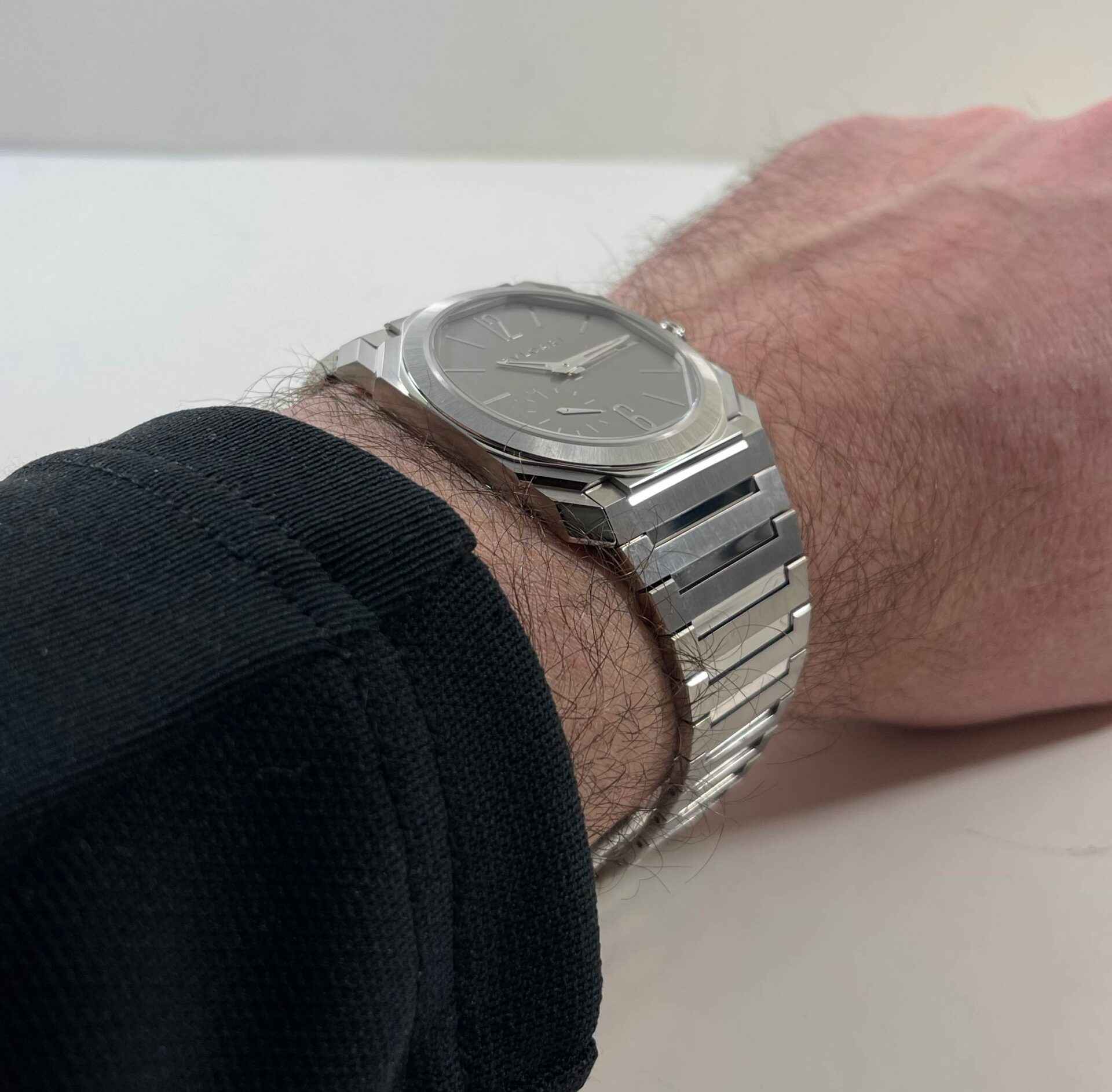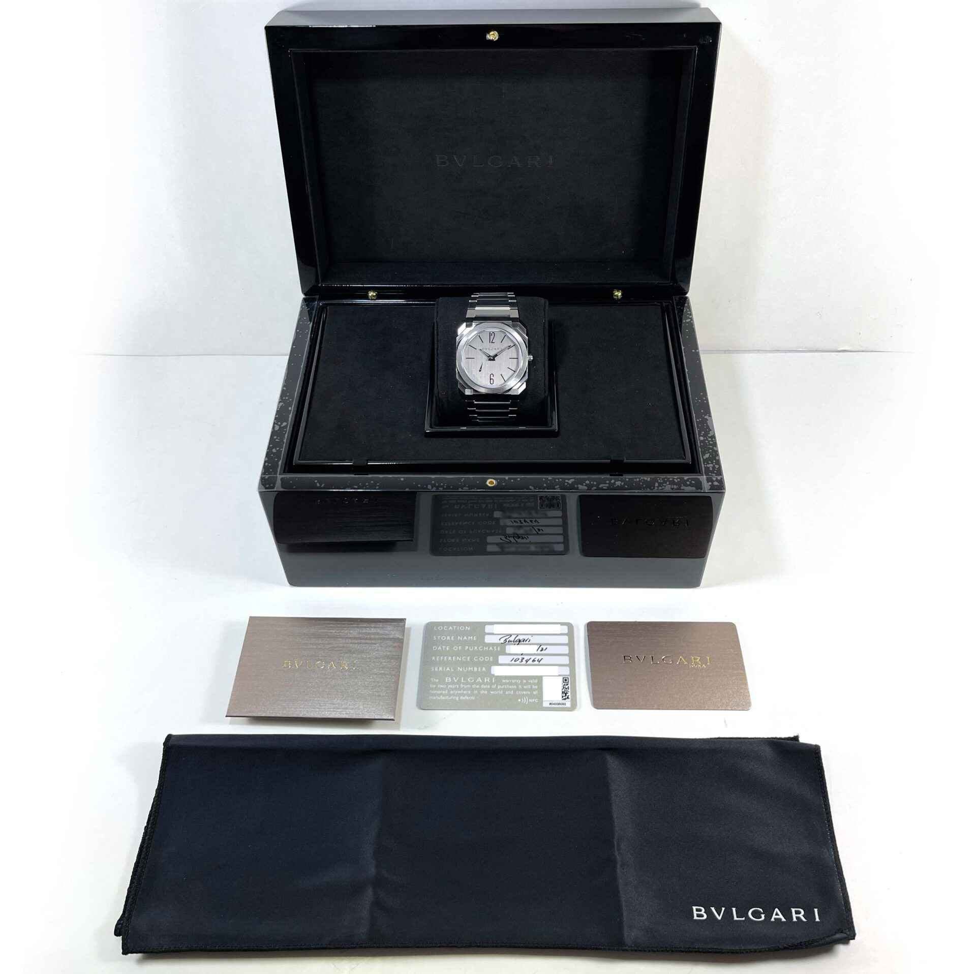 This Bulgari watch is in brand new and only worn for the picture you see attached, it comes with its original box, microfiber cloth, and warranty card dated 2021. The Octo Finissimo line is truly stunning in person...